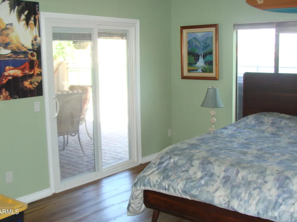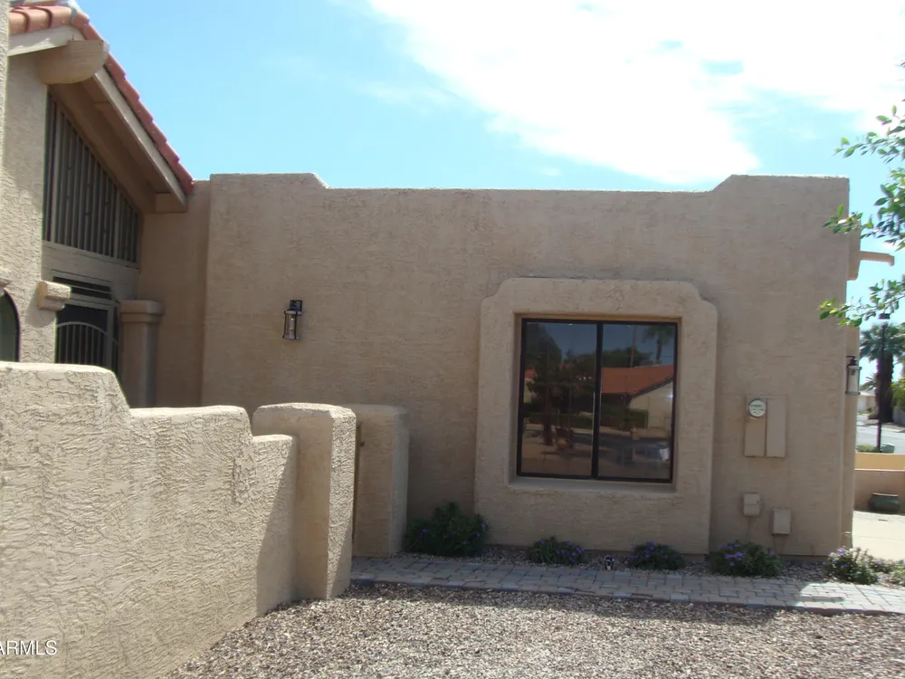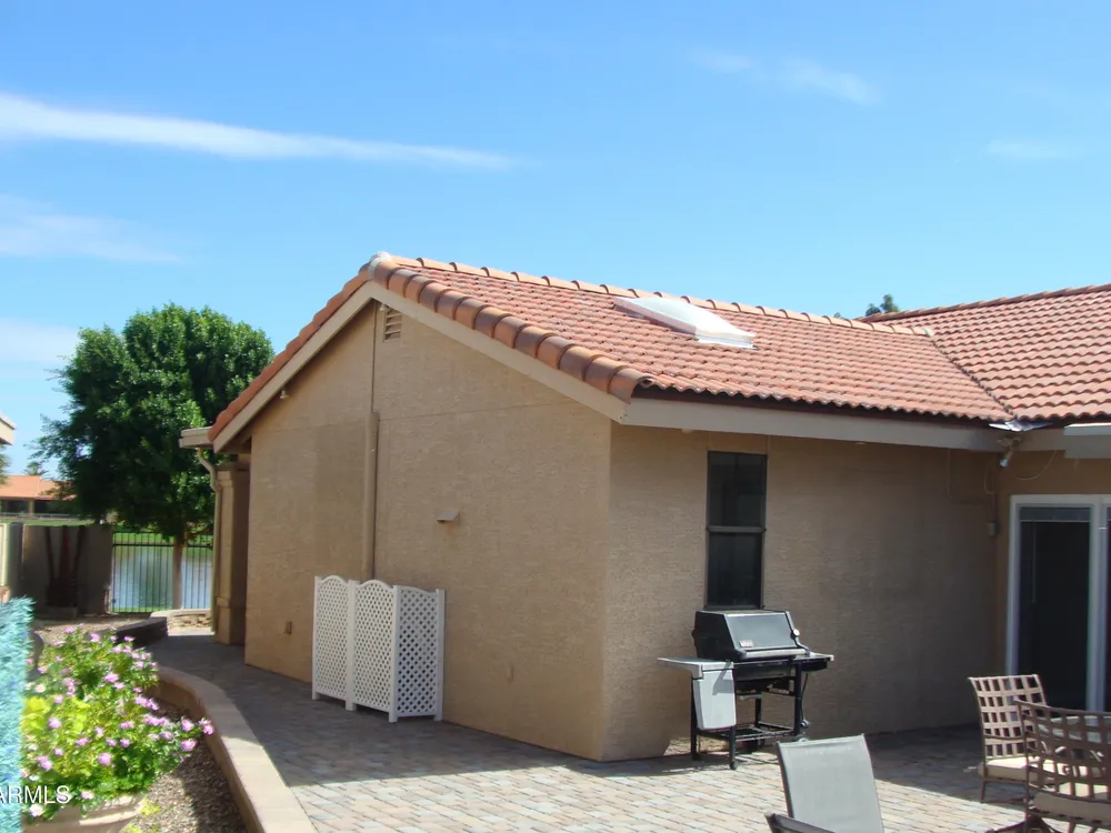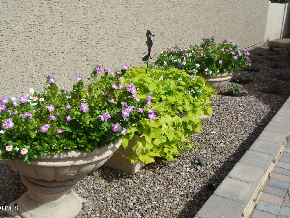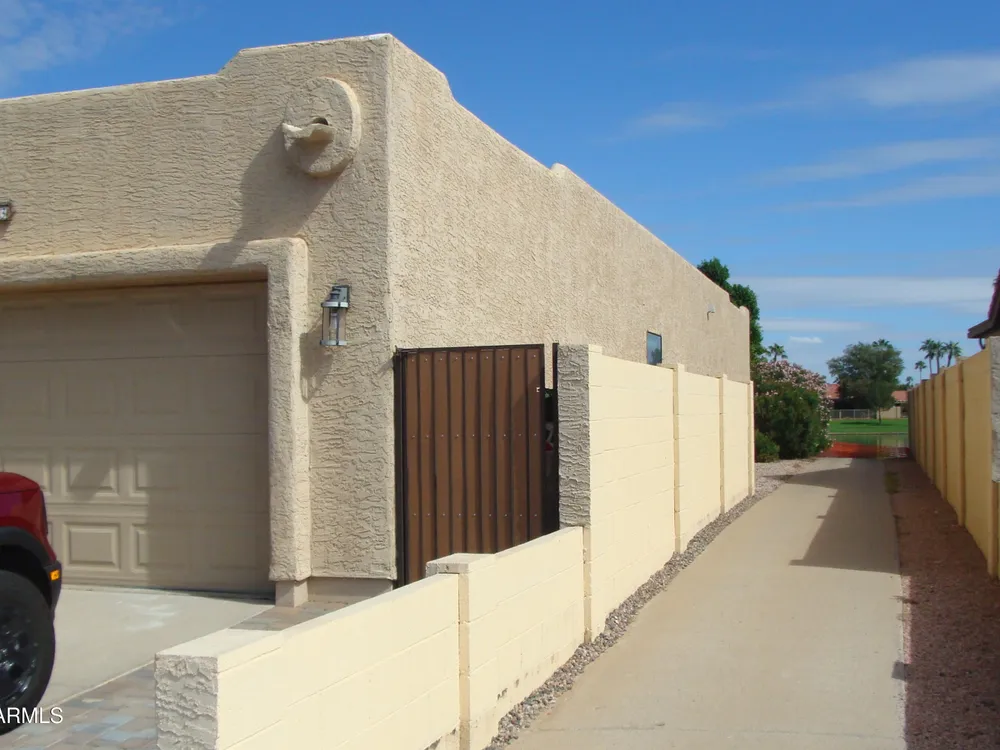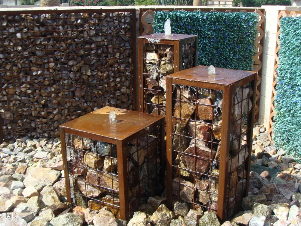 This beautiful home features an inviting front and side extended courtyards with fountains, custom pavers and lovely greenery, a large rear patio with custom, mister system, covered patio and a wonderful lake view, green spaces and walking path are just outside the back gate. Inside find an open floor plan, an open kitchen with plenty of cabinet spaces and upgraded appliances. The 2 large custom baths feature too many upgrades to mention here, a the master suite has sliding door access to the rear patio. A wet bar with fridge help make this a great home to entertain friends and family. Much love and work has gone into making this into a warm and welcoming home. The tile roof was new in 2021, the flat section redone in 2024, water heater new in 2024. All with Warranties.