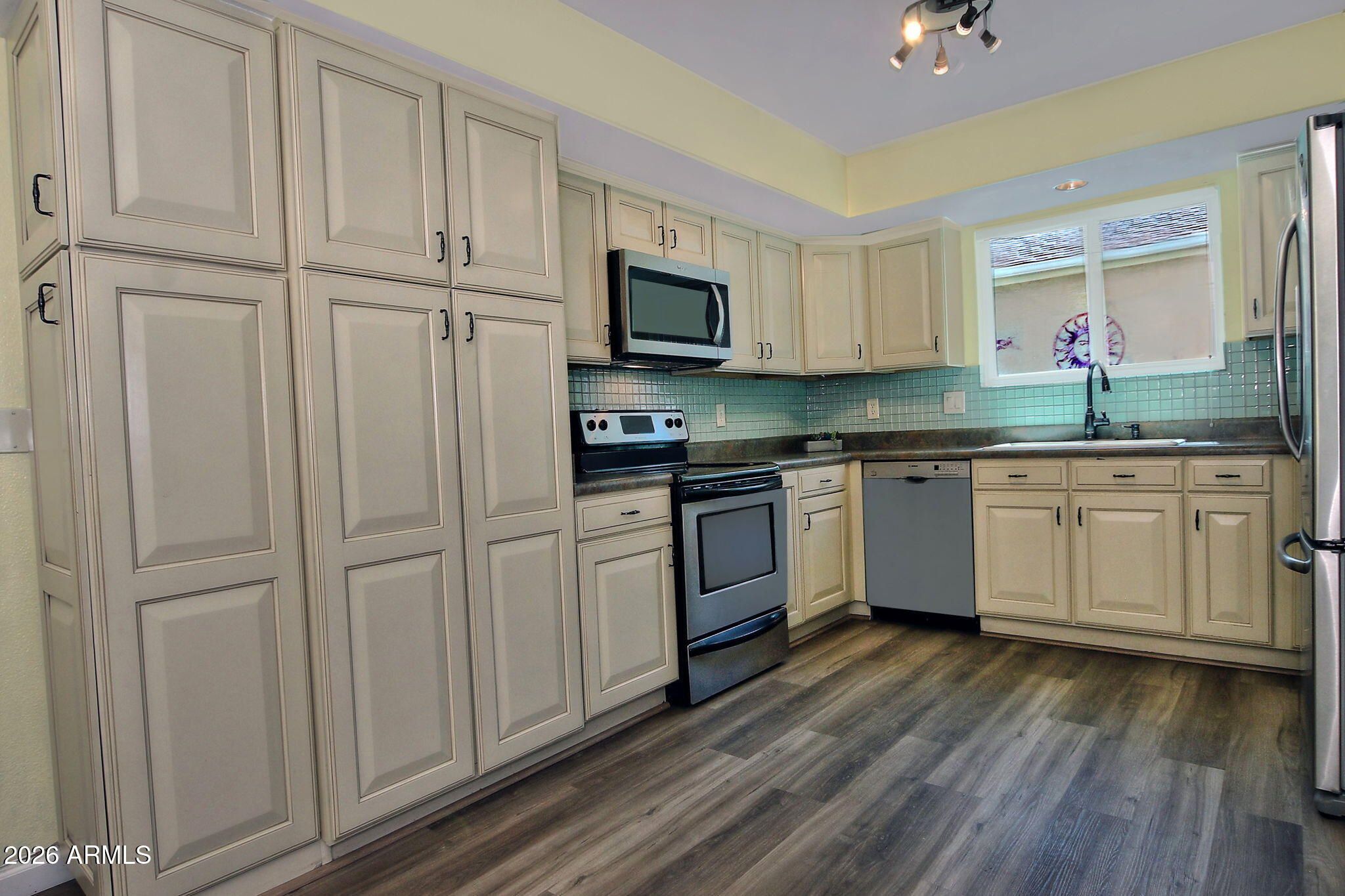 - Dryer, Washer, Refrigerator, Built-in Microwave, Dishwasher, Electric Range