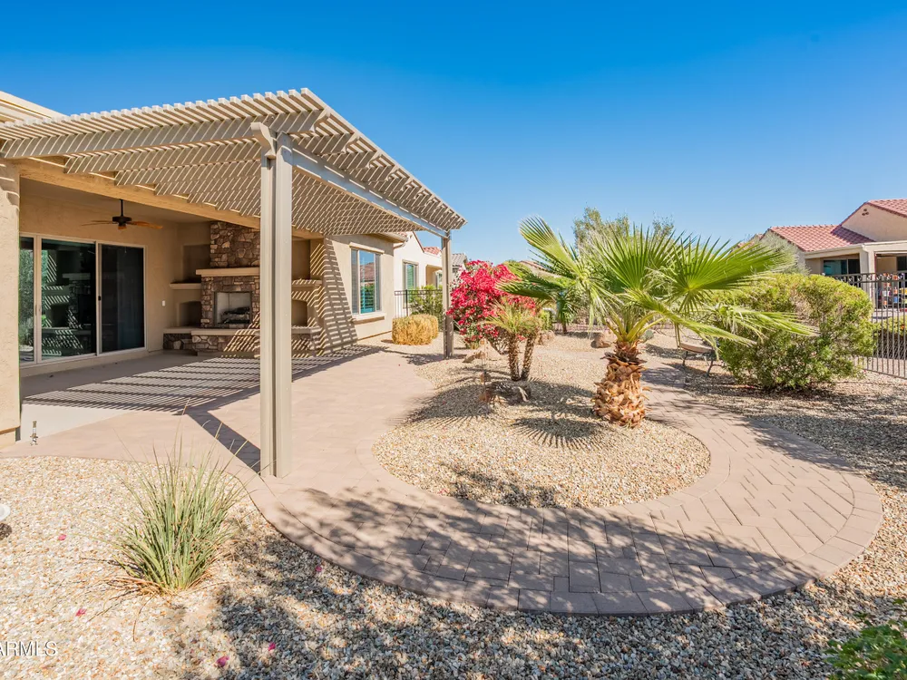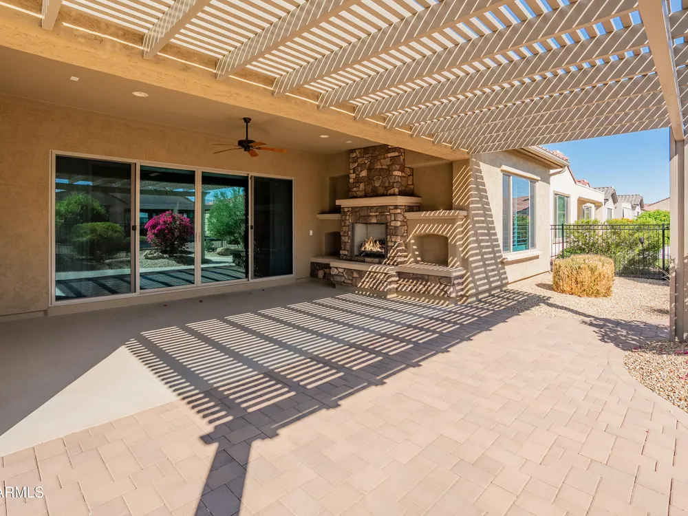 Absolutely stunning Journey plan showcasing luxury, comfort & thoughtful design! This beautifully crafted 3 Bedroom, 2.5 Bath home includes a versatile Flex Room with elegant Glass French Doors, perfect for a private office, den, or creative space. The Gourmet Kitchen features rich Granite Countertops, Butler's Pantry, Café Dining Area, Soft Close Cabinets & premium KitchenAid Stainless Steel Appliances. Entertain in style under the Extended Covered Patio with Built-in Fireplace Wall & Pergola, or unwind in the peaceful, Fully Enclosed View-Fenced Backyard. Additional highlights include Plantation Shutters throughout, Pre-Wired Surround Sound, Paver Driveway, Private Paver Courtyard & a Climate-Controlled 3rd Garage — ideal for hobbies, storage or your prized car.