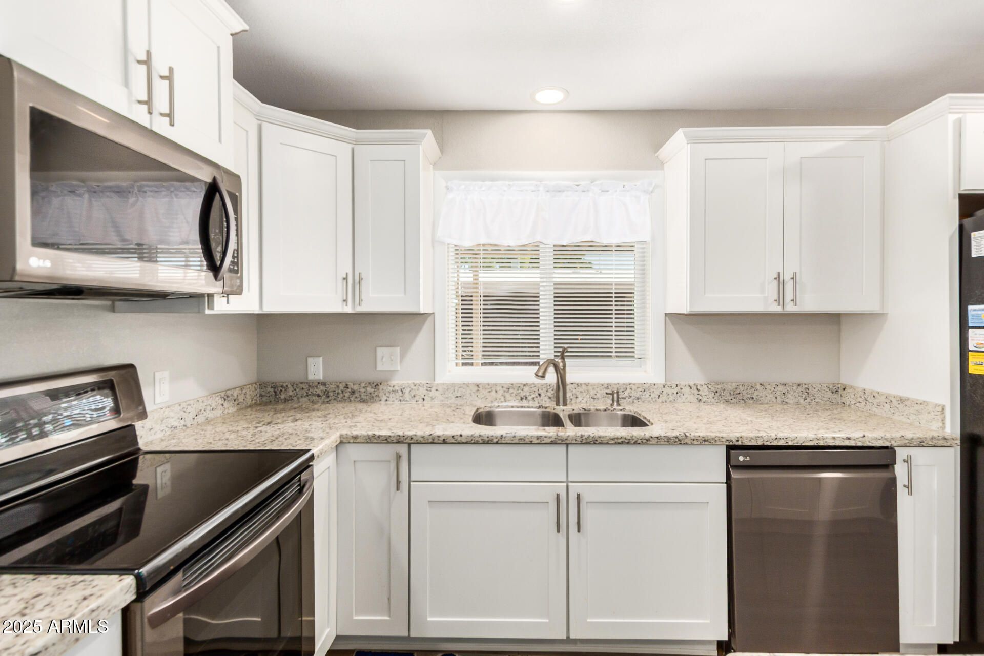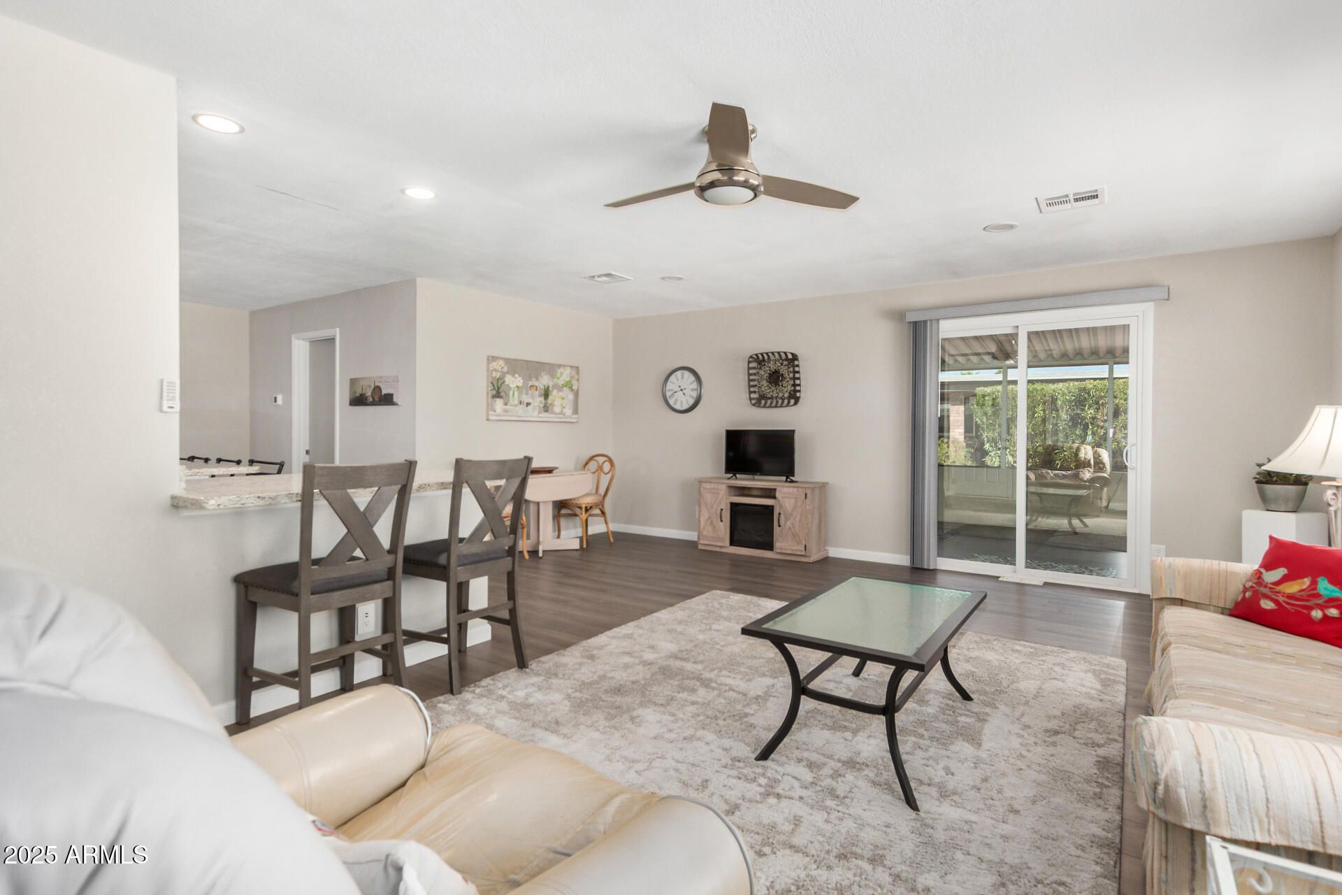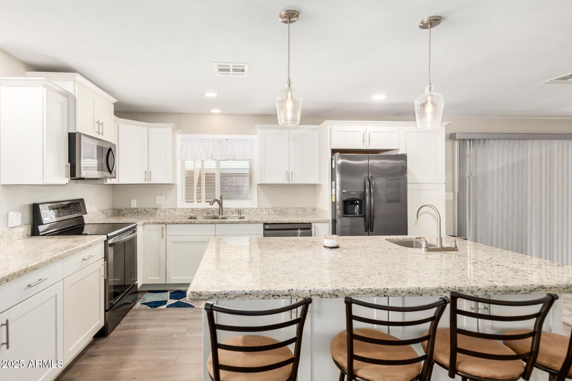 Looking for an Amazing Location on the lake? Here is your chance. This home is a completely REMODELED BEAUTY!- the Kitchen has white cabinetry, granite counters, kitchen island w/sink, black SS appliances, pendant and LED lighting. Bathroom vanities w/granite counters, nickel fixtures. Home was dry-walled with new texture/paint and new energy windows installed. Newer 14 seer Lennox AC in 2019, New water heater in 2020, New roof coating in 2023. Large covered carport with storage shed. This peaceful Lake setting has walking/golf cart paths around the lakes to enjoy. Located in Sun Lakes #1-must be age 45 to purchase. Enjoy the active adult community amenities of a Clubhouse, restaurants, fitness ,spa, golf, tennis, pickleball, bocce ball , 2 swimming pools & more! Ready to Move-In Now!!