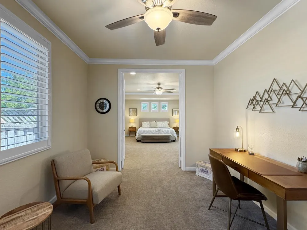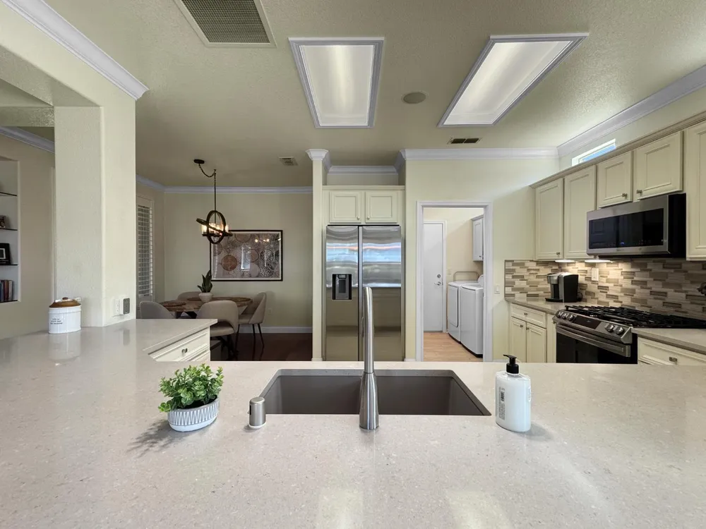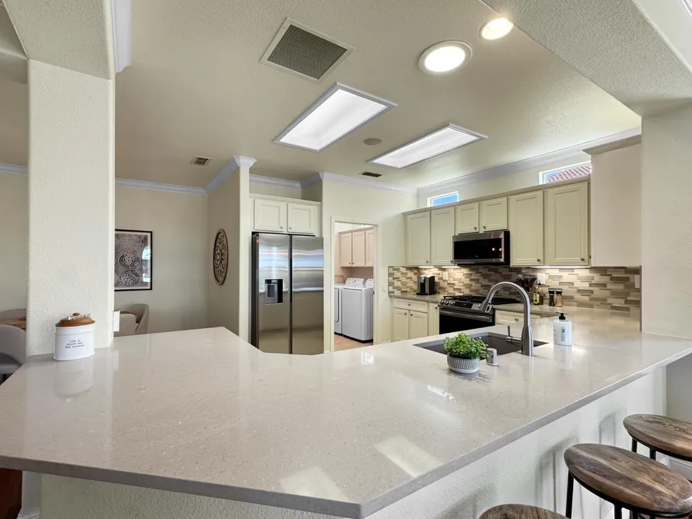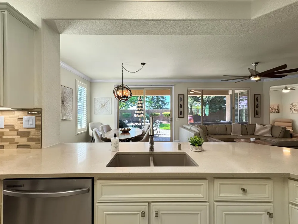 Updated and Classy Tahoe in Sun City Lincoln Hills. Welcome to this beautiful Tahoe with attached casita, perfectly located in the the highly desirable 55+ community of Sun City Lincoln Hills. Designed with both comfort and entertaining in mind, this home blends timeless style with modern updates. Enjoy rich hardwood flooring, crown molding, and open living spaces filled with natural light. The updated kitchen boasts sleek countertops, stainless steel appliances, a modern backsplash, and upgraded fixtures. The living and dining areas flow seamlesslyan entertainer's dream. The primary suite offers a peaceful retreat, while the versatile casita with private entry is ideal for guests, hobbies, or a home office. Step outside to a beautifully landscaped backyard with a covered patio, perfect for morning coffee, evening dinners, and gatherings with friends. The welcoming front courtyard and updated curb appeal make this home a standout. Sun City Lincoln Hills offers world-class amenities including golf, pickleball, swimming, fitness centers, scenic trails, and over 80 clubs. Every day here feels like a vacation! Don't miss the chance to own this stylish and move-in ready Tahoe model in one of the region's premier active-adult communities! Be sure to see the video!