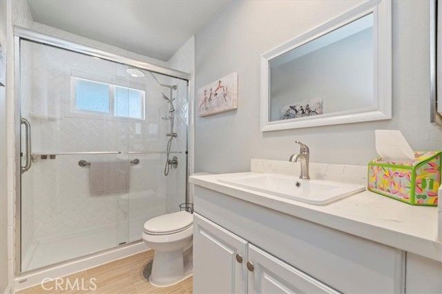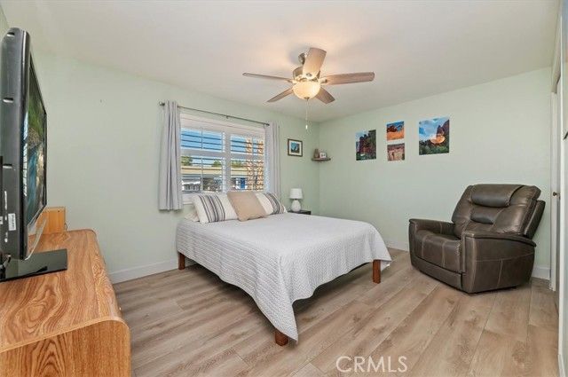 Beautiful turn key home. Loads of upgrades include flooring, bathroom, kitchen, plantation shutters, windows, and solar paid with 10 panels. Artificial grass in the back yard with a huge shed and gazebo. Refrigerator, Washer and Dryer included. Located in a 55+ age community with many amenities at the clubhouse.