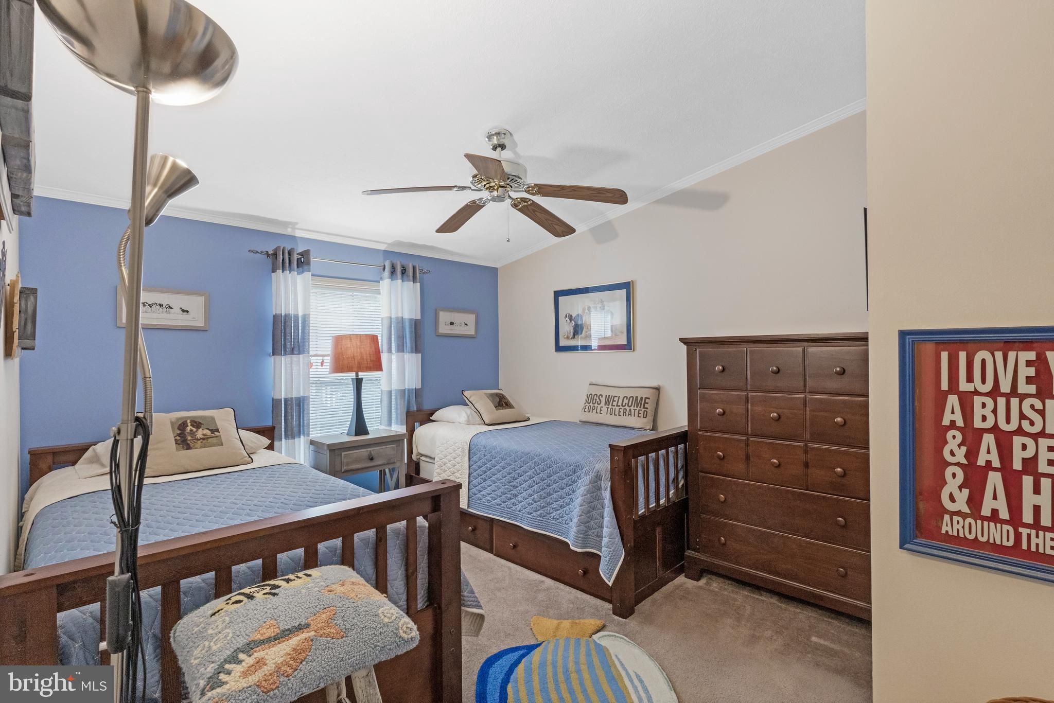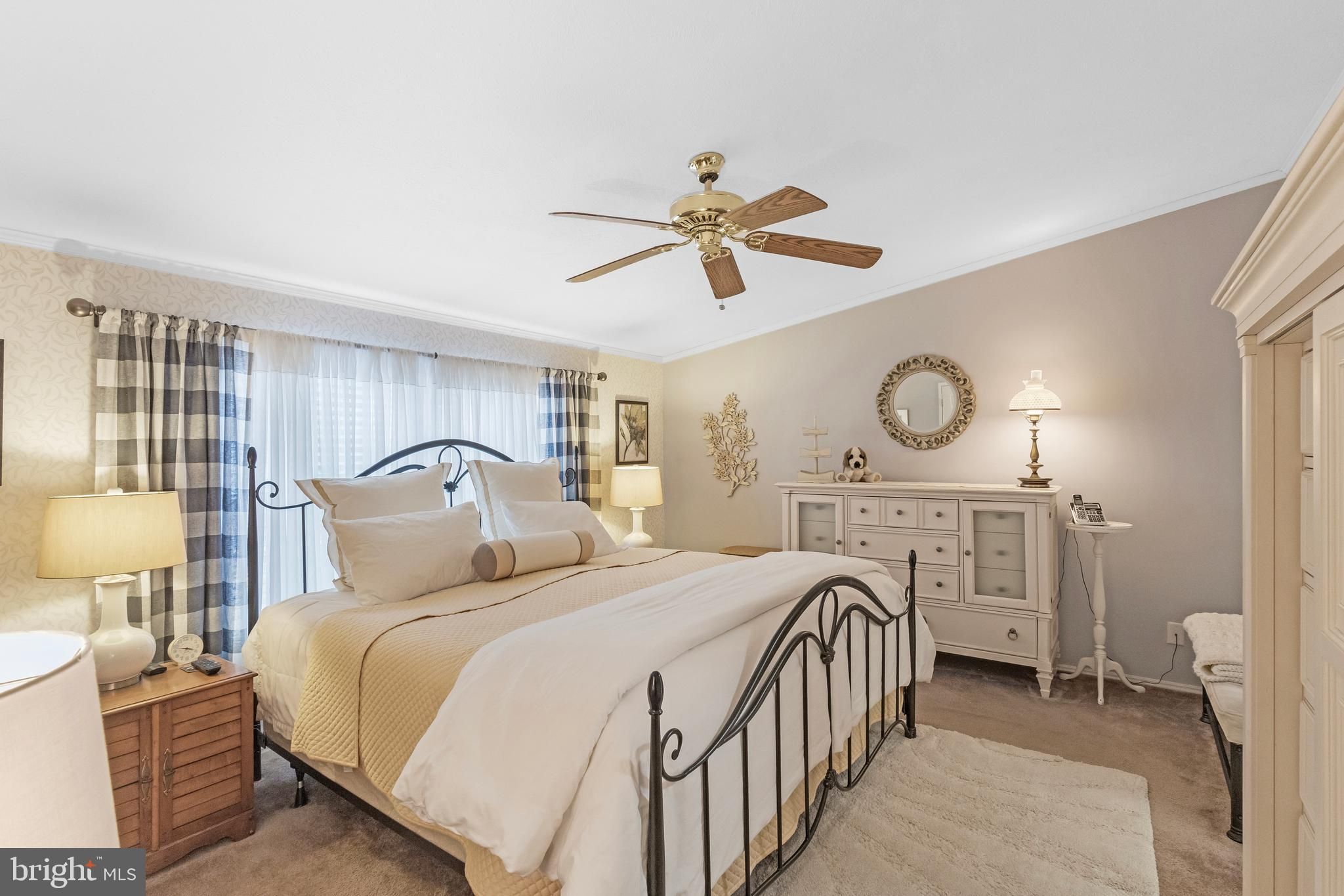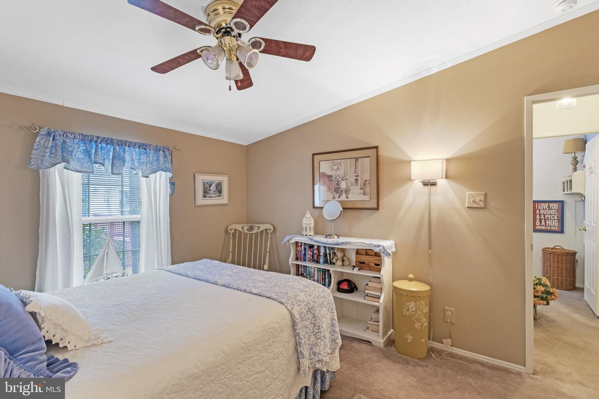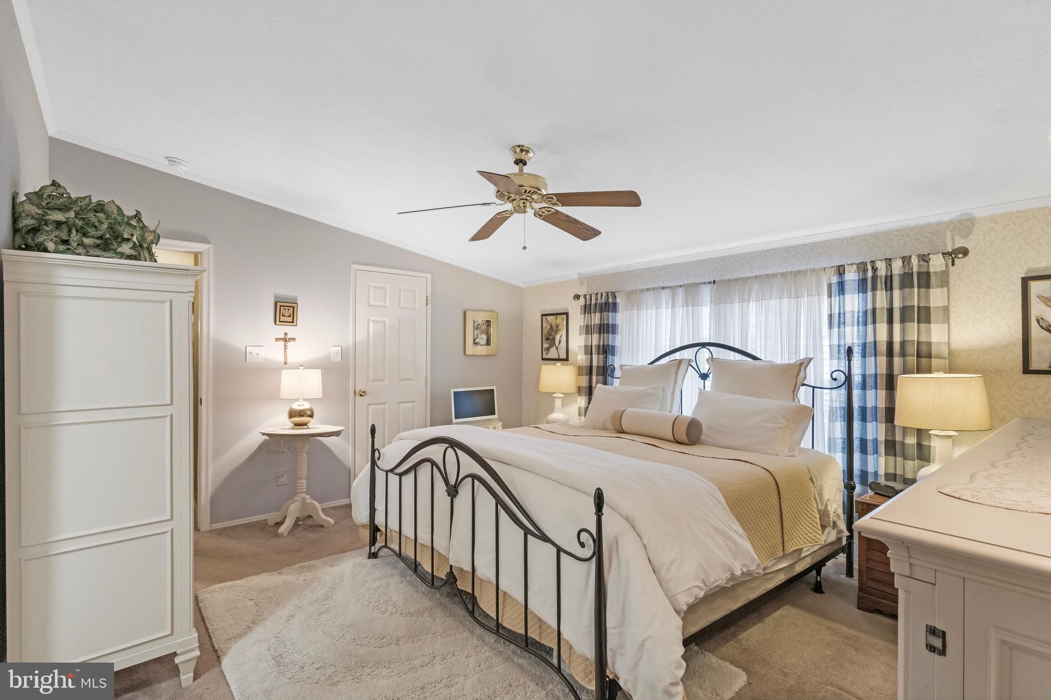 - Ceiling Fan(s), Crown Moldings, Carpet, Primary Bath(s), Entry Level Bedroom