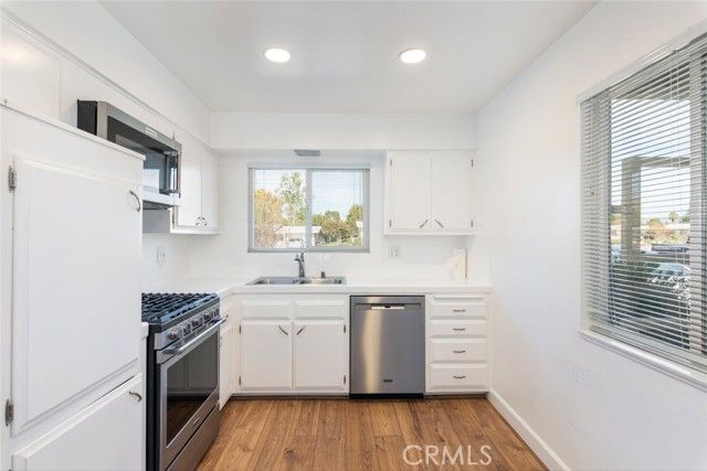 Welcome to this stunning condo in the highly desirable 55+ community of Menifee! Boasting 2 bedrooms and 2 bathrooms, this beautifully updated and upgraded home offers comfort, style, and convenience in one exceptional package. Bright and airy, the home features plantation shutters and elegant wood-like flooring throughout, creating a warm and inviting atmosphere that flows seamlessly from room to room. The spacious kitchen is a chef’s dream, complete with brand-new appliances, recessed lighting, an abundance of cabinet space, and a large pantry—perfect for preparing meals, entertaining, or simply enjoying your morning coffee in a sun-filled space. Natural light pours in through new windows, enhancing the home’s open and welcoming feel. The large laundry room includes a sink and extra storage, providing both function and convenience. Step outside to your private, expansive covered patio, ideal for outdoor living and entertaining. Surrounded by fruit trees and backing to the former golf course, the backyard offers serene, wide-open views and endless possibilities for relaxation or social gatherings. The attached 1-car garage adds additional ease and security. Sun City residents enjoy an unparalleled lifestyle with the Sun City Civic Association (SCCA), featuring a wide array of resort-style amenities. Spend your days staying active at the indoor tournament shuffleboard court, horseshoe pits, fitness center, two sparkling pools, spa, or lawn bowling greens. Engage with the community through multiple social clubs, events, and activities designed to inspire connection, wellness, and enjoyment. This home is the perfect combination of low-maintenance luxury, functional living spaces, and an active, vibrant community. Experience the best of Menifee 55+ living—schedule your private tour today and discover everything this remarkable home and community have to offer!