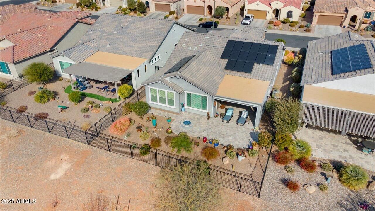 Fall in love with the Mountain Views on this highly upgraded Sanctuary model w/ Owned Solar on a Golf course lot! The Charming paver Courtyard greets you upon arrival. Once inside you will appreciate the Architectual details throughout Such as the Custom media wall, Stone Island surround & Primary bedroom Accent Wall. Tile flooring and Wooden shutters can be found throughout. The Kitchen w/ it's Chef lux cabinets, Granite counters, Tile backsplash, Reverse Osmosis, & Walk-in Pantry. The 4-foot extended garage offers ample storage cabinets, Epoxy floors, utility sink & Tankless water heater. The view through the center slider is breathtaking! Once outside Enjoy the extended Travertine patio and Firepit for evening entertaining.