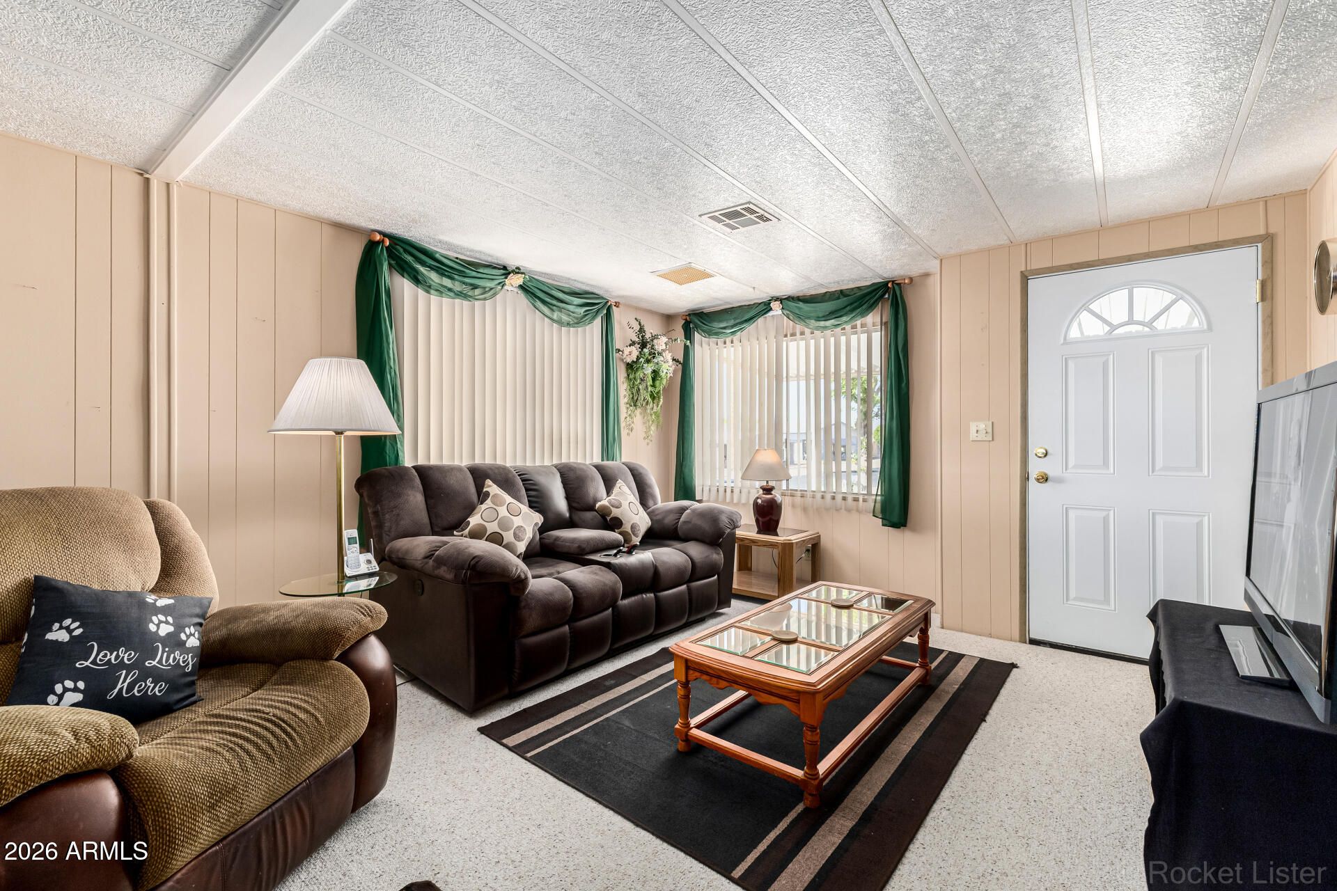 I do believe your clients will love this home! Spacious and furnished 2 bedroom, 2 bath home situated on a quiet street, off the beaten path. Heating and cooling very new, as well as the shingled roof and awnings. Hard to find RV parking. Inside laundry. Screened Arizona room. Conventional, VA and FHA financing available on this home! This one is a real pleasure to show.