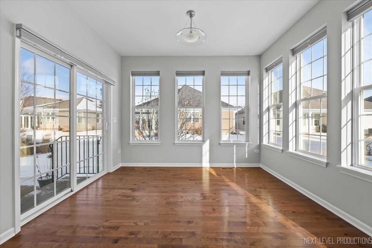 Welcome to highly sought after Naperville Carillon Club and low-maintenance 55+ living at its finest! This beautifully maintained two bedrooms PLUS FLEX ROOM, two full bath ranch home is the perfect balance of comfort and style. Greeted with a spacious open floor plan, along with hardwood flooring throughout, vaulted ceilings and gleaming with natural light, this home provides an updated kitchen with creamy soft close cabinetry with added lighting, granite countertops, stainless steel appliances, island for additional storage/counter space AND added breakfast bar seating. Enjoy an open concept living, dining, and entertaining space all in one. Featuring a sun-drenched sunroom wrapped in windows that fill the space with natural light as you look out to your concrete patio. Your primary suite includes two generous closets with a walk-in, dual vanity and shower with grab bars and seating accommodations. Your second bedroom with full guest bath and grab bar accommodation offers ease and comfort. Your oasis also includes an additional flex-style room perfect for office, den, crafts, or added guest room. Large deep pour unfinished basement is insulated with additional crawl area for added storage and with battery-backup sump. Spacious two car garage includes ramp accessibility into your home. This immaculately maintained home is the Monte Carlo series with original owner, freshly painted, and ready for you to move right in! Located just minutes from shopping, dining, entertainment, parks, paths and more! Carillon Club lifestyle boasts a 24-hour gated entry w/guard, exterior maintenance, clubhouse, indoor AND outdoor pools (for the kiddos too!), exercise facility, par-3 golfing, and planned outings/activities, and so much more! Contact me today for your private showing. Happy to Help!