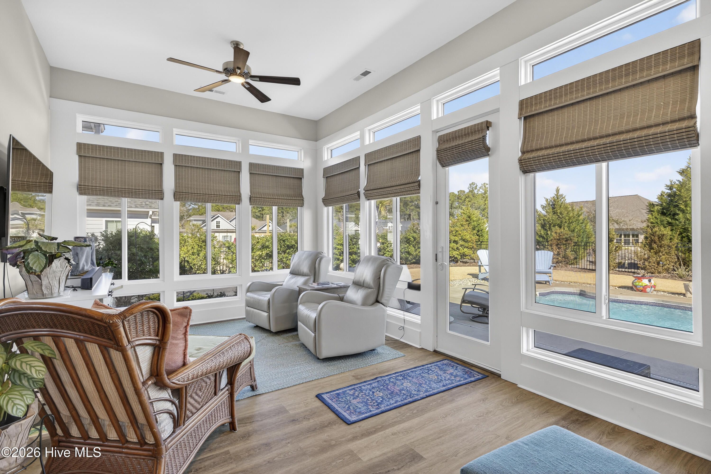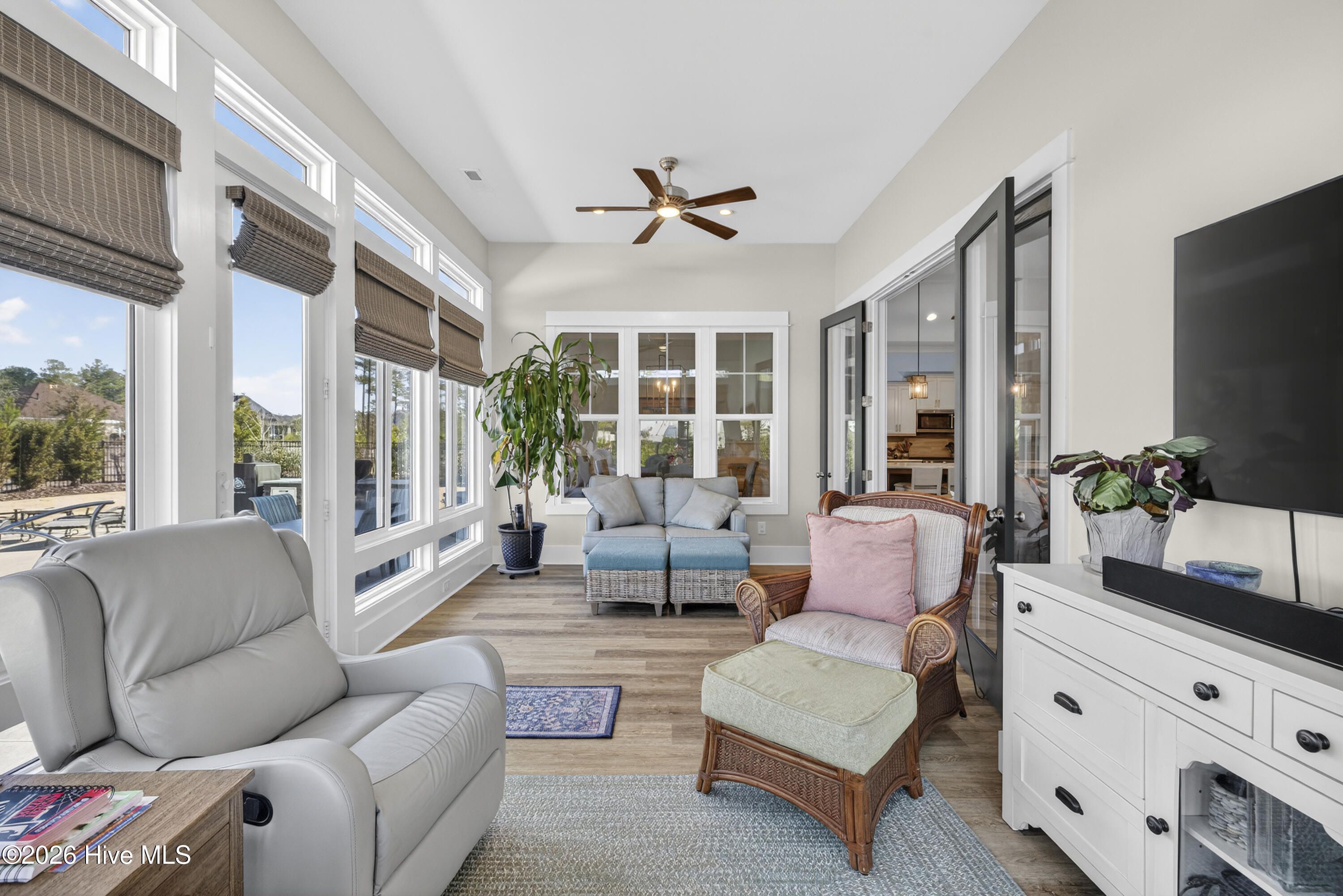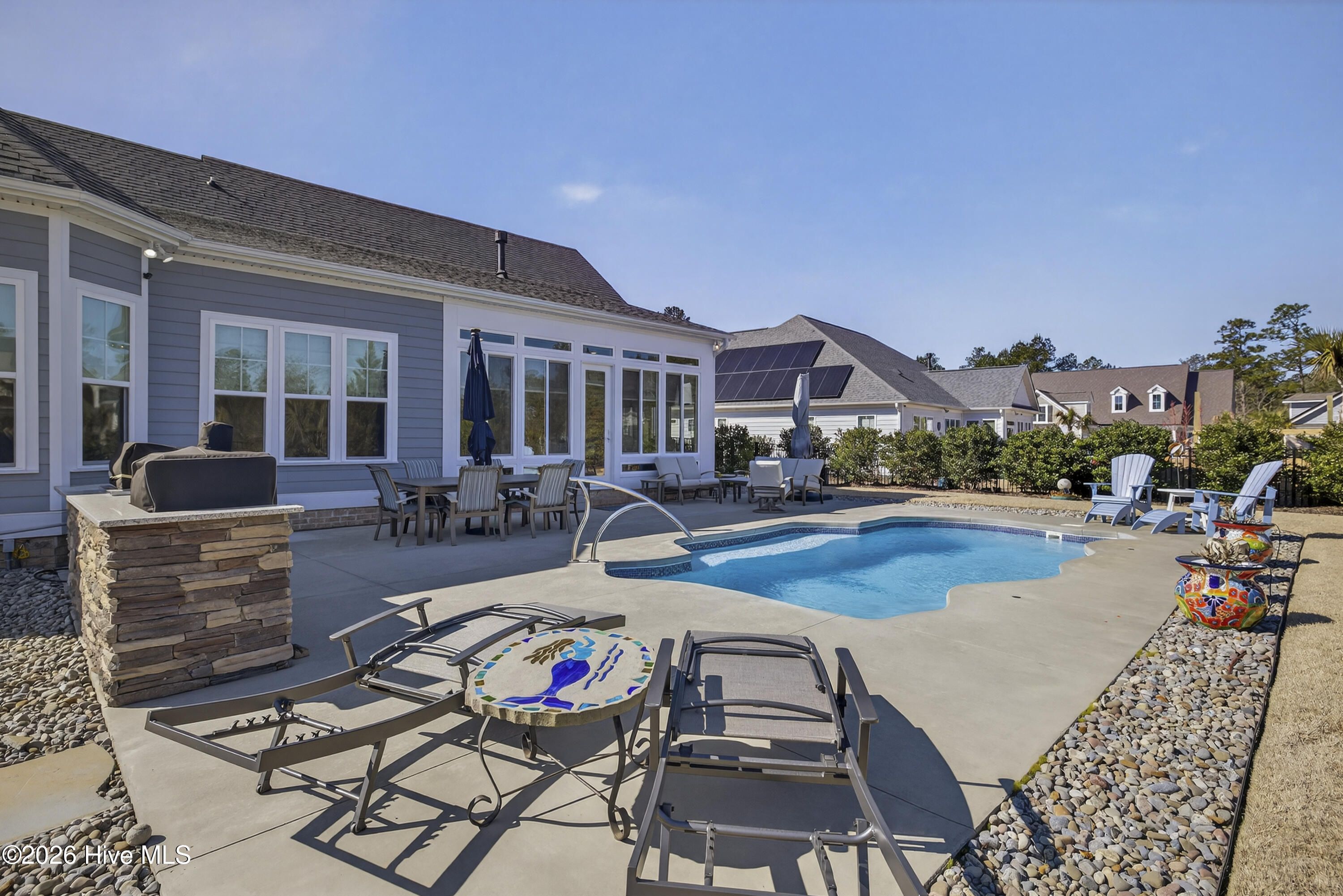 Welcome Home to this award winning Hagood Homes Cape Lookout plan....complete with bonus room , study, gourmet kitchen ....Beautiful 4 season room overlooking designer pool with an outdoor grilling station, to enjoy many evenings by the pool relaxing or entertaining. Custom features throughout this home ! Whole house generator makes living easy. Hagood Homes coastal style makes this home one of the most desirable in Compass Pointe. Main floor features include primary suite , 2 guest bedrooms , 2 ½ baths, study/office, great room , dining room , 4 season room and more. The upstairs suite features a sitting room and private bedroom , complete with full bath. An oversized garage offers plenty of space. Expanded /oversized walk-in attic , with energy efficient spray foam insulation offers great temperature for storage.