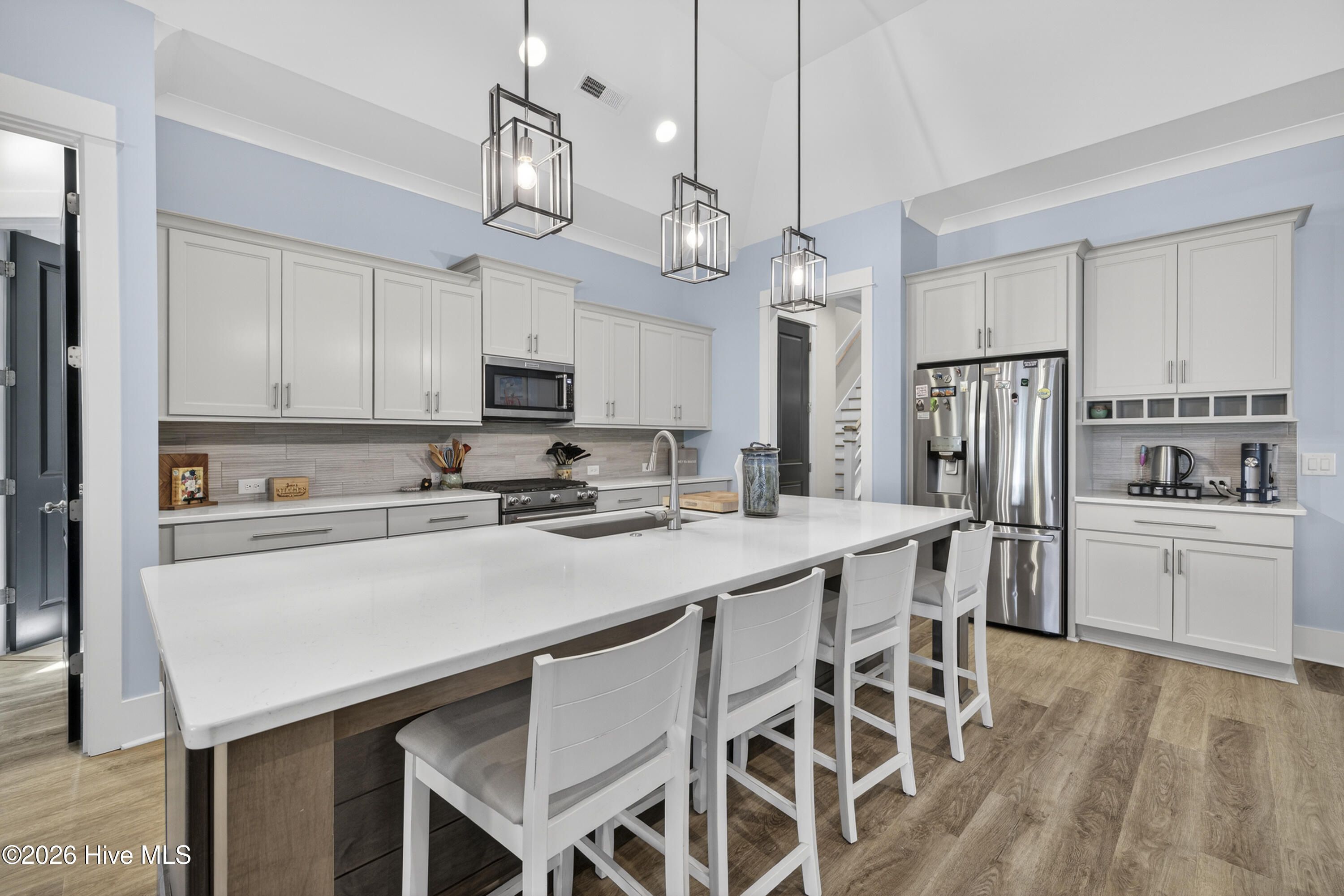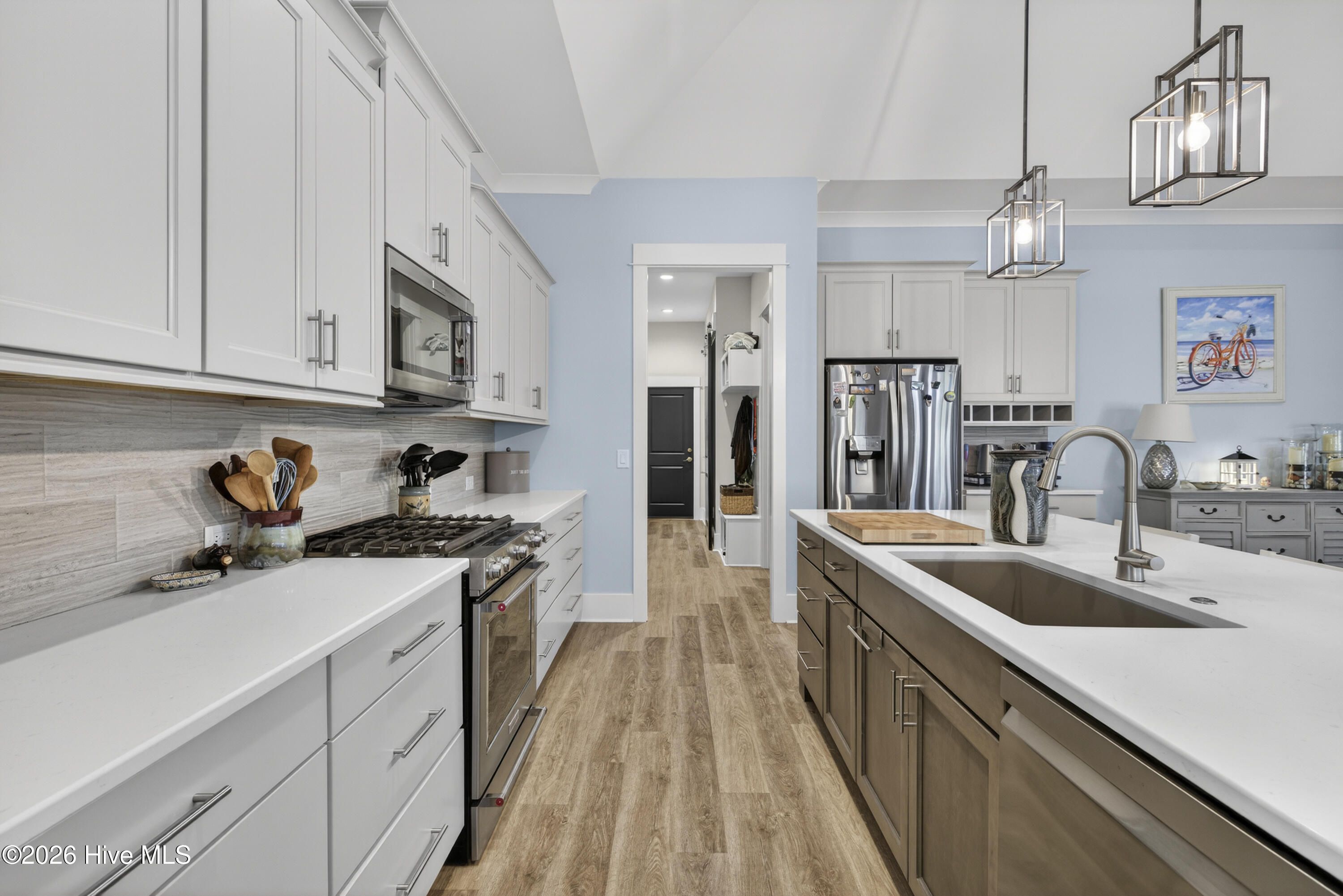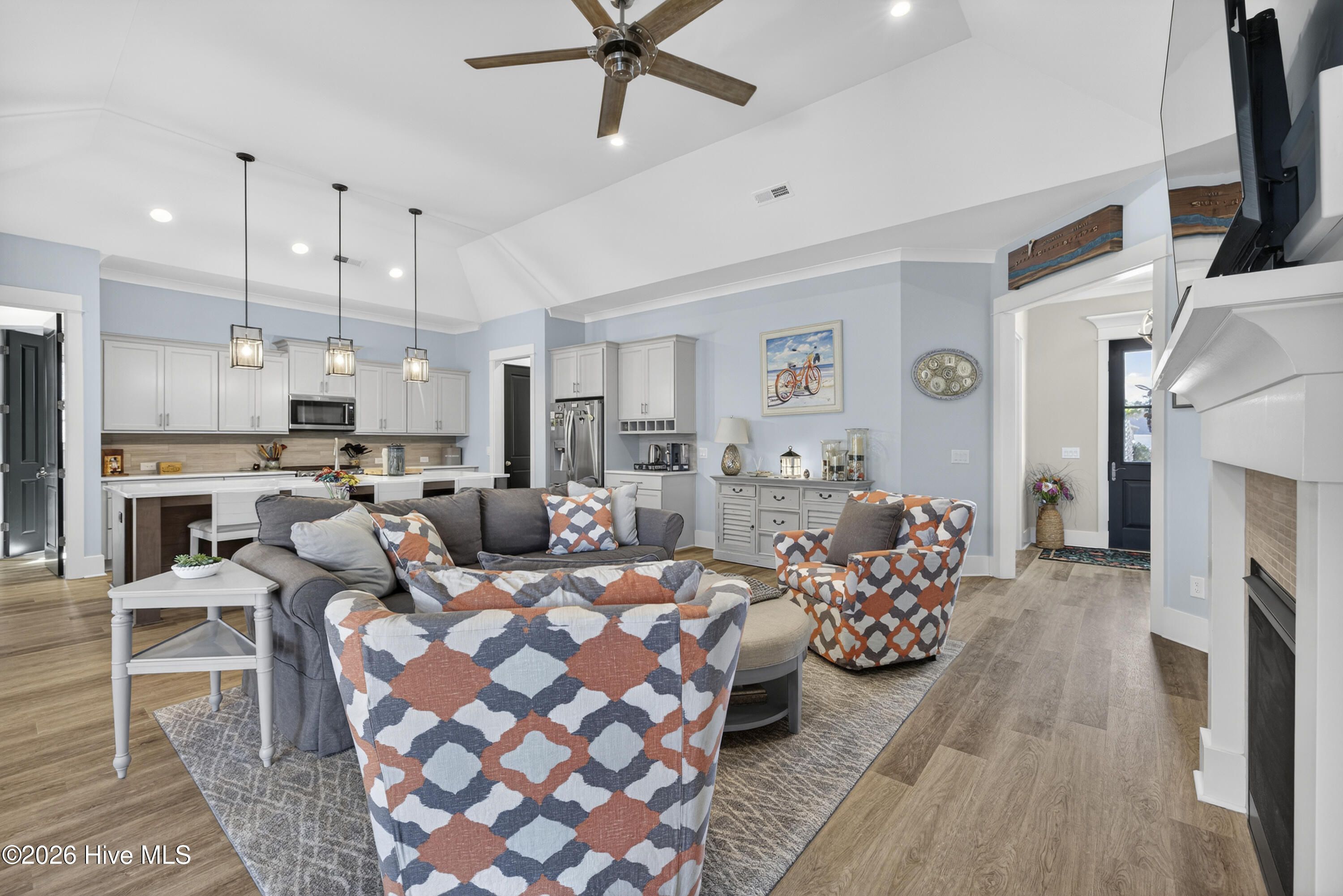 - Master Downstairs, Walk-in Closet(s), Vaulted Ceiling(s), High Ceilings, Entrance Foyer, Kitchen Island, Walk-in Shower