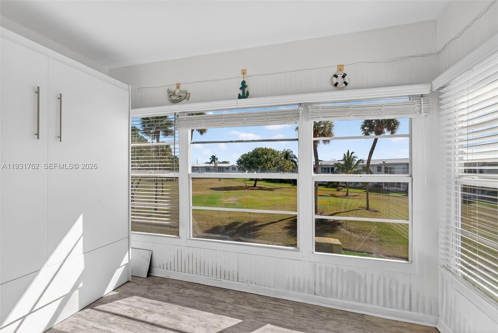 Beautiful unit with 1 bedroom & 1 bathroom, directly on the golf course in Leisureville, Pompano. Enjoy golf course living in this HOPA-verified condo with sweeping fairway views of a 9-hole, par-3 course. The Florida room features a Murphy bed, offering ideal flexibility for your guests to stay the night. The newly remodeled kitchen boasts modern cabinetry extended to the ceiling with soft-close drawers,. impact windows for added peace of mind. New vinyl flooring flows through the main living areas, with tile in the bedroom. Offered fully furnished and turnkey, this move-in-ready residence allows you to relax on the balcony (Florida room) overlooking the golf course. Enjoy & play free golf as often as you like. Located in a well-maintained 55+ community with excellent financials, Leisureville offers two heated pools, two clubhouses, courtesy bus service, community room, on-site management, walking paths, BBQ areas, ping pong, and shuffleboard. The land is fully paid with no land or recreation lease. The building has reserves, a newer roof, and was recently tented. A small pet is allowed, there are no assessments, and the location is just minutes from Pompano Beach. WOW! This is a must see!