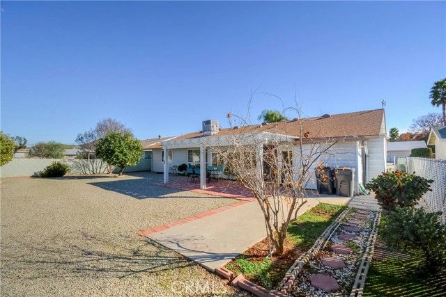 55+ SENIOR COMMUNITY | 3 BEDROOMS | 2 BATHROOMS | 2-CAR GARAGE | LOW TAX | LOW HOA | MOVE-IN READY Welcome to this highly sought-after single-story home located in the beautiful 55+ community of Menifee. This updated, bright, and open floor plan offers both comfort and style. The spacious kitchen features Corian countertops, matching wood cabinetry, a tiled backsplash, and plenty of storage. The home boasts wood laminate flooring, recessed lighting, ceiling fans, plantation shutters, and elegant crown molding throughout. The primary suite offers a generous bedroom, walk-in closet, and an upgraded bathroom with a beautifully tiled walk-in shower. Two additional well-sized bedrooms and a full bathroom provide ample space for guests or a home office. Enjoy a bright and airy living room, dining area, plus a large second living space—perfect for relaxing or entertaining. The laundry room is conveniently located in the workshop area at the rear of the garage. Step outside to a spacious low-maintenance backyard with an Alumawood patio cover—ideal for outdoor gatherings and family entertaining. Conveniently located near the 215 Freeway, shopping centers, and restaurants. Community amenities include a fitness center, two swimming pools, hot tub, meeting room, and more.