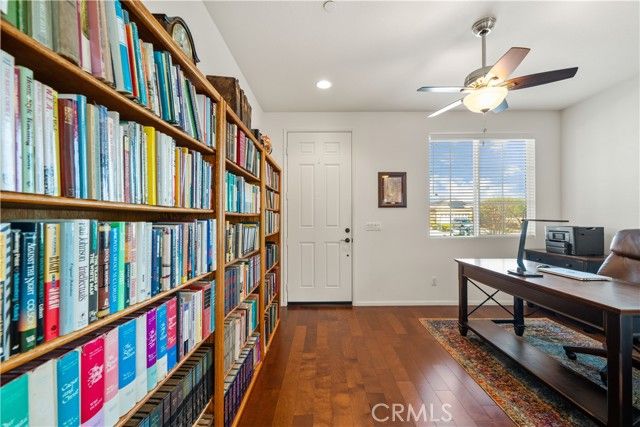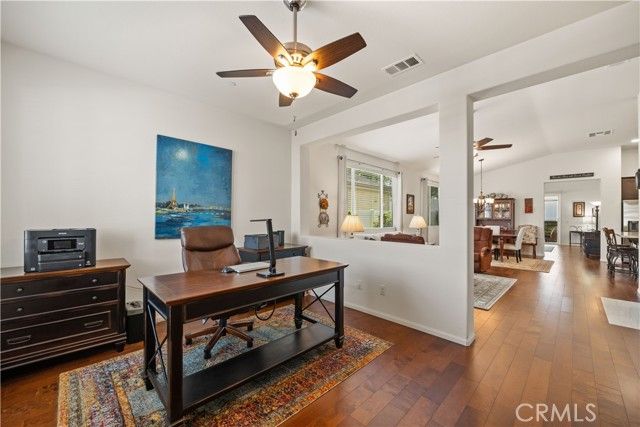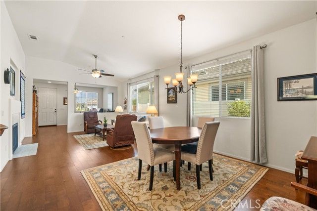 Discover the perfect blend of comfort and elegance in this stunning home, nestled in the desirable 55+ gated community of Orchid. Tucked away on a peaceful cul-de-sac, this property offers a serene, low-maintenance lifestyle that’s sure to impress. Step inside to a welcoming formal dining area and a spacious living room with a cozy fireplace, creating the perfect backdrop for gatherings or quiet evenings at home. The gourmet kitchen is a true centerpiece, featuring quartz countertops, stainless steel appliances, upgraded cabinetry, a walk-in pantry, and a generous island overlooking the expansive great room. For added convenience and peace of mind, the home is equipped with a whole house soft water system and a reverse osmosis unit under the kitchen sink, delivering clean, high-quality water throughout. The family room, located just off the primary bedroom, offers seamless access to the private backyard, where an Alumawood patio cover with ceiling fans provides year-round comfort for outdoor relaxation. Retreat to the luxurious primary suite, thoughtfully designed with dual sinks, a walk-in shower, and a spacious walk-in closet. Additional highlights include a conveniently located laundry area inside the two-car garage, as well as ample guest parking on the street. The community offers an abundance of amenities, including a sparkling pool, jacuzzi, clubhouse, and tennis courts, all just across the street from a larger park. And with Menifee’s best shopping, dining, and entertainment only minutes away, this home truly has it all. Don’t miss your chance to experience the charm of Rim Creek — schedule your private tour today!