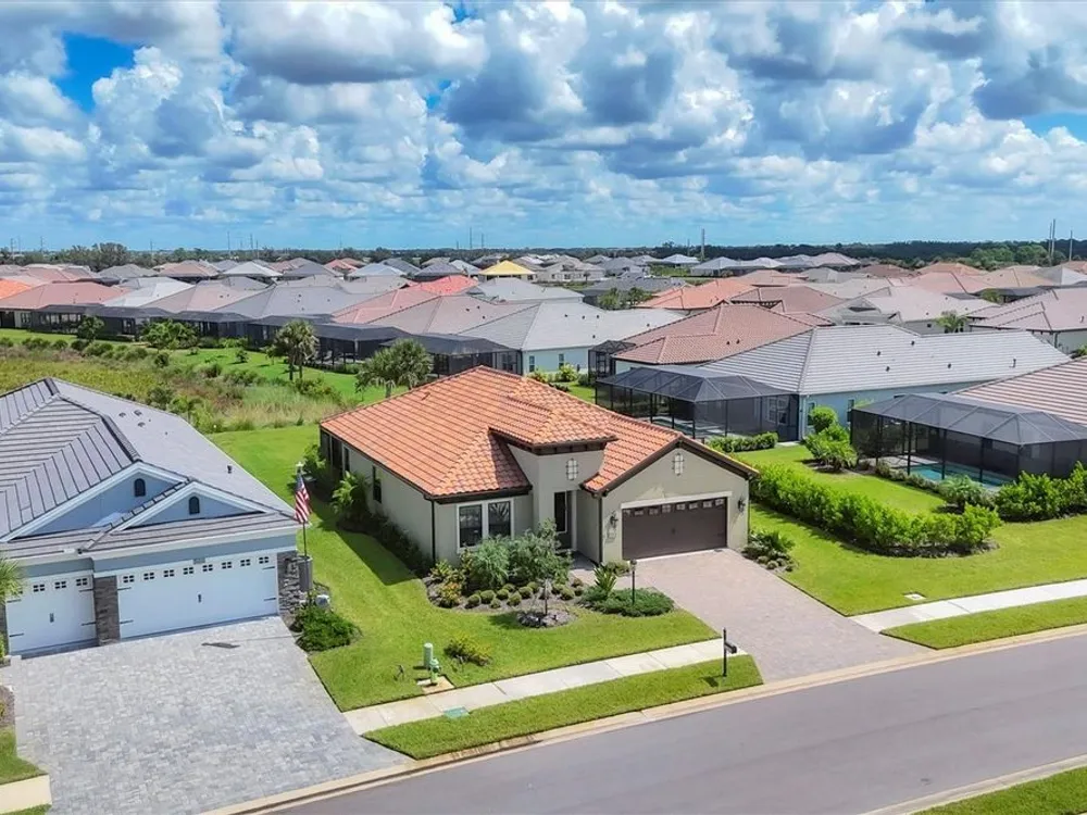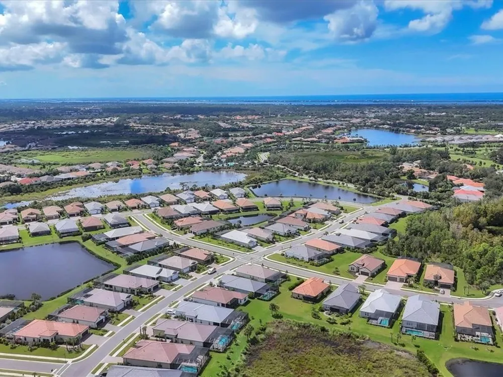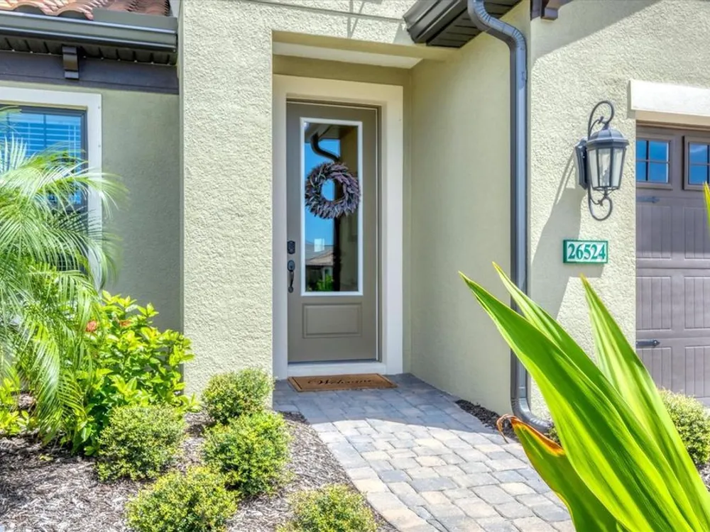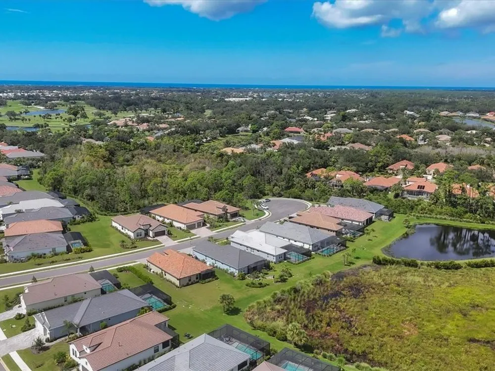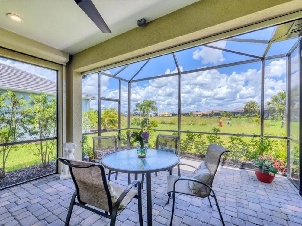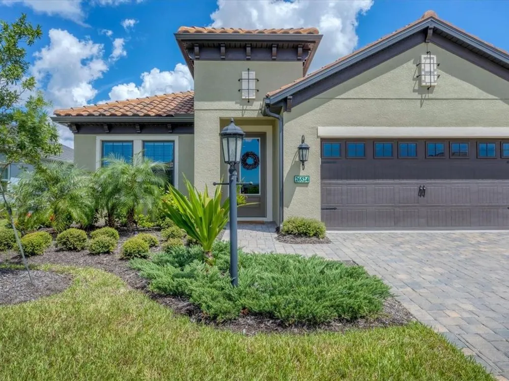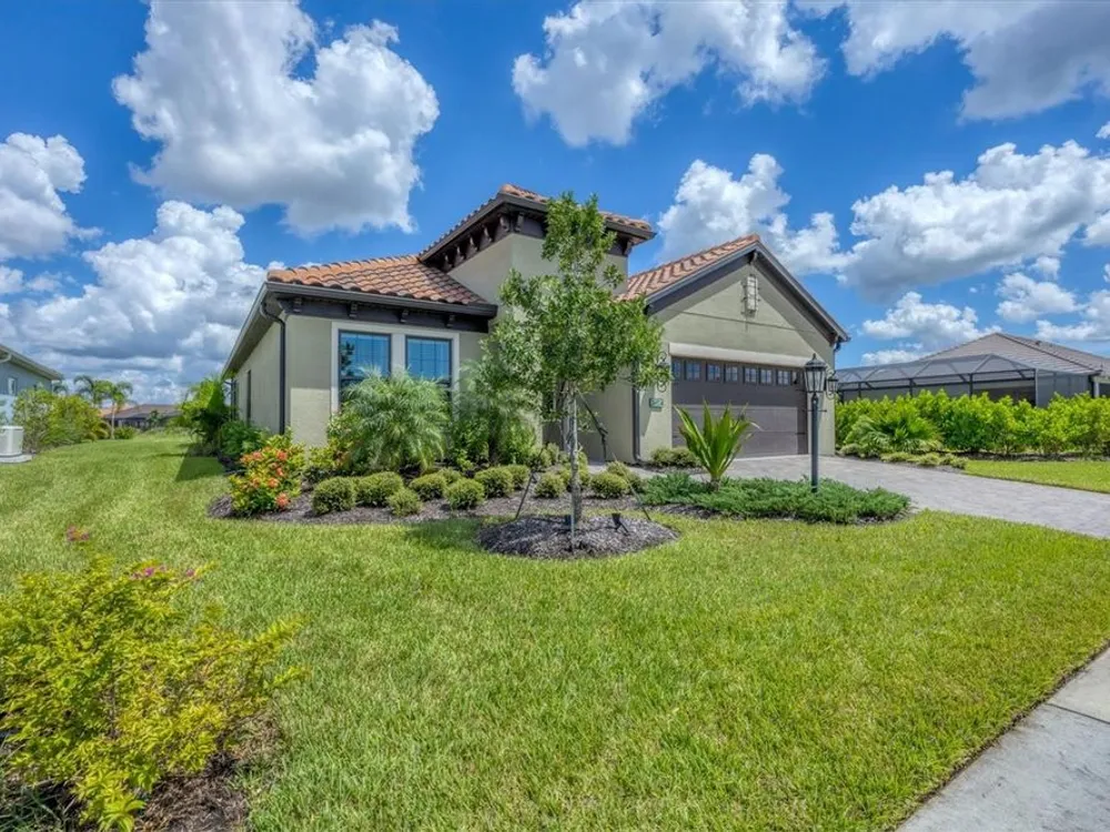 Designed to capture the best of its coastal locale, this charming and meticulously maintained home invites all who enter to exhale. It is a calm oasis on a quiet cul-de-sac, cozy and relaxed, where owners and guests can unwind after spending a sun-kissed day at the pristine Gulf beaches of nearby Manasota Key. Lush tropical landscaping and an attractive paver driveway further enhance the home's handsome exterior. Upon entry, guests will appreciate a spacious, open floor plan and a fresh, neutral color palette highlighted by thoughtful design elements, resulting in a feeling of understated luxury that is simultaneously welcoming and relaxed. With a design that makes the living room, dining area, and kitchen the heart of family life, this floor plan offers a convenient flex room that could be used as a secondary living area, a home office, or a den. Throughout the home, spacious volume ceilings and abundant natural light add an eye-appealing ambiance. Sliders in the living room open to the extended lanai, creating a strong indoor-outdoor connection that encourages al fresco living while taking full advantage of Florida's signature temperate climate. Fuss-free outdoor furniture and decor can be easily arranged to encourage leisurely conversation and relaxation, creating an undeniable resort-style vibe and the perfect place to savor a 5:00 cheeseboard. The home's heart is a well-appointed kitchen with beautiful Shaker-style cabinetry accentuated with thoughtfully chosen Quartz countertops and an attractive tile backsplash. Upgraded GE stainless steel appliances and a walk-in pantry make food prep a pleasure. The primary bedroom is a sumptuous private retreat--a haven of comfort and serenity, with a fabulous ensuite bath featuring split dual vanities with Quartz countertops, a spacious walk-in shower, elegant porcelain tile flooring, and a private water closet. One of the two secondary bedrooms is currently in use as a home office. Nearby, another guest bedroom was designed to accommodate visitors in comfort and style with a large walk-in closet. The oversized guest bathroom features a separate water closet with a shower. Other notable home features include LVT flooring in the main living areas, a Briggs and Stratton whole-house generator, and automated hurricane shutters on the lanai. Boca Royale is a vibrant, gated, and amenity-rich community within three miles, as the seagull flies, to the salty air and beautiful beaches of Manasota Key and a short drive to Wellen Park. Central to the community is an elegant Georgian-style clubhouse which showcases a spectacular view of the manicured golf course. Residents and their guests can explore a full range of dining options, from casual to formal. There is a resort-style pool, a spa, clubroom facilities, and an on-site dog park. Golf enthusiasts will appreciate the state-of-the-art course and its driving range, putting green, and pro shop. If that's not enough, there are six lighted Har-Tru clay tennis courts and eight lighted pickleball courts. The club offers golf, racquet, and social memberships--the choice is yours! This charming and inviting home is filled with happy moments captured in time, and there is plenty of opportunity to create new memories. It is a comfortable gathering place for family and friends, and it is just waiting for you to call it 'home.' Call today to schedule a private showing, and prepare to be captivated by this dynamic community where every day is a vacation.