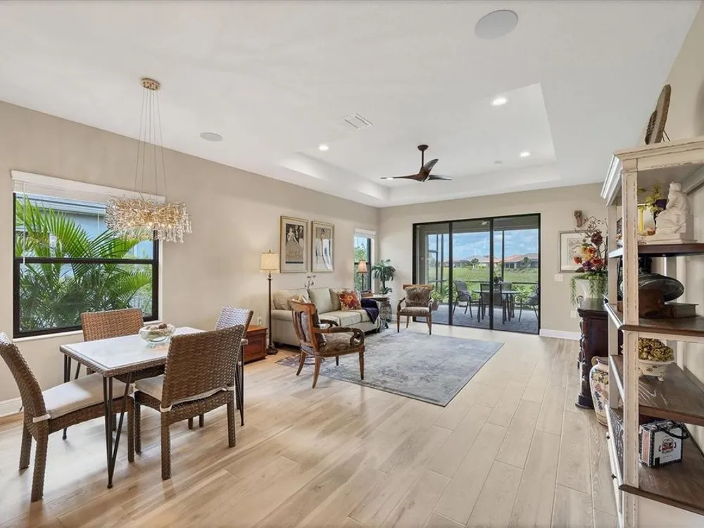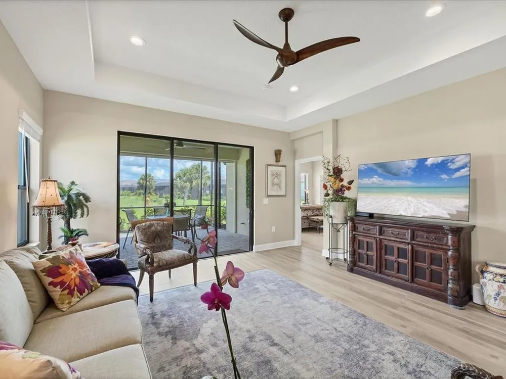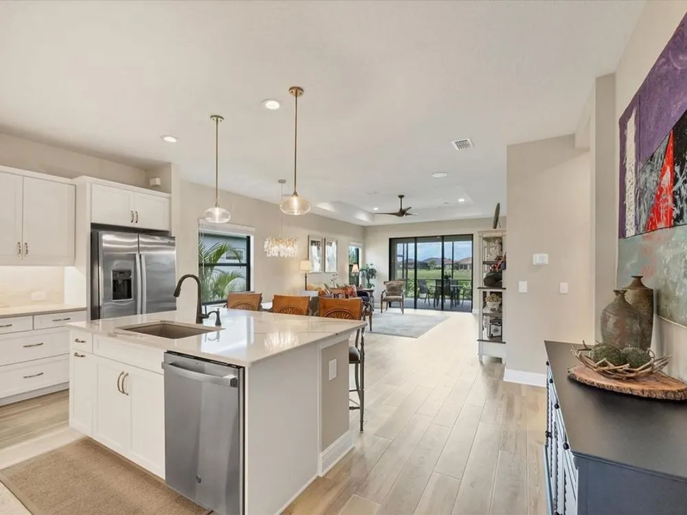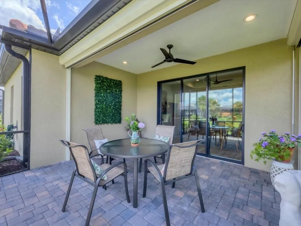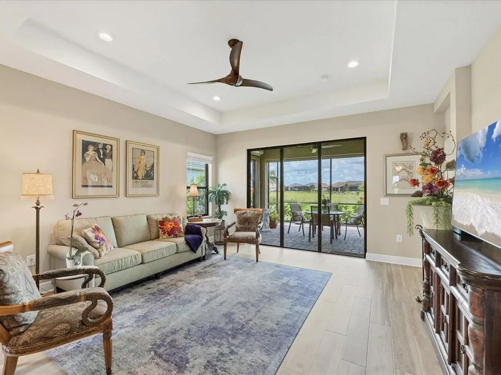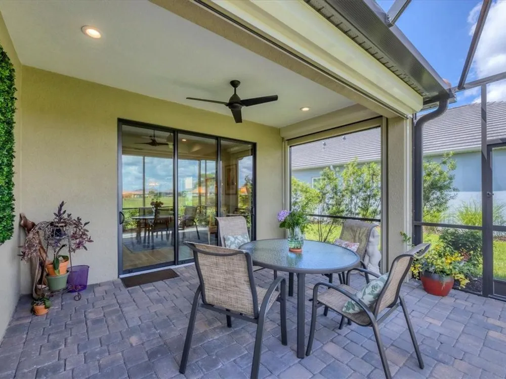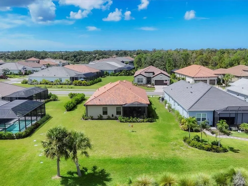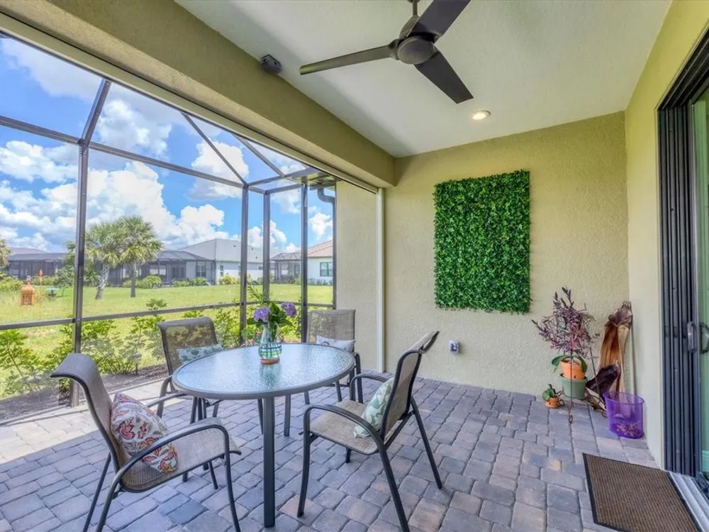 Designed to capture the best of its coastal locale, this charming and meticulously maintained home invites all who enter to exhale. It is a calm oasis on a quiet cul-de-sac, cozy and relaxed, where owners and guests can unwind after spending a sun-kissed day at the pristine Gulf beaches of nearby Manasota Key. Lush tropical landscaping and an attractive paver driveway further enhance the home's handsome exterior. Upon entry, guests will appreciate a spacious, open floor plan and a fresh, neutral color palette highlighted by thoughtful design elements, resulting in a feeling of understated luxury that is simultaneously welcoming and relaxed. With a design that makes the living room, dining area, and kitchen the heart of family life, this floor plan offers a convenient flex room that could be used as a secondary living area, a home office, or a den. Throughout the home, spacious volume ceilings and abundant natural light add an eye-appealing ambiance. Sliders in the living room open to the extended lanai, creating a strong indoor-outdoor connection that encourages al fresco living while taking full advantage of Florida's signature temperate climate. Fuss-free outdoor furniture and decor can be easily arranged to encourage leisurely conversation and relaxation, creating an undeniable resort-style vibe and the perfect place to savor a 5:00 cheeseboard. The home's heart is a well-appointed kitchen with beautiful Shaker-style cabinetry accentuated with thoughtfully chosen Quartz countertops and an attractive tile backsplash. Upgraded GE stainless steel appliances and a walk-in pantry make food prep a pleasure. The primary bedroom is a sumptuous private retreat--a haven of comfort and serenity, with a fabulous ensuite bath featuring split dual vanities with Quartz countertops, a spacious walk-in shower, elegant porcelain tile flooring, and a private water closet. One of the two secondary bedrooms is currently in use as a home office. Nearby, another guest bedroom was designed to accommodate visitors in comfort and style with a large walk-in closet. The oversized guest bathroom features a separate water closet with a shower. Other notable home features include LVT flooring in the main living areas, a Briggs and Stratton whole-house generator, and automated hurricane shutters on the lanai. Boca Royale is a vibrant, gated, and amenity-rich community within three miles, as the seagull flies, to the salty air and beautiful beaches of Manasota Key and a short drive to Wellen Park. Central to the community is an elegant Georgian-style clubhouse which showcases a spectacular view of the manicured golf course. Residents and their guests can explore a full range of dining options, from casual to formal. There is a resort-style pool, a spa, clubroom facilities, and an on-site dog park. Golf enthusiasts will appreciate the state-of-the-art course and its driving range, putting green, and pro shop. If that's not enough, there are six lighted Har-Tru clay tennis courts and eight lighted pickleball courts. The club offers golf, racquet, and social memberships--the choice is yours! This charming and inviting home is filled with happy moments captured in time, and there is plenty of opportunity to create new memories. It is a comfortable gathering place for family and friends, and it is just waiting for you to call it 'home.' Call today to schedule a private showing, and prepare to be captivated by this dynamic community where every day is a vacation.