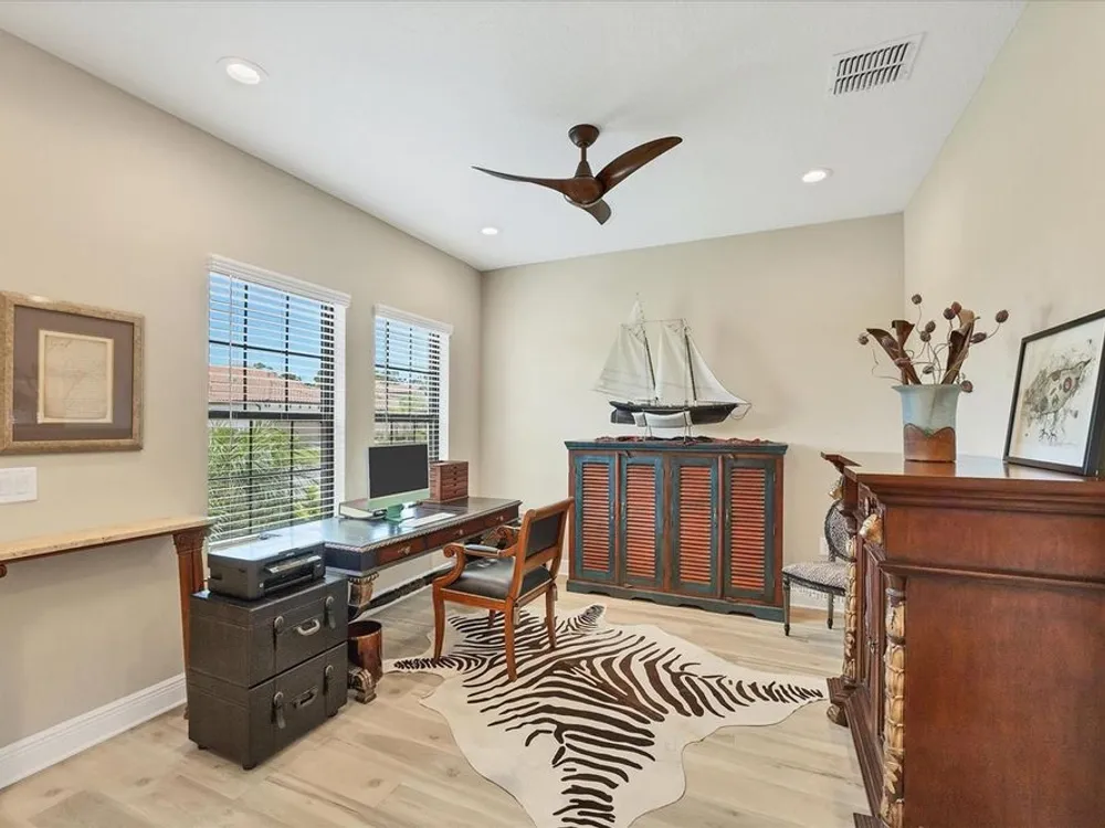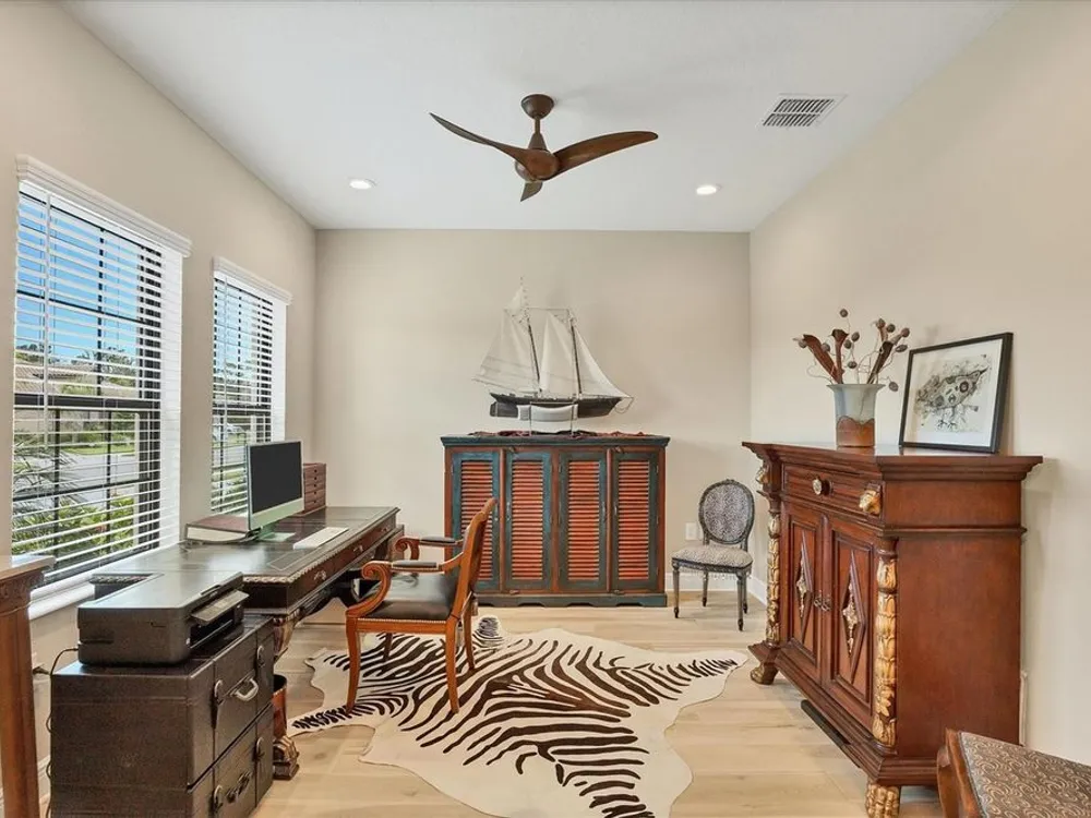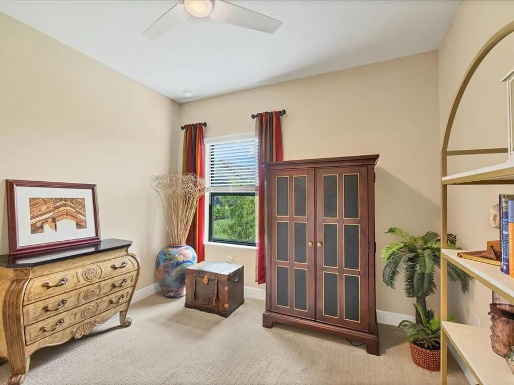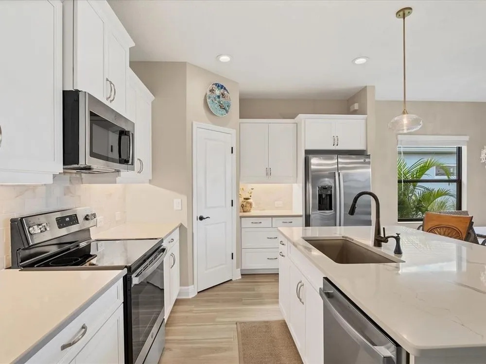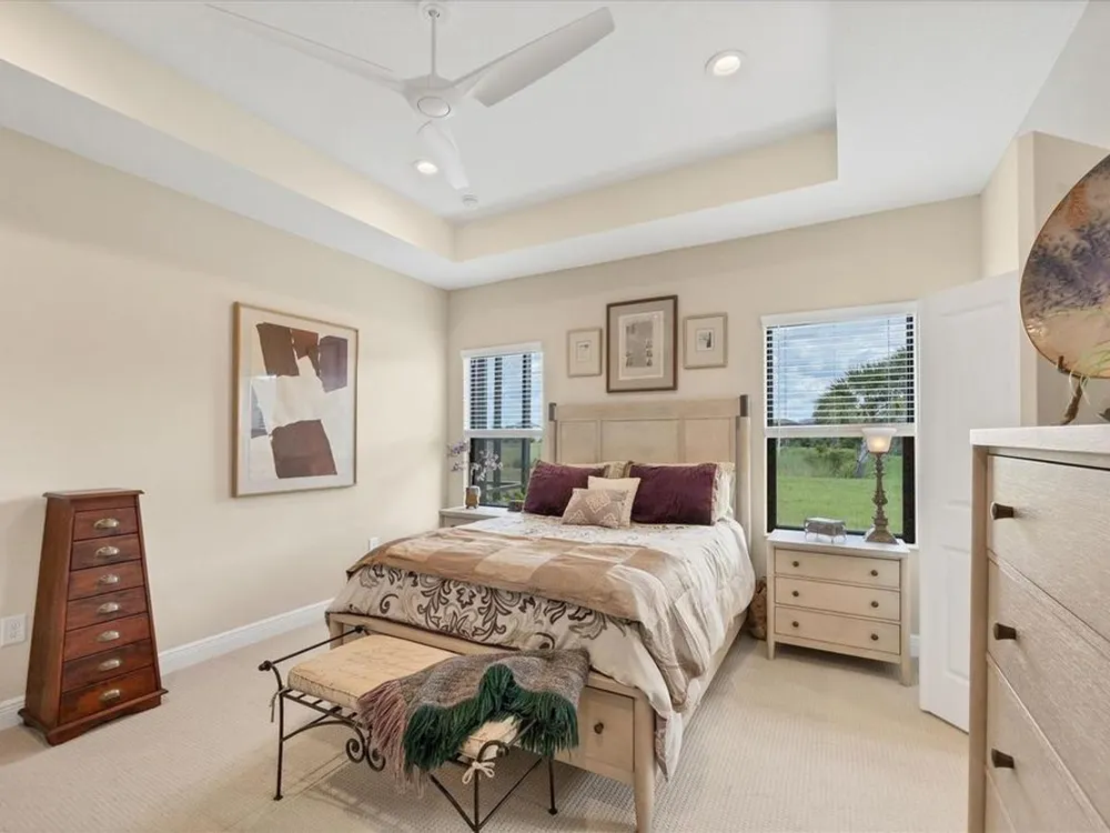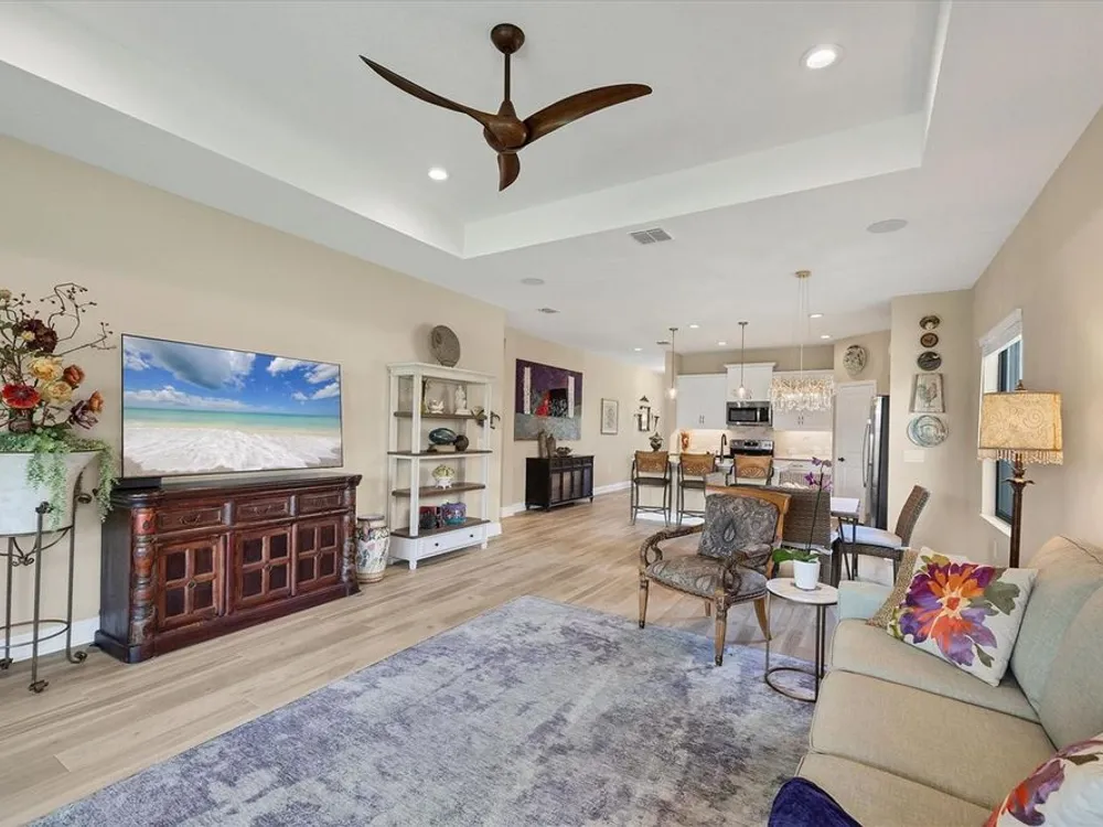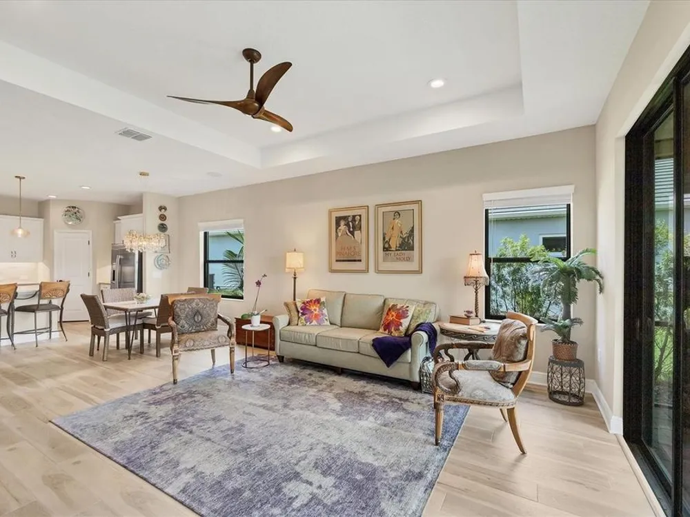 Designed to capture the best of its coastal locale, this charming and meticulously maintained home invites all who enter to exhale. It is a calm oasis on a quiet cul-de-sac, cozy and relaxed, where owners and guests can unwind after spending a sun-kissed day at the pristine Gulf beaches of nearby Manasota Key. Lush tropical landscaping and an attractive paver driveway further enhance the home's handsome exterior. Upon entry, guests will appreciate a spacious, open floor plan and a fresh, neutral color palette highlighted by thoughtful design elements, resulting in a feeling of understated luxury that is simultaneously welcoming and relaxed. With a design that makes the living room, dining area, and kitchen the heart of family life, this floor plan offers a convenient flex room that could be used as a secondary living area, a home office, or a den. Throughout the home, spacious volume ceilings and abundant natural light add an eye-appealing ambiance. Sliders in the living room open to the extended lanai, creating a strong indoor-outdoor connection that encourages al fresco living while taking full advantage of Florida's signature temperate climate. Fuss-free outdoor furniture and decor can be easily arranged to encourage leisurely conversation and relaxation, creating an undeniable resort-style vibe and the perfect place to savor a 5:00 cheeseboard. The home's heart is a well-appointed kitchen with beautiful Shaker-style cabinetry accentuated with thoughtfully chosen Quartz countertops and an attractive tile backsplash. Upgraded GE stainless steel appliances and a walk-in pantry make food prep a pleasure. The primary bedroom is a sumptuous private retreat--a haven of comfort and serenity, with a fabulous ensuite bath featuring split dual vanities with Quartz countertops, a spacious walk-in shower, elegant porcelain tile flooring, and a private water closet. One of the two secondary bedrooms is currently in use as a home office. Nearby, another guest bedroom was designed to accommodate visitors in comfort and style with a large walk-in closet. The oversized guest bathroom features a separate water closet with a shower. Other notable home features include LVT flooring in the main living areas, a Briggs and Stratton whole-house generator, and automated hurricane shutters on the lanai. Boca Royale is a vibrant, gated, and amenity-rich community within three miles, as the seagull flies, to the salty air and beautiful beaches of Manasota Key and a short drive to Wellen Park. Central to the community is an elegant Georgian-style clubhouse which showcases a spectacular view of the manicured golf course. Residents and their guests can explore a full range of dining options, from casual to formal. There is a resort-style pool, a spa, clubroom facilities, and an on-site dog park. Golf enthusiasts will appreciate the state-of-the-art course and its driving range, putting green, and pro shop. If that's not enough, there are six lighted Har-Tru clay tennis courts and eight lighted pickleball courts. The club offers golf, racquet, and social memberships--the choice is yours! This charming and inviting home is filled with happy moments captured in time, and there is plenty of opportunity to create new memories. It is a comfortable gathering place for family and friends, and it is just waiting for you to call it 'home.' Call today to schedule a private showing, and prepare to be captivated by this dynamic community where every day is a vacation.