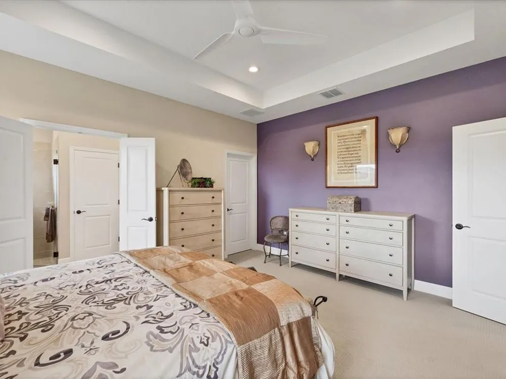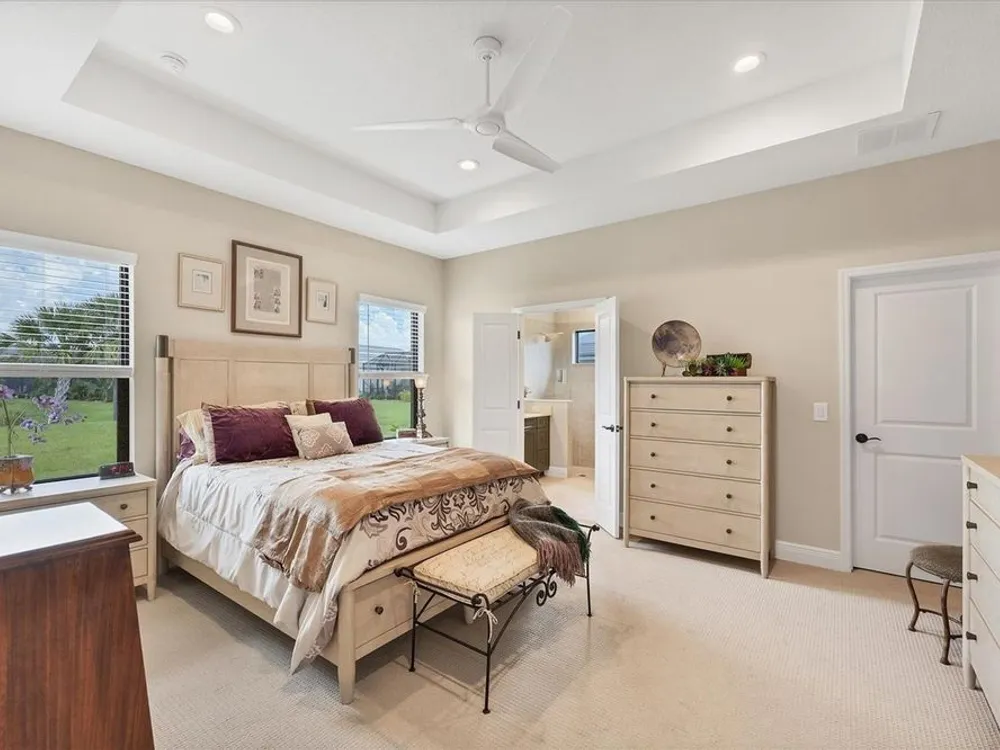 - Ceiling Fan(s), High Ceilings, Kitchen/Family Room Combo, Open Floorplan, Stone Counters, Thermostat, Tray Ceiling(s), Walk-In Closet(s)