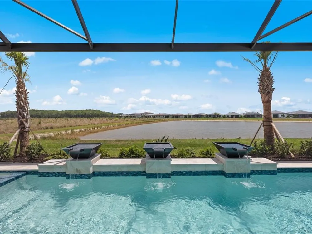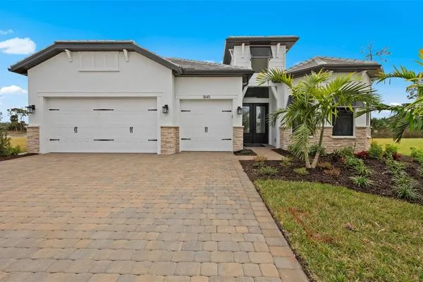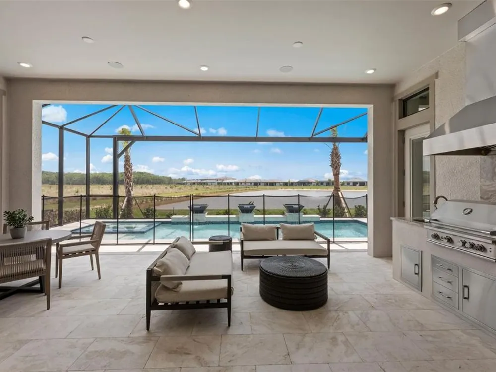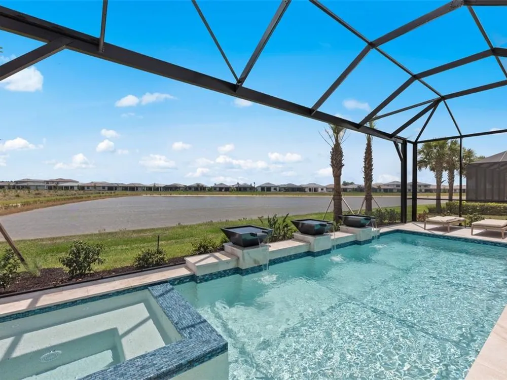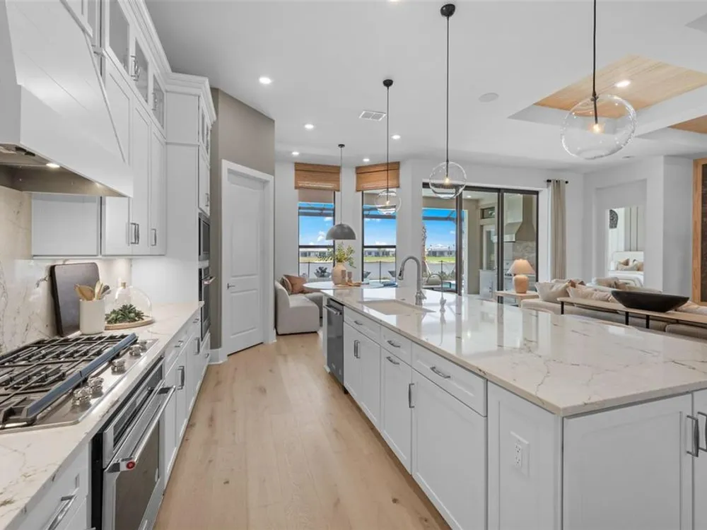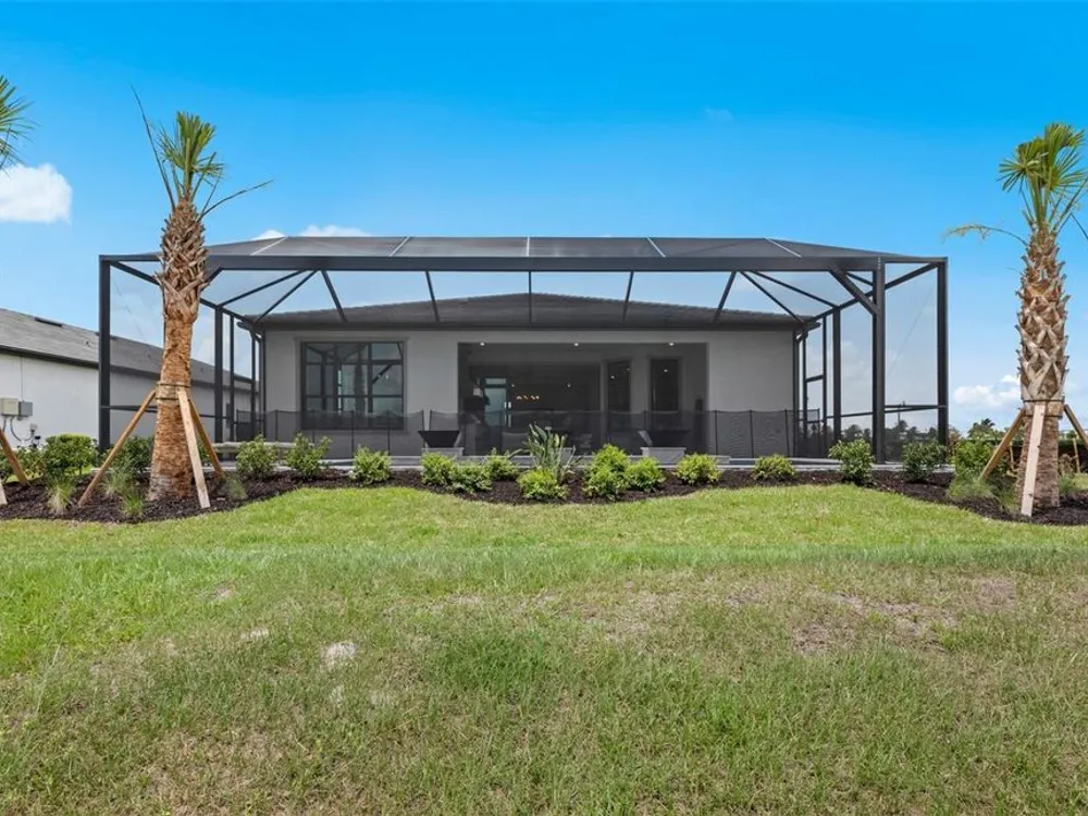 Under Construction. NEW CONSTRUCTION! This Layton floorplan features 3 bedrooms, 3.5 bathrooms, a den, and a 3-car garage, complemented by a custom pool and spa with a pool bath. The home showcases dual-tone cabinetry with white cabinets and a gray island, quartz countertops, and built-in kitchen appliances for a modern, functional kitchen. Elegant tray ceilings enhance the foyer, gathering room, and owner’s suite, while 18"x36" tile flooring throughout and epoxy garage flooring provide durability and style. Additional features include a laundry room with sink, cabinets, and countertops, making this home both luxurious and practical. The amenities features 21 sports courts including pickleball, tennis and bocce ball, a resort style pool with a beach entry and attached lap pool with multiple swim lanes, boardwalk with a kayak launch, memorial garden, community garden, dog park, miles of trails, gated entry with guard, second gate to Manasota Beach road, full time activity director, and an 11,000 sq ft fitness center featuring a cafe and 2 restaurants.