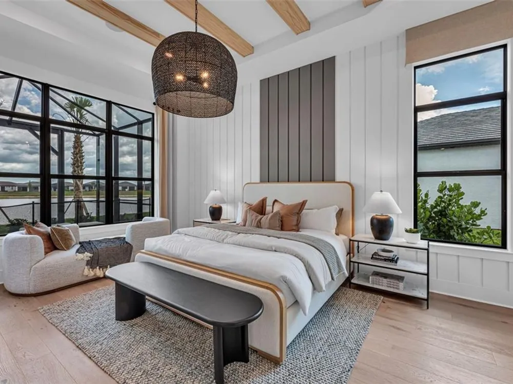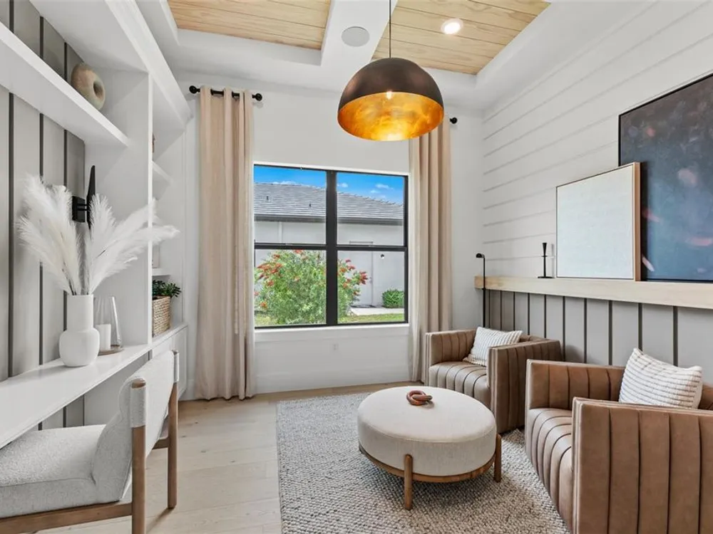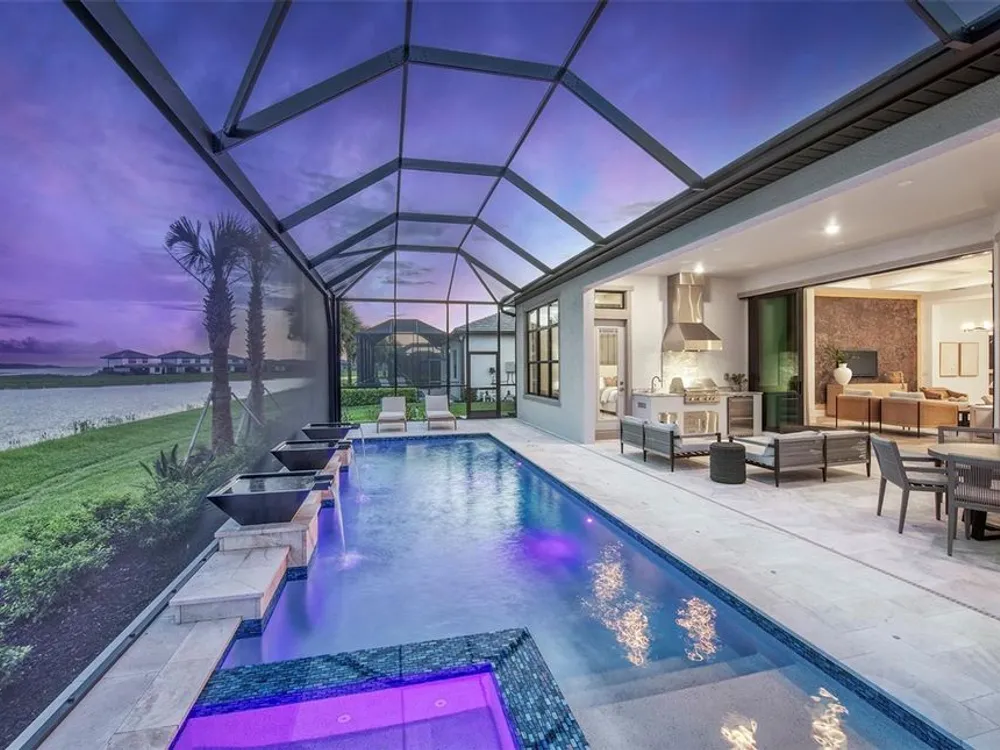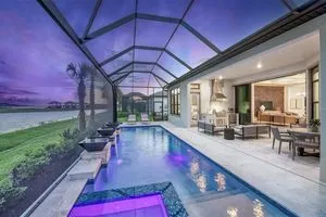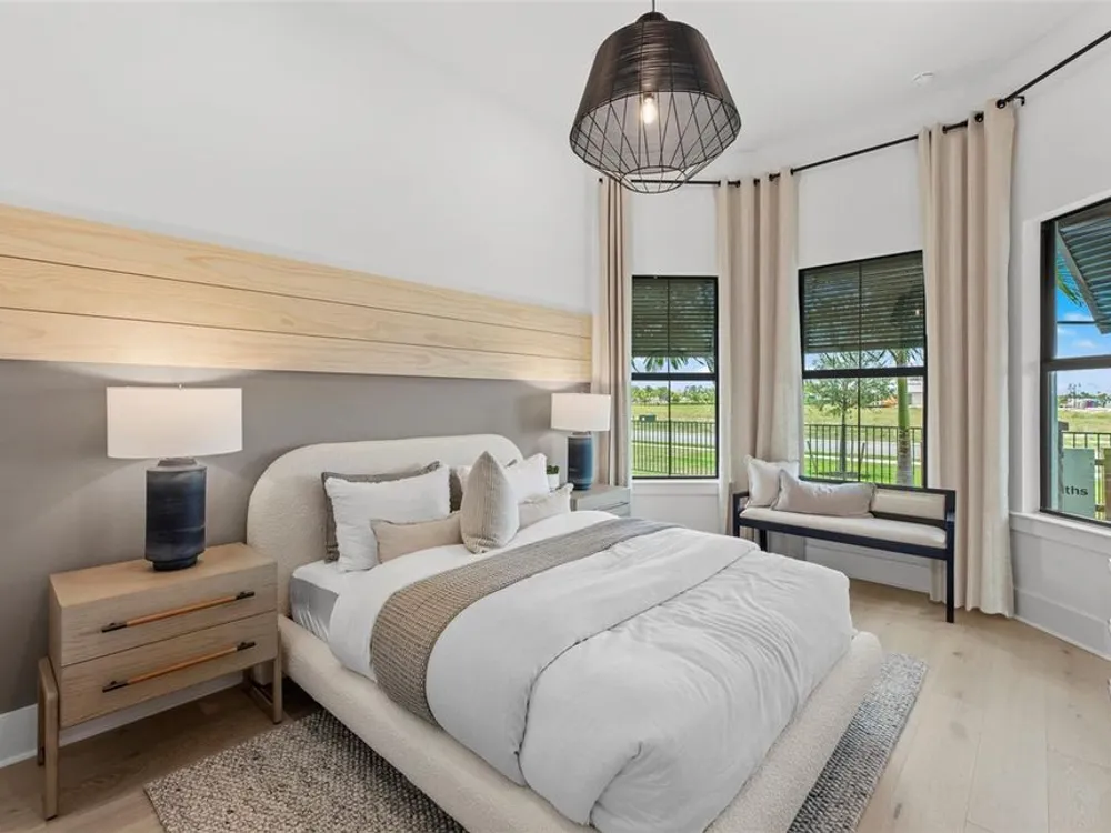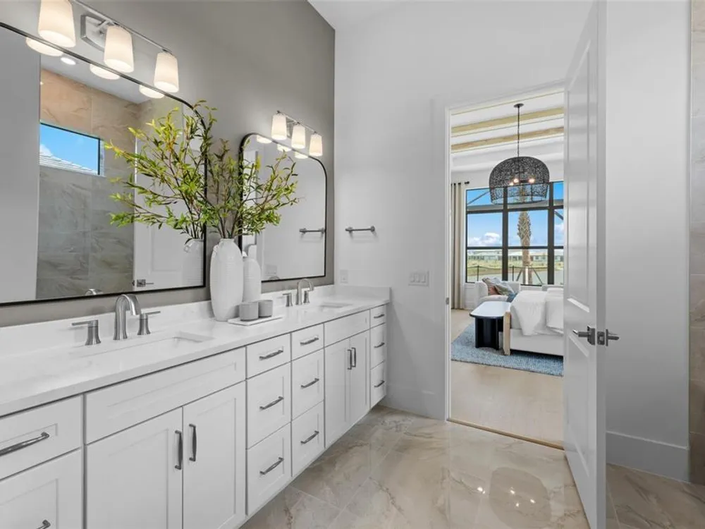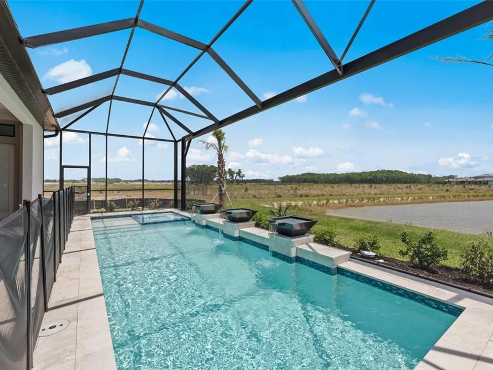Under Construction. NEW CONSTRUCTION! This Layton floorplan features 3 bedrooms, 3.5 bathrooms, a den, and a 3-car garage, complemented by a custom pool and spa with a pool bath. The home showcases dual-tone cabinetry with white cabinets and a gray island, quartz countertops, and built-in kitchen appliances for a modern, functional kitchen. Elegant tray ceilings enhance the foyer, gathering room, and owner’s suite, while 18"x36" tile flooring throughout and epoxy garage flooring provide durability and style. Additional features include a laundry room with sink, cabinets, and countertops, making this home both luxurious and practical. The amenities features 21 sports courts including pickleball, tennis and bocce ball, a resort style pool with a beach entry and attached lap pool with multiple swim lanes, boardwalk with a kayak launch, memorial garden, community garden, dog park, miles of trails, gated entry with guard, second gate to Manasota Beach road, full time activity director, and an 11,000 sq ft fitness center featuring a cafe and 2 restaurants.