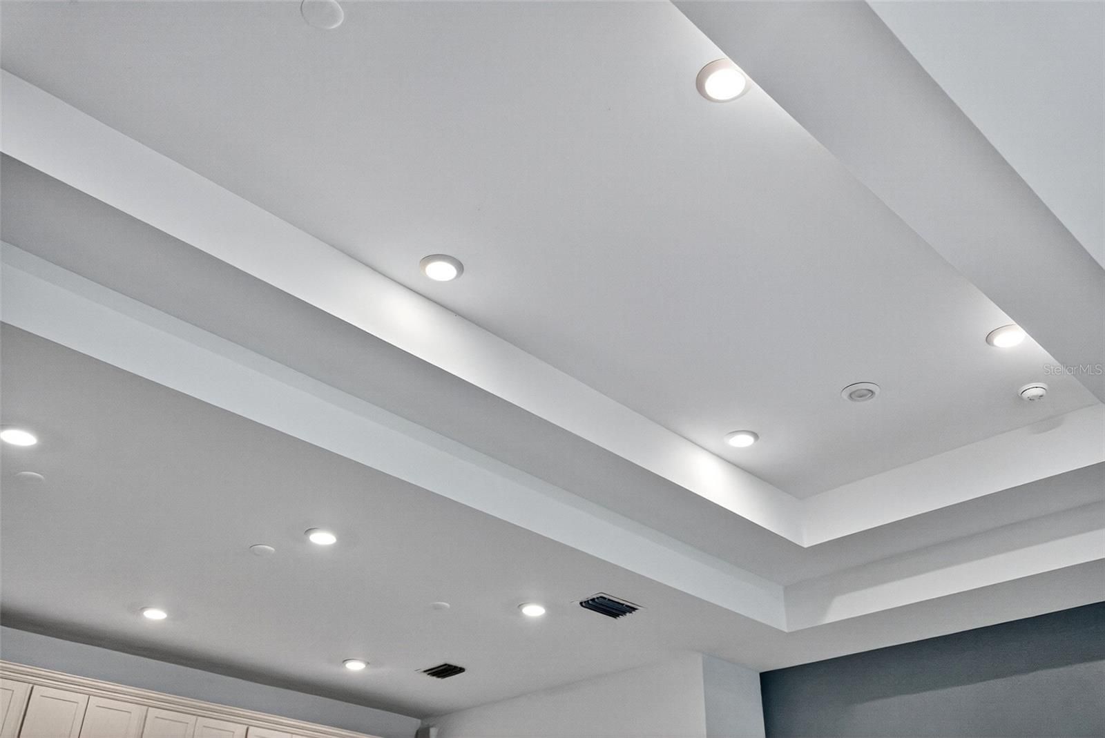 - Eat-in Kitchen, High Ceilings, Living/Dining Room, Open Floorplan, In-Wall Pest Control, Main Level Primary, Solid Surface Counters, Split Bedrooms, Thermostat, Tray Ceiling(s), Walk-In Closet(s), Window Treatments