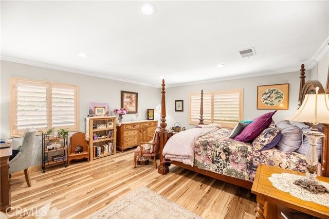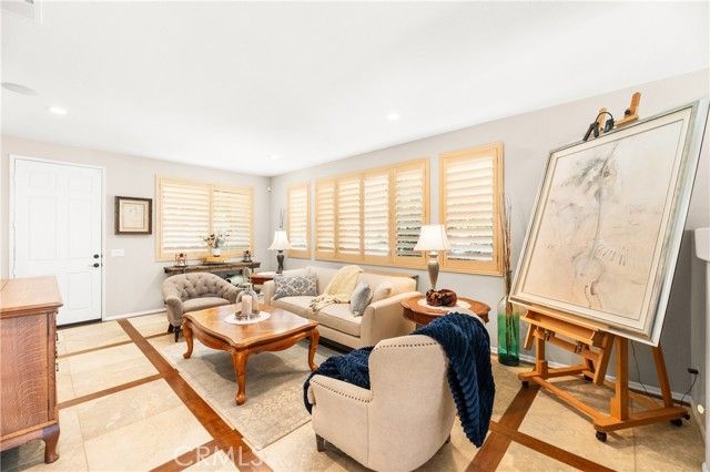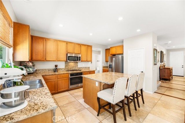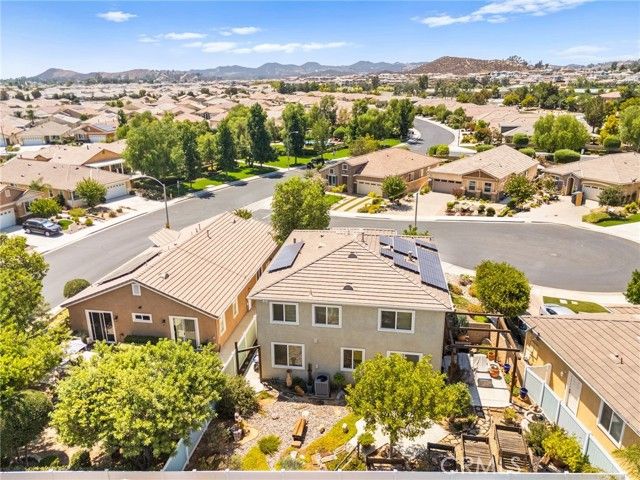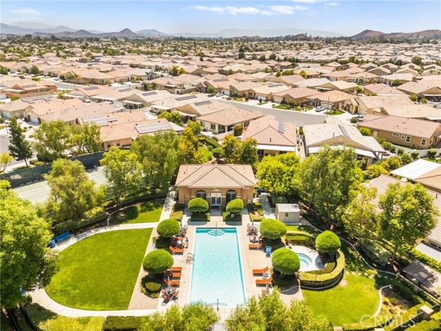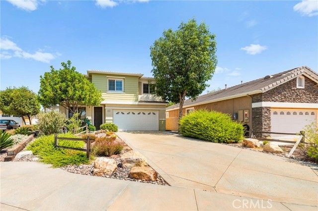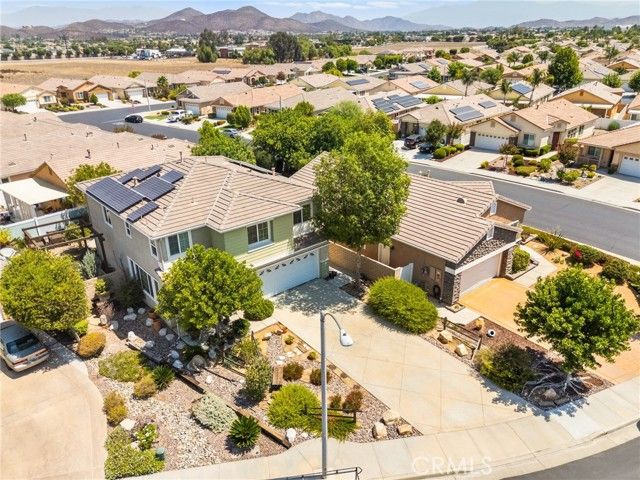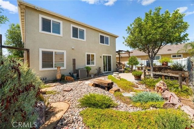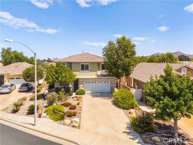 Welcome home to 26538 Roseate Circle, located in the gated 55+ Orchid/Primrose community at Pacific Mayfield in Menifee. This two story home offers 4 bedrooms, 3 bathrooms, and 2,398 sq. ft. of living space. This home has been beautifully maintained and offers a bright, open layout with neutral paint colors and an abundance of natural light streaming through numerous windows. The main floor features a spacious living room with a cozy fireplace, perfect for relaxing or entertaining. The kitchen is a chef’s dream with plenty of cabinetry, granite countertops, a large island, and stainless steel appliances. A water filtration system ensures fresh, clean water throughout. The tile flooring on the main level is accented with gorgeous wood inlay, and plantation shutters add elegance throughout the home. The main floor also includes a convenient bedroom and full bath, ideal for guests or multi-generational living. Upstairs, you’ll find the primary suite, an additional bedroom, a spacious loft, and a laundry room for easy access. The exterior offers low-maintenance landscaping with a drip irrigation system throughout the yard and is nestled on a quiet cul-de-sac. Solar panels and a Quiet Cool whole house fan help keep energy costs low, adding to the home’s efficiency. Enjoy resort-style living with community amenities such as a pool, spa, pickleball courts, community center, and scenic walking paths—all within the security of a gated community. Come take a look—you’re sure to fall in love!