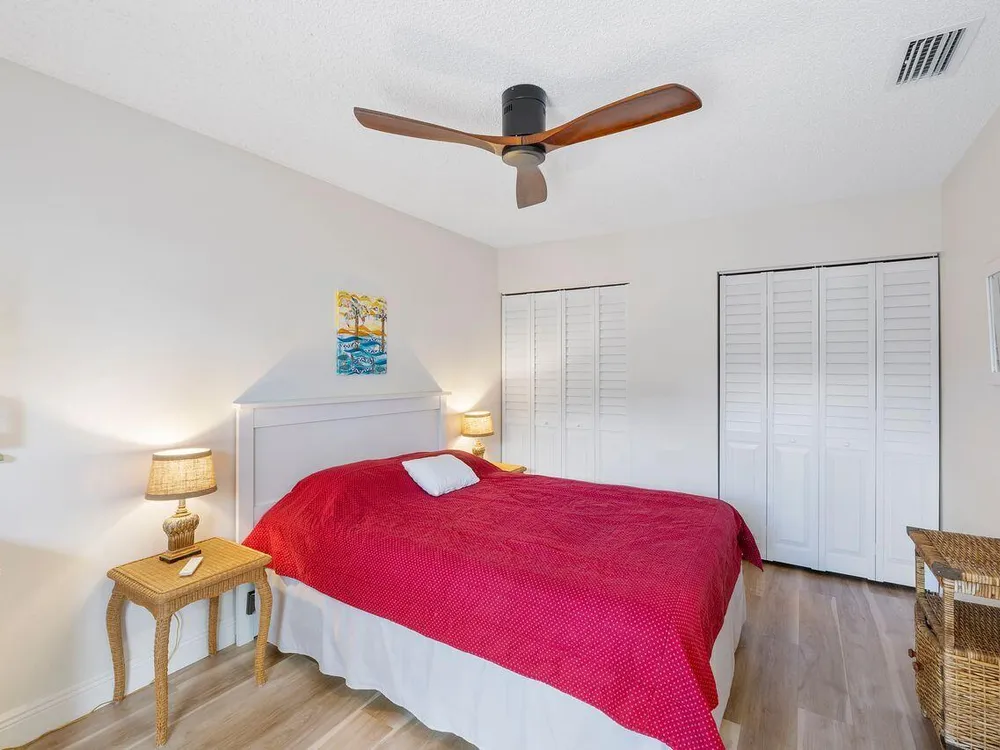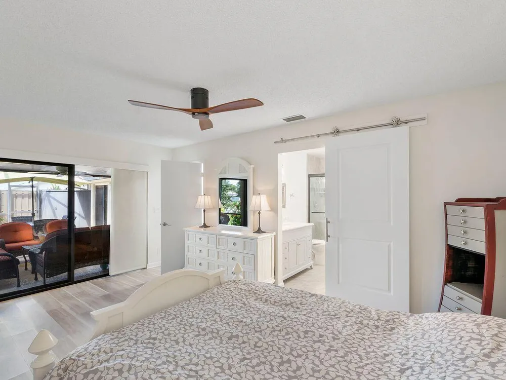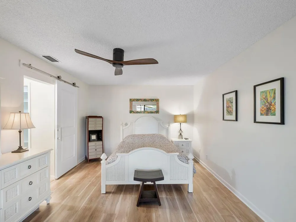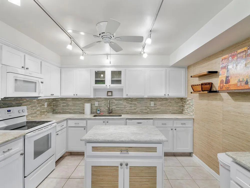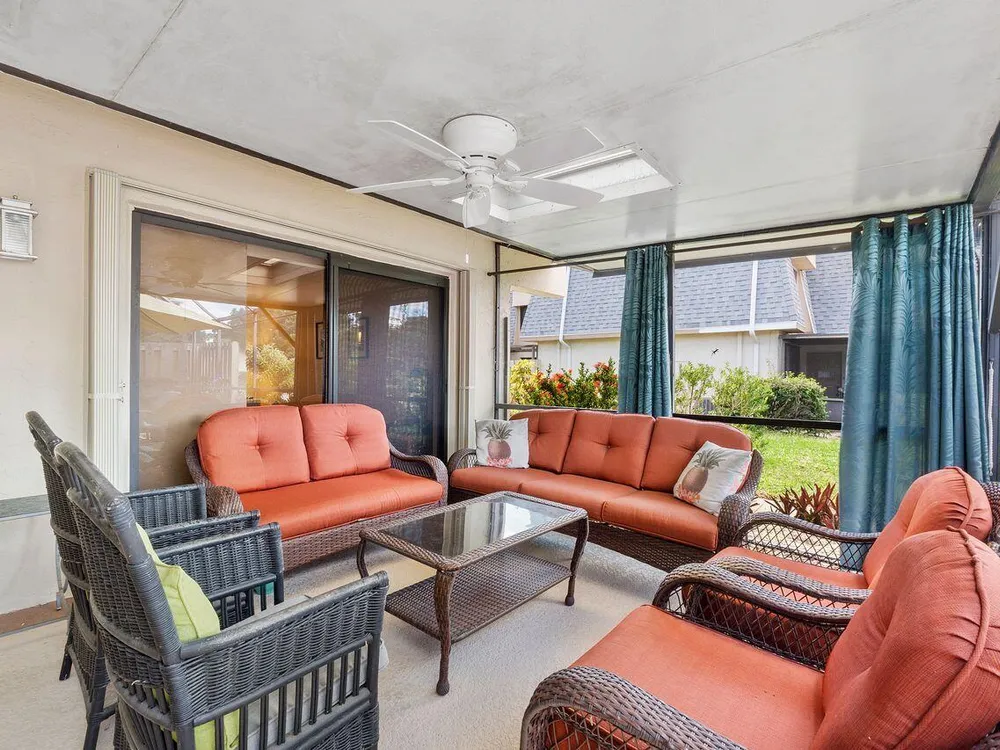 This beautifully renovated 2 BR 2 BA villa is located in gated Rainberry Bay, a 55+ vibrant community with walking trails around the central lake. Some great features include an updated kitchen w/ white wood Shaker cabinetry, granite countertops, white appliances, updated bathrooms, stack washer/dryer, newer electric panel & a beautiful screened patio w/ both a shaded & open sunny area. This light, bright villa is close to the area pool & the main clubhouse with all the amenities is just steps away. Rainberry Bay offers tons of activities for your Florida lifestyle including a gym, 5 pools, tennis, pickleball, bocce ball & a large free standing theater. Centrally located west of Congress Ave., it's a short drive to downtown Delray Atlantic Ave. shops, restaurants and beaches.