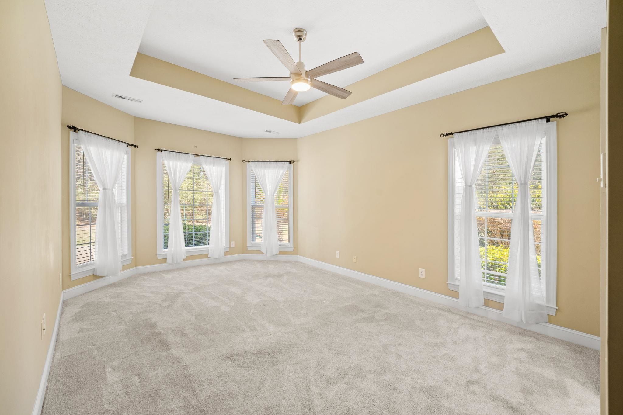 - Tray Ceiling(s), Ceiling Fan(s), Dual Sinks, Fireplace, Garden Tub/Roman Tub, Intercom, Jetted Tub, Main Level Primary, Split Bedrooms, Separate Shower, Vanity, Walk-In Closet(s), Breakfast Bar, Bedroom on Main Level, Breakfast Area, Entrance Foyer, Stainless Steel Appliances, Solid Surface Counters