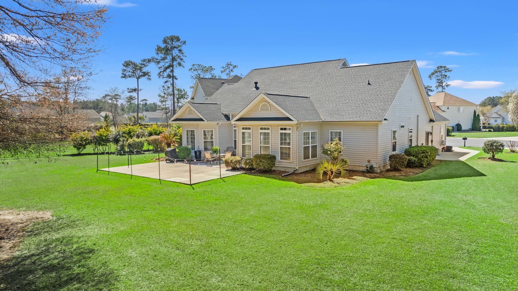 **Rare oversized cul-de-sac lot with one of the largest private backyards in The Bays at Prince Creek***This 3-bedroom, 2-bath ranch with a dedicated office/den offers an open, functional layout designed for everyday living and entertaining—ideal for Buyers seeking space, privacy, and a coastal lifestyle** ***A welcoming covered front porch leads into a bright living area featuring a gas fireplace and large windows that fill the home with natural light. The upgraded kitchen showcases stainless steel appliances, white granite countertops, and extended white cabinetry flowing into the breakfast nook, enhanced by updated tile flooring and additional counter space. The adjoining Carolina Room overlooks the expansive backyard and patio, creating a seamless indoor-outdoor connection*** ***The primary suite features a tray ceiling with bay windows, a spacious en-suite bath with dual sink vanity, jetted garden tub, separate glass enclosed shower and huge walk-in closet***The split-bedroom layout provides privacy, while the guest bath has been updated with a modern vanity, upgraded tiled shower, and touchless mirror. Additional highlights include recently updated Flooring & Carpeting, a separate laundry area with washer and dryer, and a **climate-controlled 19x27 sq ft attached garage** with mini-split system and panels to hang tools—ideal for a workshop, hobby space, or extra storage. The home also includes an upgraded electrical panel that can support electric vehicle charging. ***Located in The Bays at Prince Creek, a gated lifestyle community offering walking trails, two pools, clubhouse, pickleball, tennis, basketball court, soccer field, playground, Picnic tables in covered pavilion, and open green space. **Short strolling distance or golf-cart ride to the private amenity center enhances both convenience and everyday living. **Prince Creek is home to TPC Myrtle Beach golfing and is minutes to Dining, Shopping, medical facilities, and a short drive to Garden City & Surfside Beaches, Murrells Inlet Marshwalk , State Parks and Brookgreen Gardens —making it a top choice for buyers looking to enjoy beach living with more space and less traffic. ***MUST SEE this Oversized cul-de-sac lot with one of the largest private backyards in The Bays—private, spacious, and walkable to amenities in gated Prince Creek*** Square footage is approximate and not guaranteed. Buyer is responsible for verification.