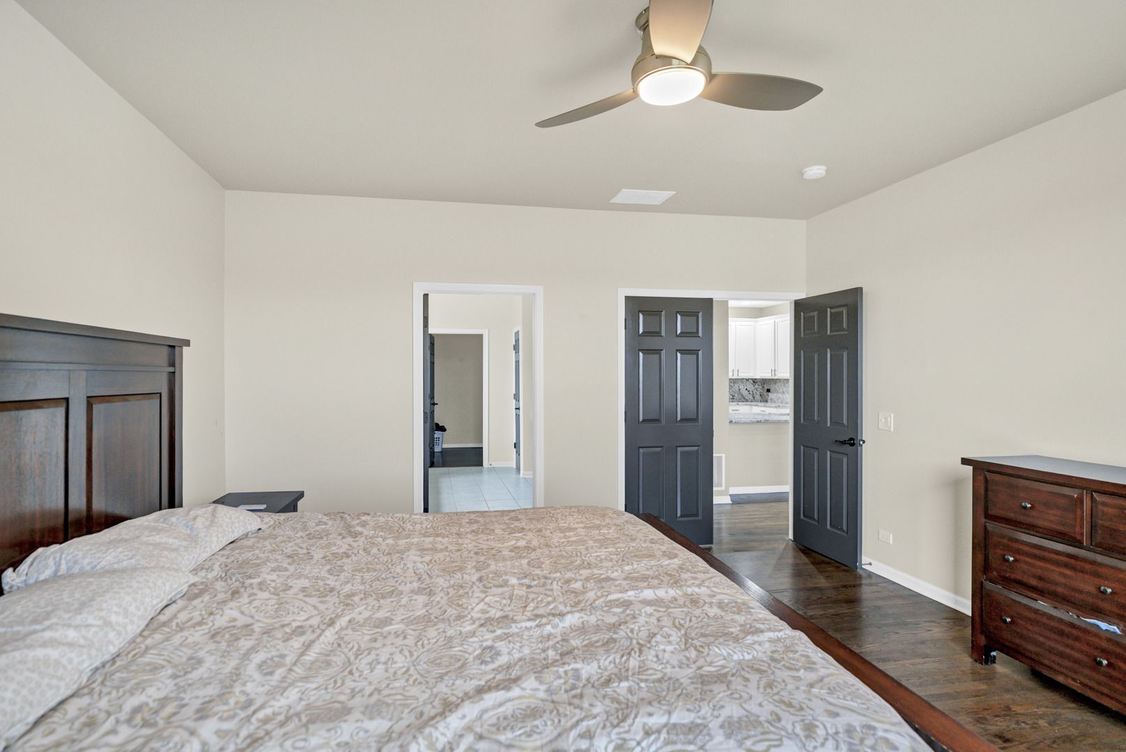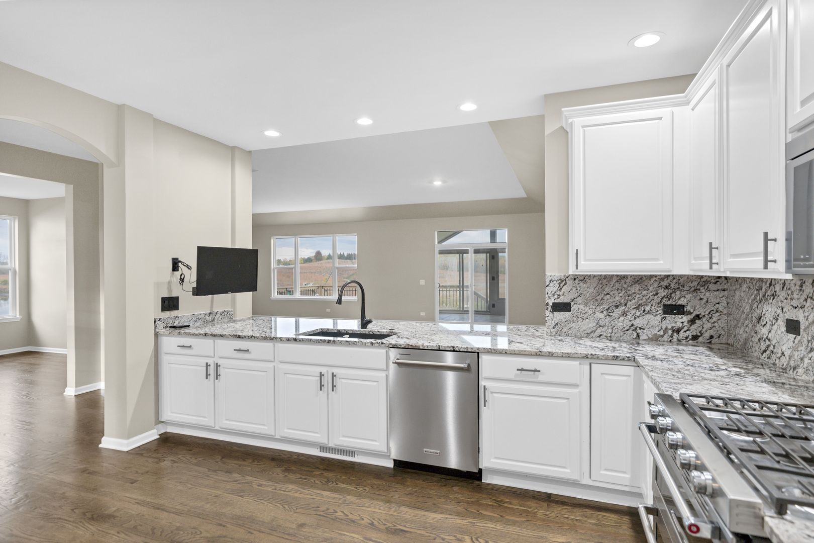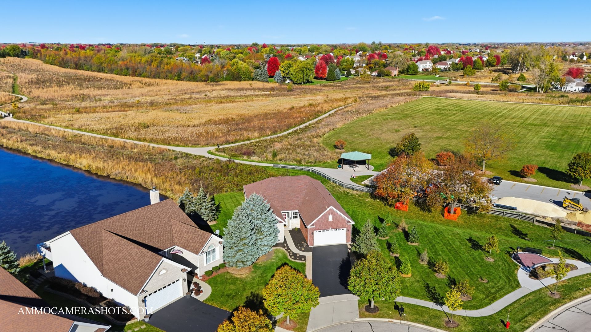 Enjoy nature and comfort in this beautifully updated 3-bedroom, 2-bath ranch home overlooking a peaceful retention pond and scenic 43-acre walking path. With over 2,140 sq ft of living space, this spacious layout features an expansive great room-perfect for entertaining and everyday living. The kitchen shines with new granite countertops, repainted cabinets, and KitchenAid stainless steel appliances (1 year old). A breakfast bar connects the kitchen to the great room, making it ideal for gatherings. The oak hardwood floors throughout the kitchen, great room, den, and foyer have been recently refinished, adding warmth and elegance. The primary suite offers a jetted soaking tub and walk-in closet, while the second bathroom was updated five years ago. Both bathrooms feature granite countertops, and nearly the entire interior (excluding the primary bedroom) has been freshly repainted. This home also boasts a walk-out basement-a blank canvas with plumbing already roughed in for a future bathroom. Major updates include new siding, freshly painted exterior trim, refinished landscaping, a painted garage with new shelving, and a new exterior deck and back stairway. The furnace and water heater were replaced five years ago, and a water filtration system has been installed. The washer and dryer are also just one year old. Enjoy the four-seasons room year-round or step outside to Ted Spella Community Park, located right in your backyard. Close to the public library and the shops and restaurants along Randall Road, this home in the Grand Reserve 55+ Community offers both tranquility and convenience. Move-in ready and beautifully maintained - schedule your showing today!