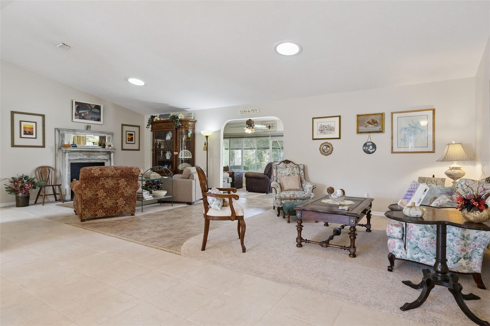 Corner lot | NO REAR NEIGHBORS | Backs to private conservation with a serene setting | 3 bedrooms | 2 full baths, split bedroom floorplan | OVER-SIZED garage featuring 520sf | FURNITURE OPTIONAL | TANKLESS WATER HEATER | ROOF 2014 Seller willing to give buyer credit for roof age/replacement | HVAC 2016 | DOUBLE PANE WINDOWS front of the home | Eat-in kitchen includes all appliances, natural gas range and tile flooring | The Owners Retreat features His & Her walk-in closets, jetted soaking tub and separate shower, tile flooring, dual sinks, solar tube for lots of natural lighting. On the opposite side of the home are two additional bedrooms that share the hall guest bath, offering tub and shower combination, tile flooring and granite vanity top. Two linen closets in the hallway. Living and dining room combination | Family room with direct access to an open-air patio, over-looking backyard. Highland Lakes is a gated 55+ community situated in Central Florida just south of Leesburg & offers residents the following amenities: Recreational Clubhouse with two swimming pools; indoor (heated) & outdoor, a softball field complete with concession stand, an indoor arena with a stage for comm. events, complete kitchen, billiard/ping pong rm., 4 tennis courts (2 courts are lighted), 1 indoor tennis court, 8 lighted shuffle board courts, bocce ball courts, 2 outdoor and 4 indoor pickleball courts, 7 horseshoe pits, covered picnic pavilion with picnic tables & grills to barbeque, library, meeting/card room, exercise room/fitness, craft room, golf driving range, RV/boat storage (included in HOA) & has 260 spaces on a secured lot (fenced & lockable), a Craftsmen building/woodworking shop (homeowners can join the club for only $12 annually and use any/all tools available), there's also a Nature Trail within the community & seven lakes scattered throughout Highland Lakes; 4 are used by residents for catch & release fishing! Don't wait............. call now to schedule your private tour!