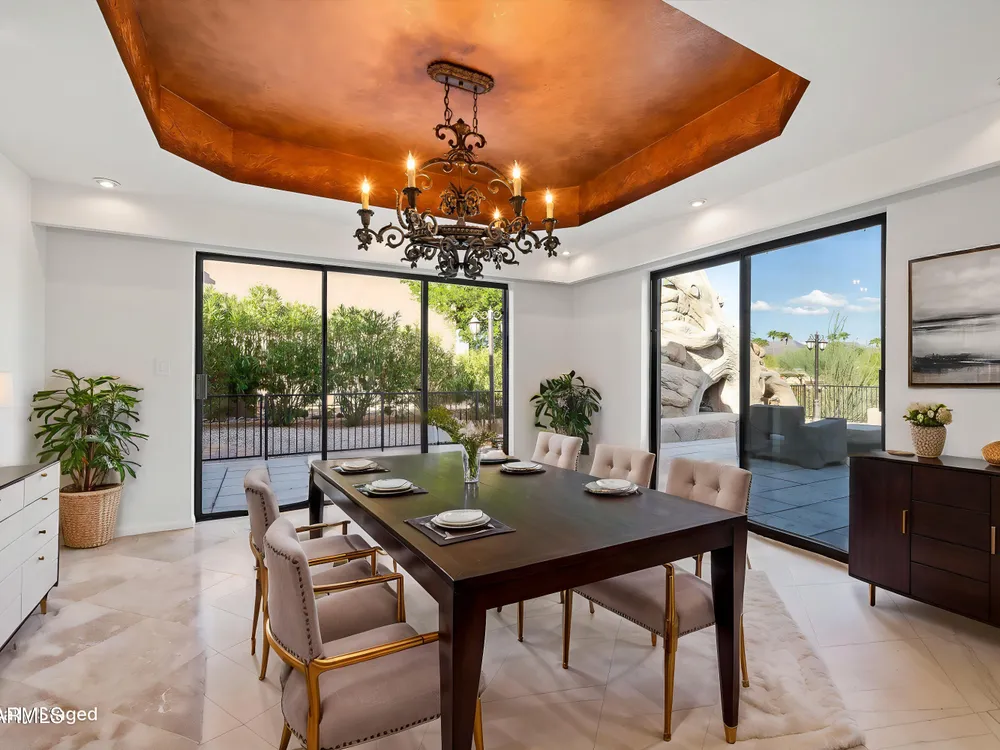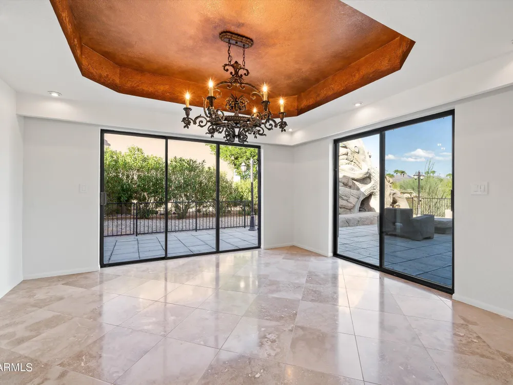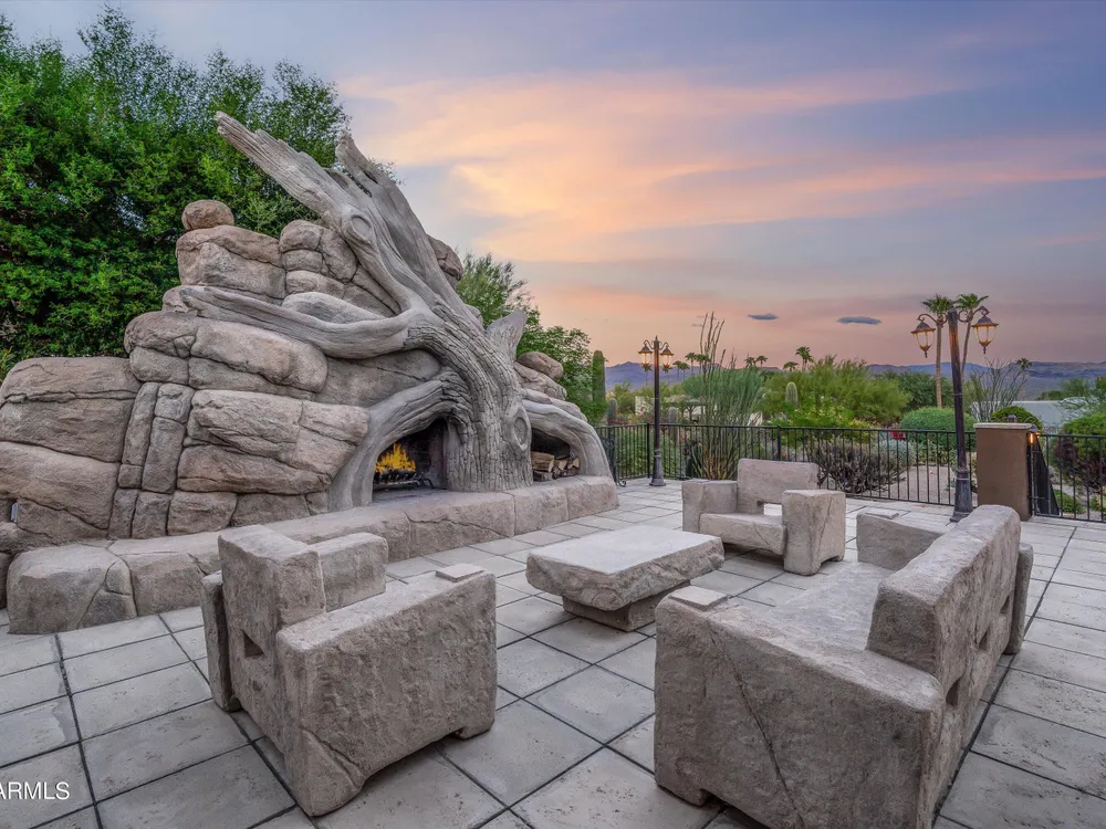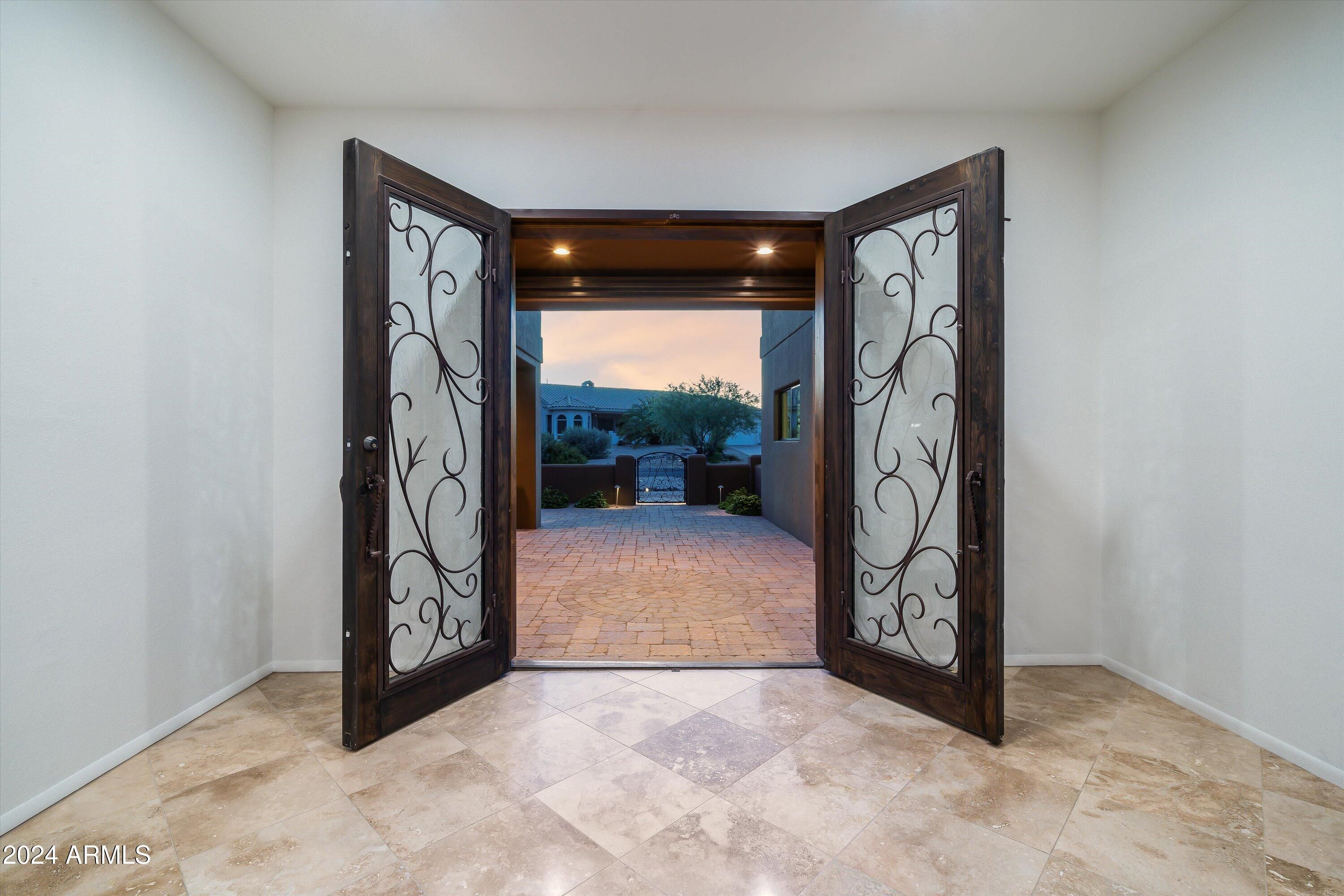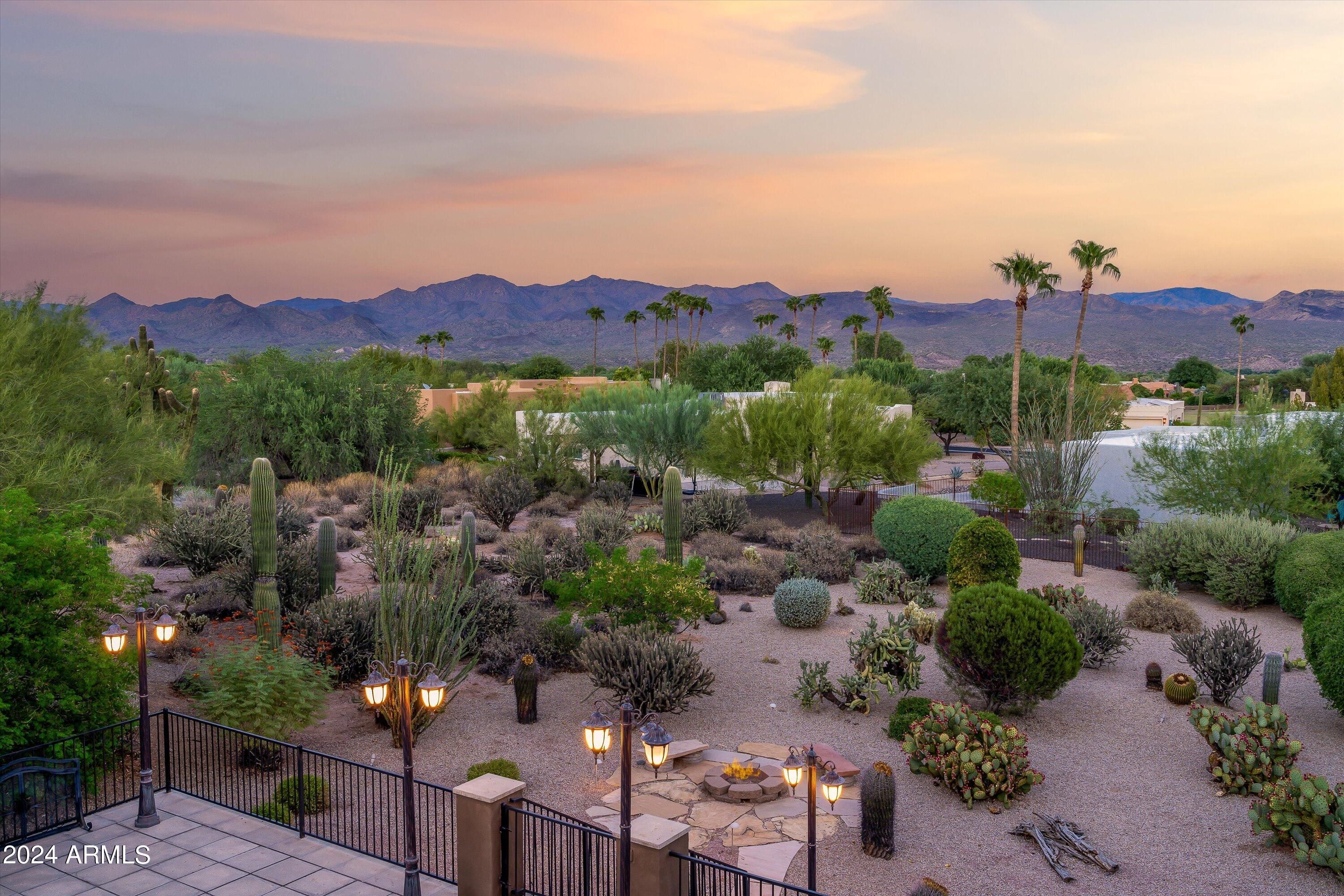 Saluto di Benvenuto and Welcome to Casa Incantevole, an enchanting showcase of luxury living in Arizona. Just 15 miles north of Scottsdale, in the premier community of Rio Verde Country Club, this custom residence was designed with style, class, and entertaining at its heart. From the moment you arrive, you'll be captivated by the home's artistry and detail. Gorgeous double iron doors, a striking vineyard art installation showcasing the moon rising over the Four Peaks, and a welcoming courtyard lead you into the foyer. The family room, the true heart of the home, features expansive picture windows framing mountain views, a dramatic floor-to-ceiling fireplace, fresh paint, and brand-new STAINMASTER® carpet for ultimate comfort. Throughout, you'll discover one-of-a-kind artwork by famed Hollywood artist and set designer for Lord of the Rings", Frank Marquette, making this home unlike any other. Step outside and experience Arizona living at its finest. The expansive patio offers breathtaking views of the Four Peaks, while a custom outdoor kitchen and built-in BBQ set the stage for entertainment. Gather around the permanent precast dining table for family-style meals, then stargaze by the juniper inspired fireplace or ascend to the observation deck for magical sunsets. Inside, the chef's kitchen boasts rich pecan cabinetry with pullout drawers, thick granite countertops, a buffet counter, wine fridge, and ambient lighting, perfect for both everyday living and entertaining. The primary suite is a true retreat with a private sitting area, spa-like bath featuring dual vanities and walk-in shower, and a giant custom walk-in closet that will be the envy of all. With 2,864 sq. ft., the home also offers two additional bedrooms. One suite includes a private bath, backlit quartz, custom-cut granite shower from a quarry in Italy, walk-in closet, and its own private entrance, patio and courtyard. The third bedroom, currently styled as an office with a built-in desk and hutch, can easily transform into a third suite with its own bath and private entrance. Beyond your private sanctuary, enjoy the world-class amenities of Rio Verde Country Club: golf, clubhouse dining, pool/spa, tennis, pickleball, and more. For outdoor enthusiasts, Bartlett Lake, McDowell Mountain Park, and the Four Peaks Wilderness are just minutes away. Casa Incantevole was built with love and artistry, offering a lifestyle as unique as its design. Don't miss this opportunity. Come tour one of Rio Verde's most unique and captivating homes, today!