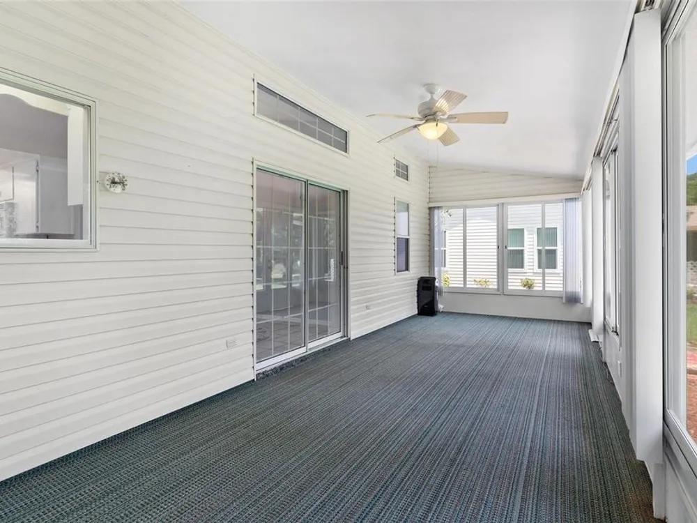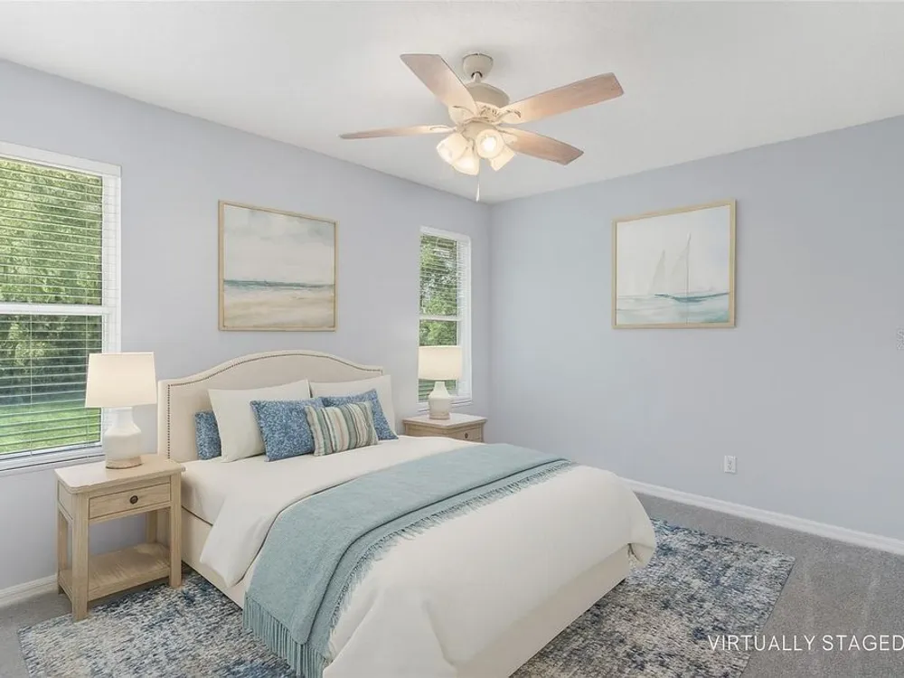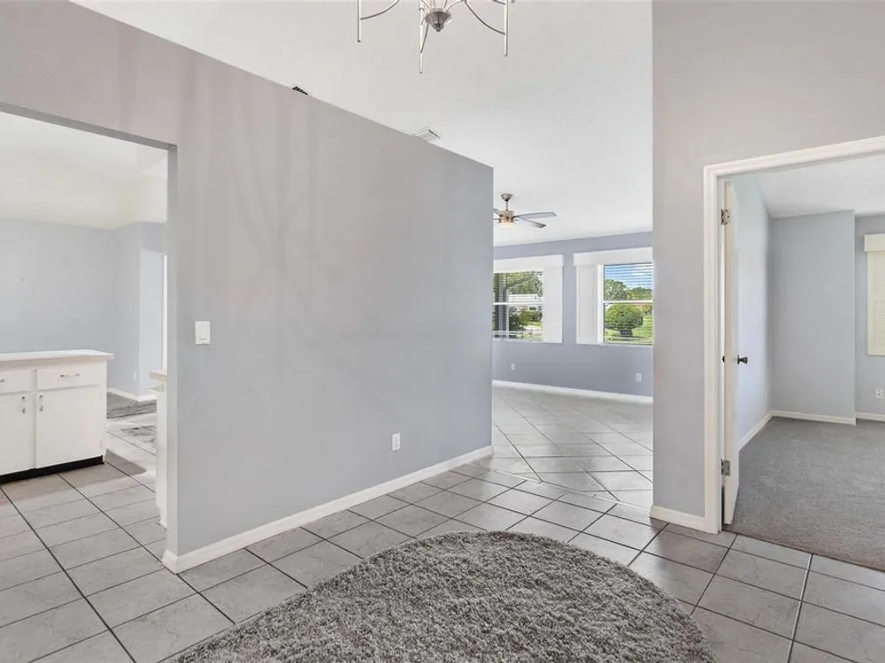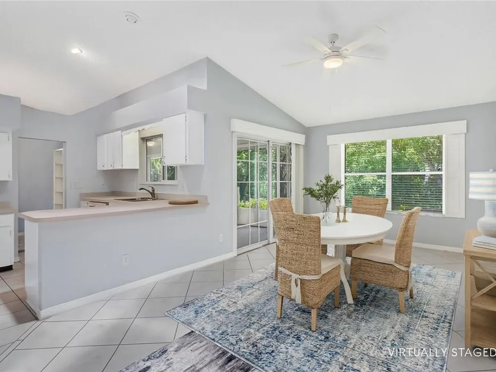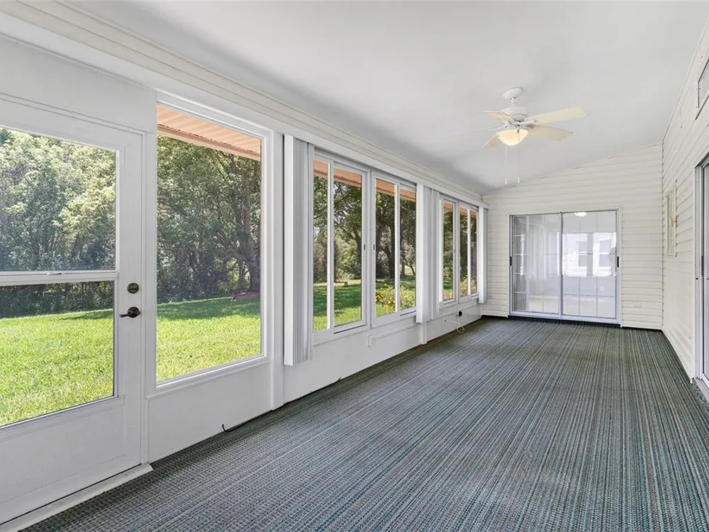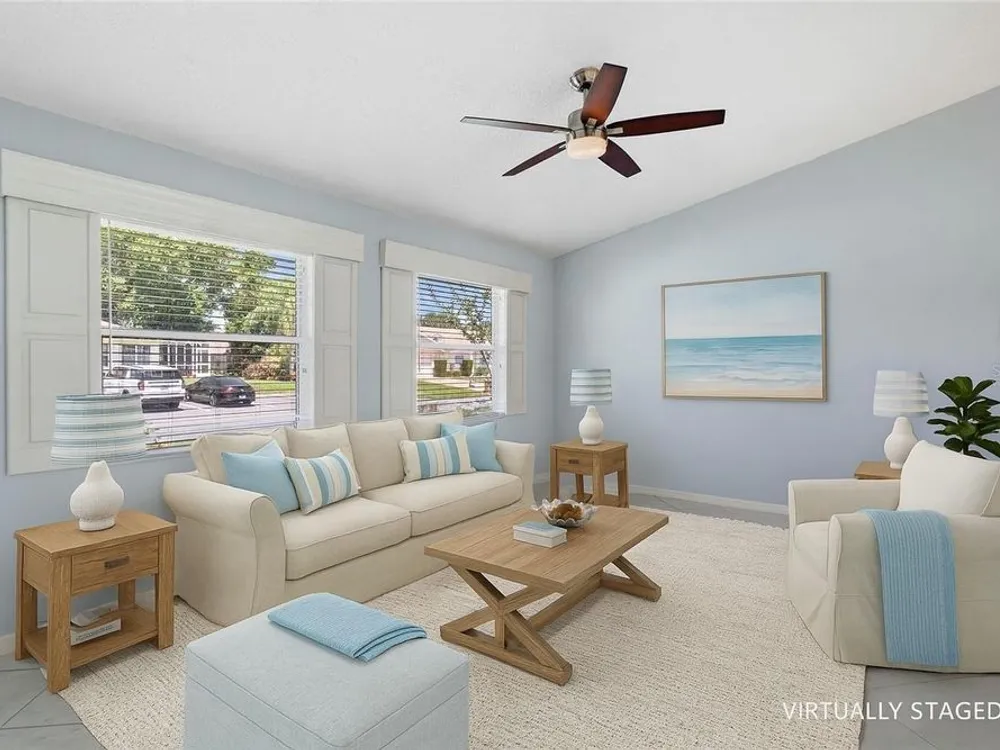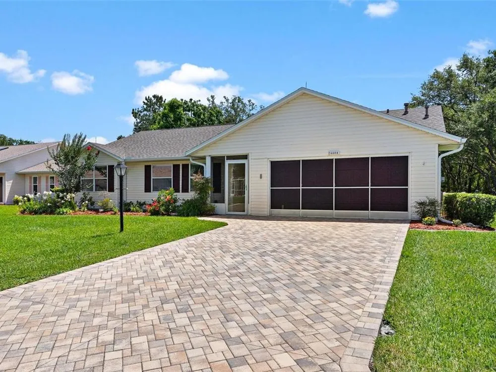 One or more photo(s) has been virtually staged. Move-In Ready Home in Highland Lakes – A Desirable 55+ Community in Leesburg! Welcome to Highland Lakes, a well-established 55+ community in Leesburg offering a low HOA fee and resort-style amenities. This beautifully maintained home features a thoughtful floor plan, perfect for comfortable living and entertaining. Enjoy vaulted ceilings, ceramic tile in the main living areas, and brand-new carpet in the bedrooms. The kitchen opens to the family room and includes ample cabinet space, a closet pantry, and a gas range. Both the family room and formal living and dining rooms have sliding glass doors that lead to a spacious 30x9 Florida room overlooking a private wooded conservation area—no rear neighbors! The master suite offers a walk-in closet, a tiled walk-in shower, and a vanity with a makeup area. The tiled foyer has a service door to the garage, while the second bathroom includes a tub/shower combo. The indoor utility room features a laundry sink, closet, and access to the garage. Additional highlights include a double-car garage with electric opener, sliding screen door, and side yard access, plus a brick paver driveway, beautifully landscaped yard that is nicely spaced from your neighbor with sprinkler system, and guest parking directly across the street. Recent upgrades include a new gas water heater and roof (2022), as well as an updated electrical panel. The community offers a clubhouse with an indoor pool, tennis and pickleball courts, bocce ball, a softball field, RV/boat storage, and a full calendar of social activities. Conveniently located near the Turnpike for easy access to Orlando and beyond. Don't miss this opportunity—schedule your private showing today!