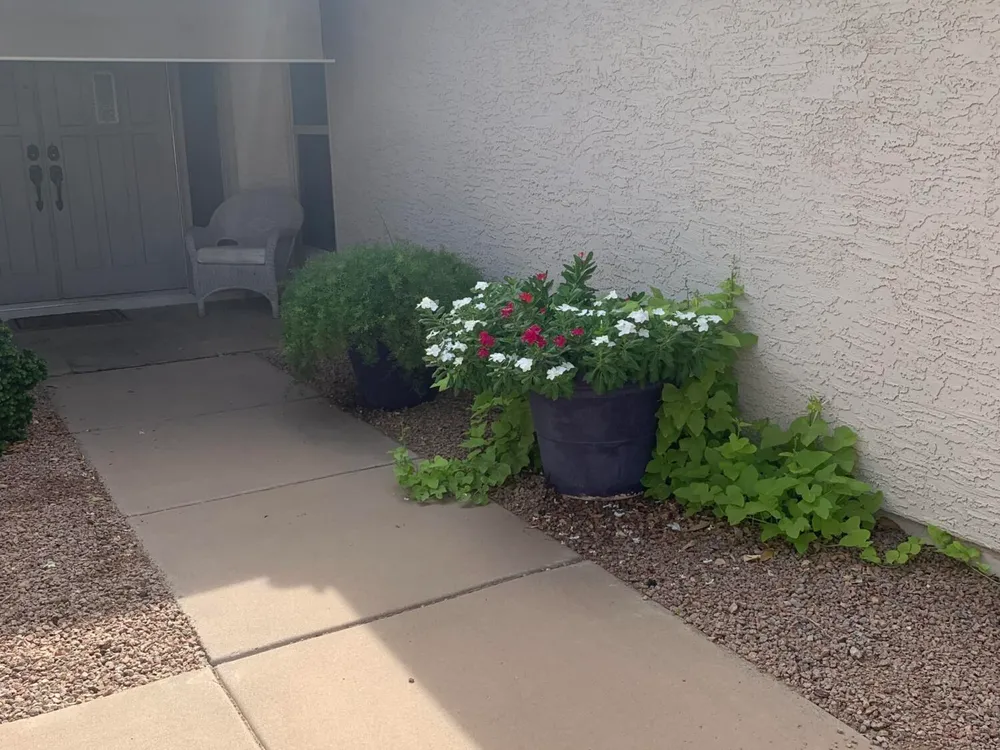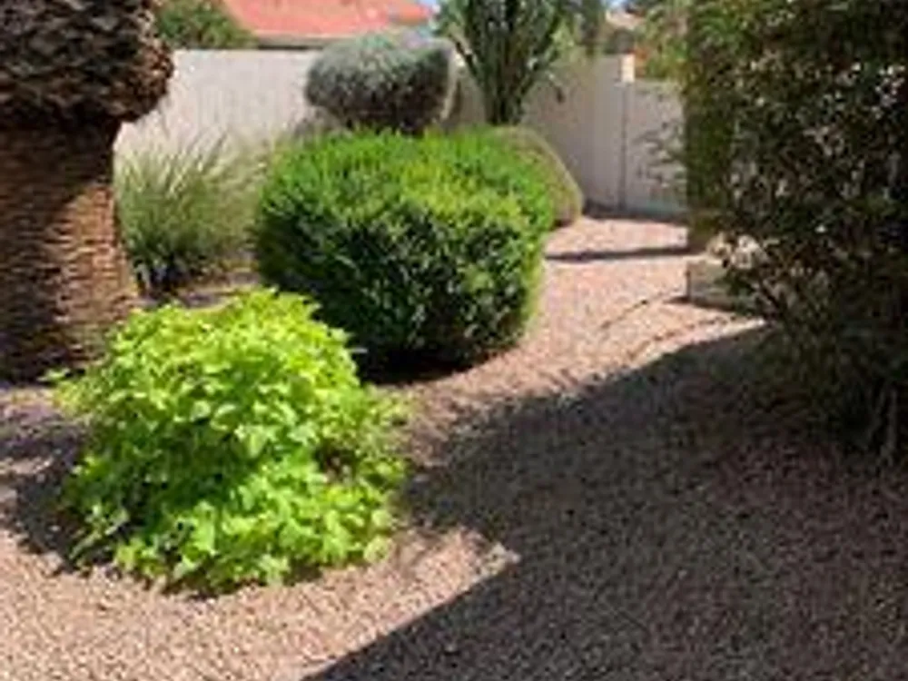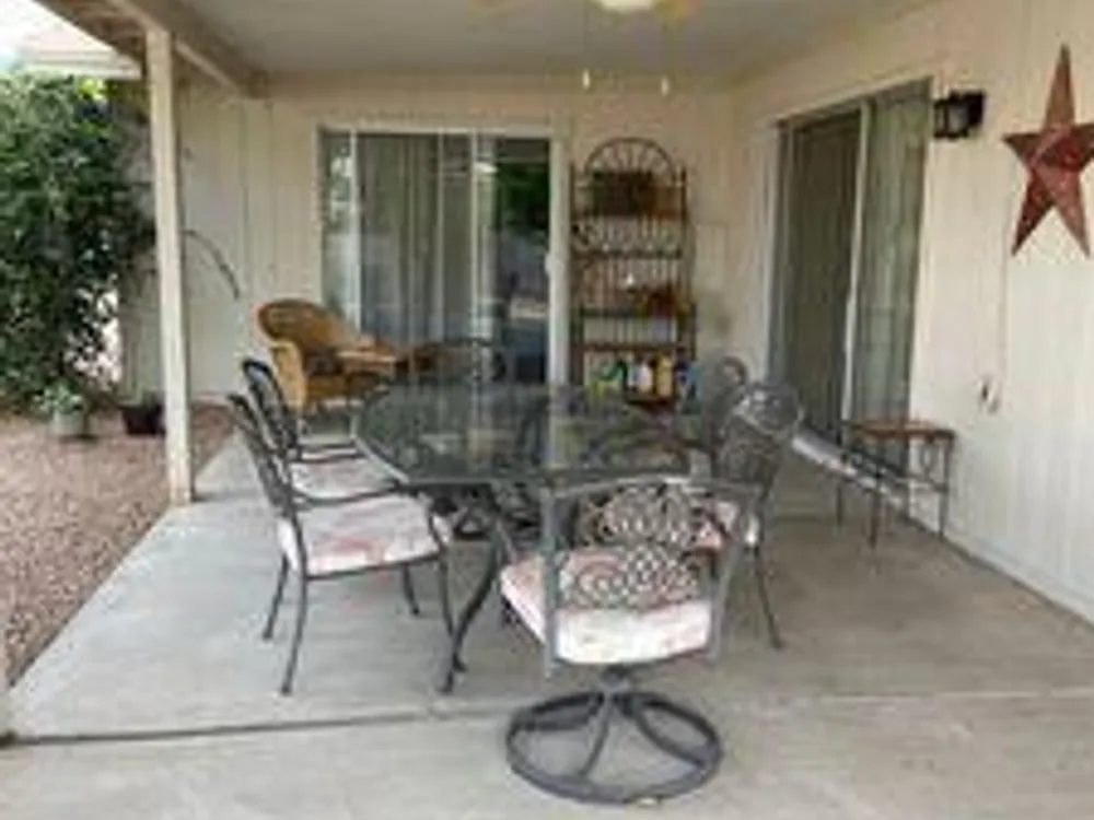 This beautifully maintained house is located in the Cottonwood subdivision of Sun Lakes. The model is an extended Shawnee plan, with 2 bedrooms and 2 bathrooms. The master bath has a shower, and the guest room bath has a tub and a shower. The home has been extremely well-cared for and maintained over the years. The current owners bought the home in 2003, and since then, they have updated the living room, kitchen and bathrooms. The air conditioner was replaced in 2022, and the roof was replaced in 2020. New flooring was also installed throughout the home, as well as the hot water heater. All the windows have also been replaced with double paned windows (and they are guaranteed for life), and the front awning was also replaced in 2021. The garage door and electric garage door opener were both replaced in 2023. Other highlights include: A large, extended master bedroom A walk-in closet in the master bedroom A beautifully landscaped back yard Citrus trees: orange, lemon and lime A skylight tube installed in the master bathroom A built-in entertainment area There are five small lakes in the center of the neighborhood, with a greenbelt and asphalt pathways for walking, jogging, biking, walking dogs, etc... The backyard has a large patio and lots of beautiful greenery, including desert plantings, rose bushes, citrus trees and even a saguaro cactus. There is a water-irrigation system for the plants and trees with an automated programmable timer. The car is a two-car garage, and there is also a separate storage room in the back of the garage, with lots of hooks and shelving, and access to the back patio. Sun Lakes is an active adult community, with plety of amenities, including: Golf courses Tennis courts Pickleball court Bocci ball court Several swimming pools All of Sun Lakes include four clubhouses with restaurants, dining, and bars (Oakwood, Cottonwood, Palo Verde, and Phase I) Classes and activity cubs Live entertainment in the clubhouses