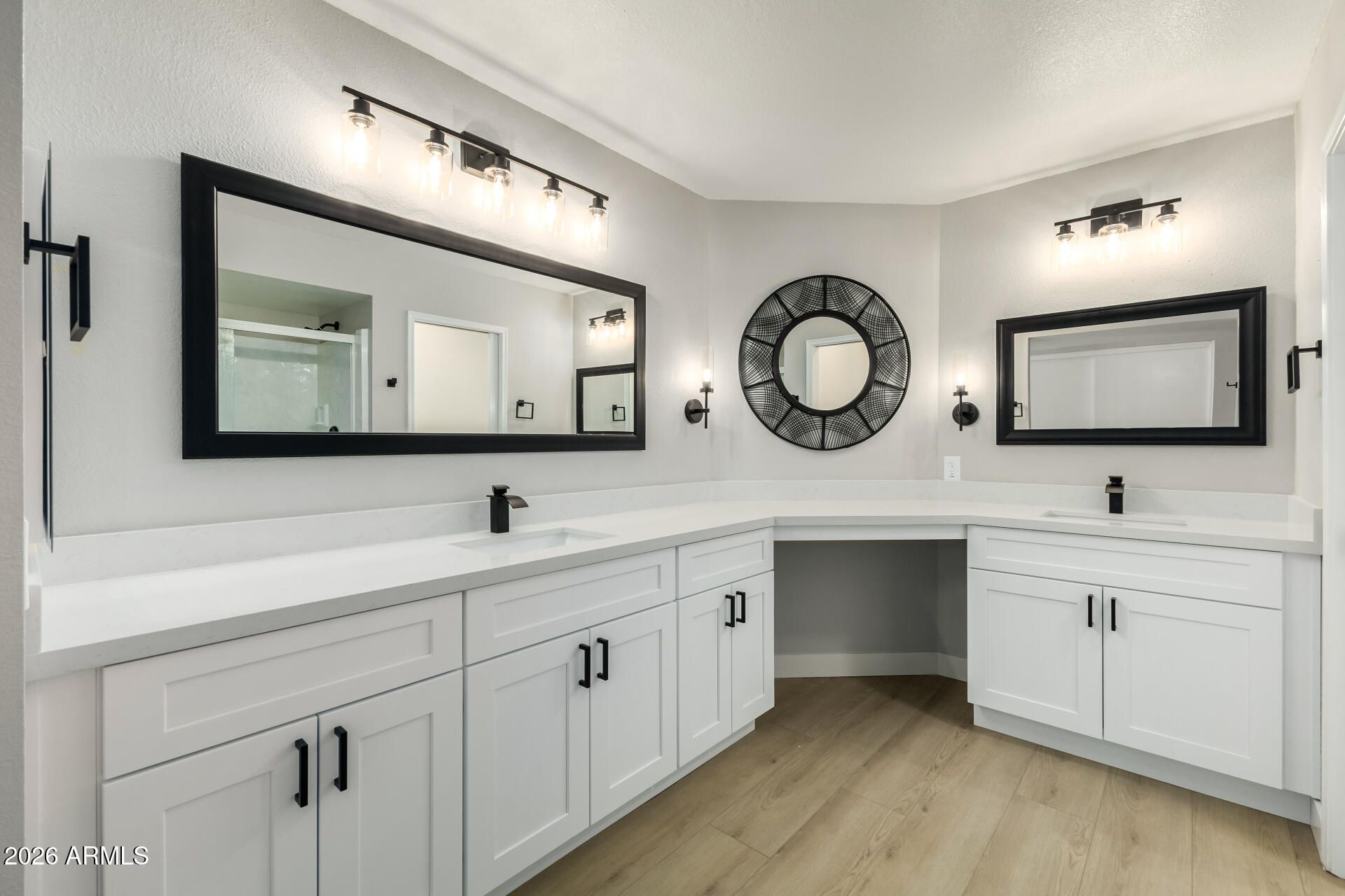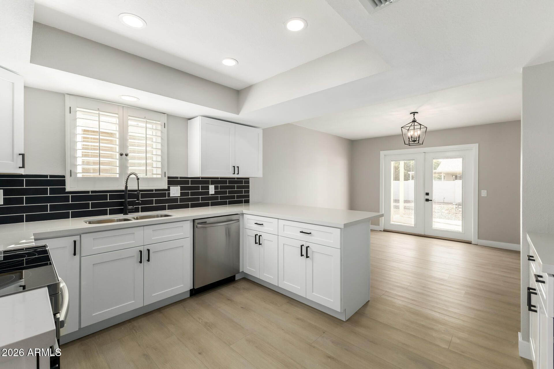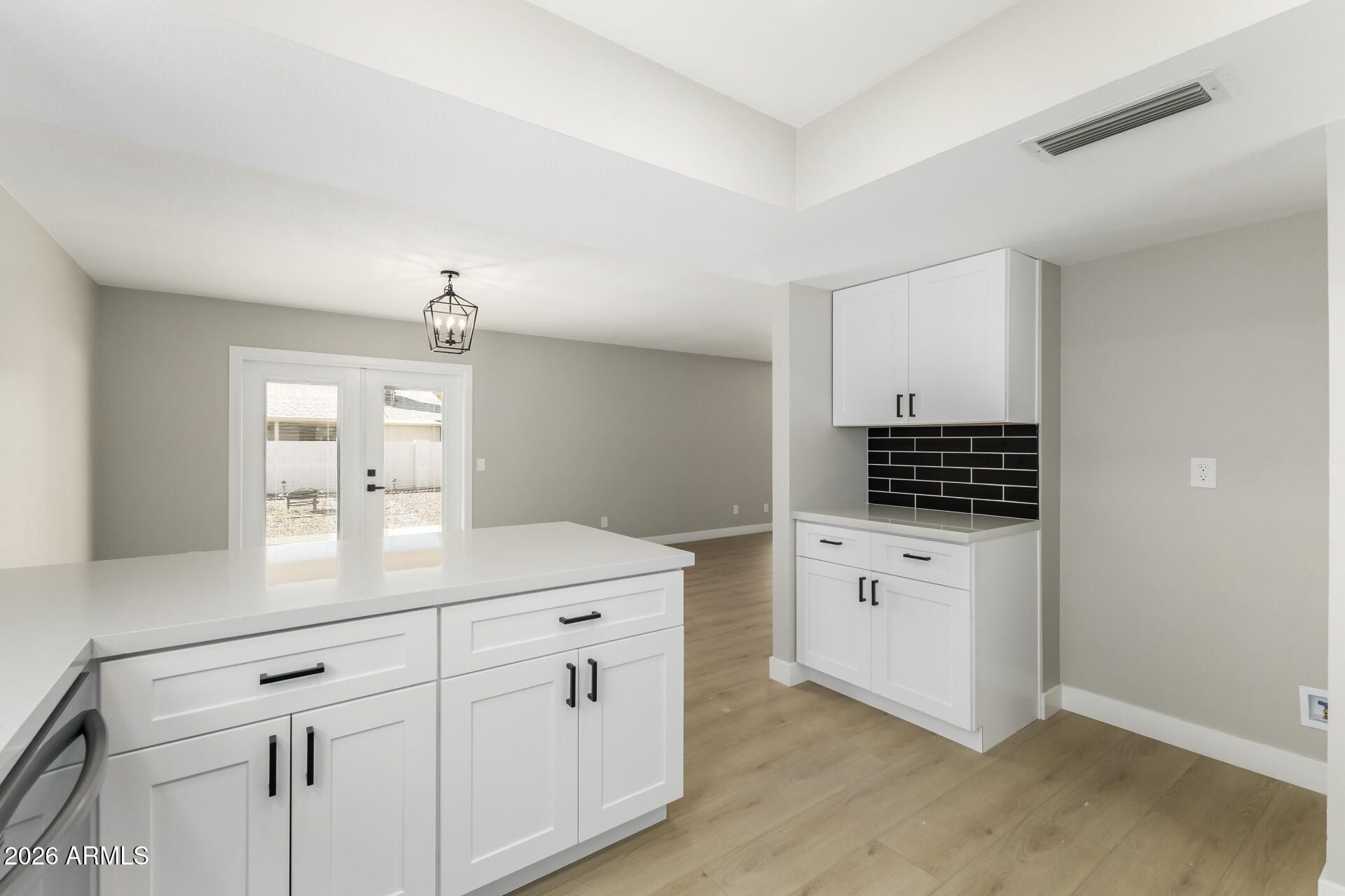 Come and experience this recently remodeled single-level home with a 2-car garage in the 55+community of Sun Lakes Cottonwood! Wood-look floors flow through a spacious living room perfect for relaxing or entertaining. Enjoy meals in the formal dining area or casual bites at the breakfast bar in the kitchen, featuring stainless appliances, pristine cabinetry, tile backsplash, and quartz counters. The primary bedroom offers direct backyard access and a chic bath with dual sinks and a makeup vanity. Garage includes attached cabinets for extra storage. Step outside to a backyard oasis with a covered patio, room for barbecues, play, or simply enjoying the starry night skies. Impeccable updates, thoughtful design, and a perfect layout make this home truly move-in ready. Don't miss it!