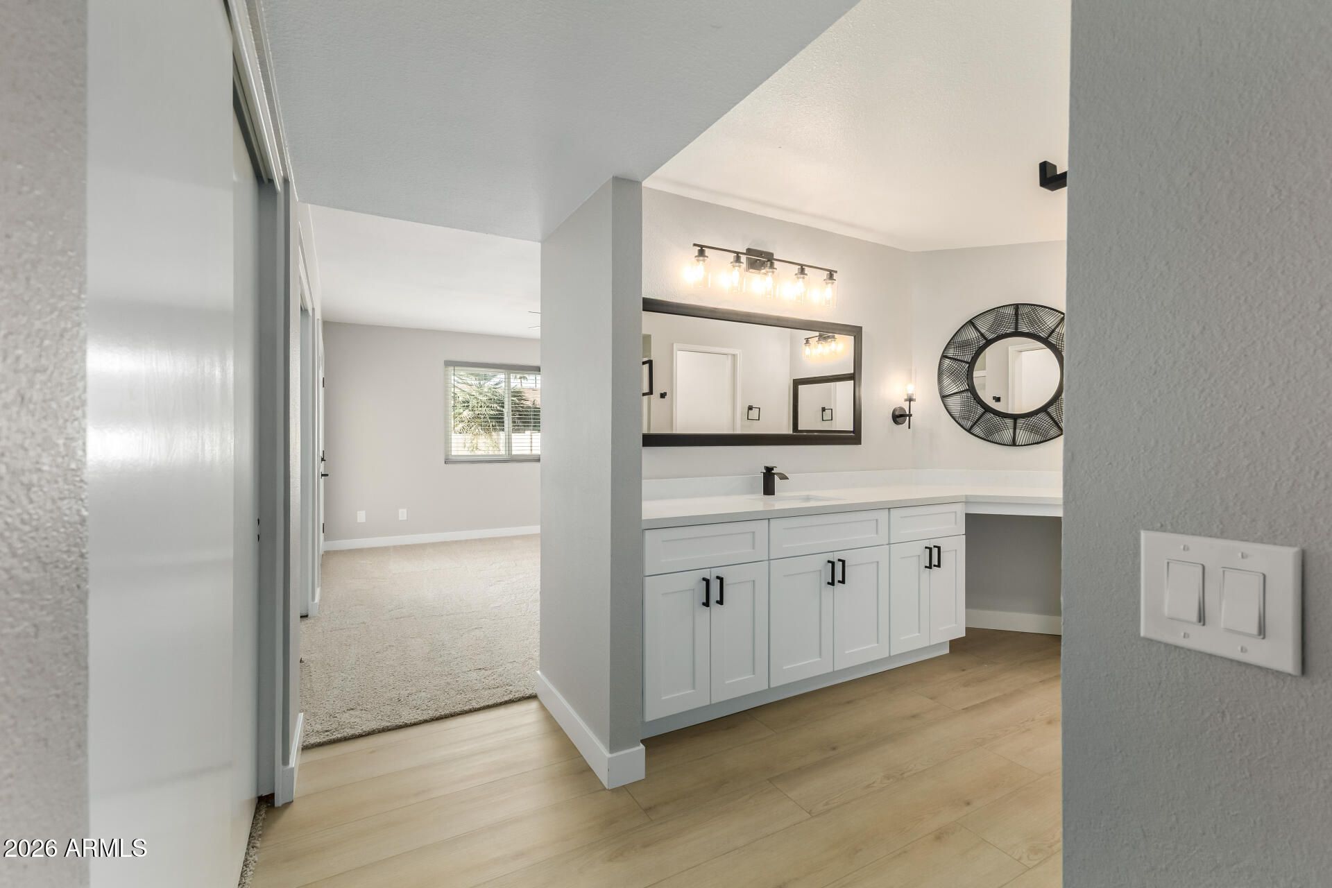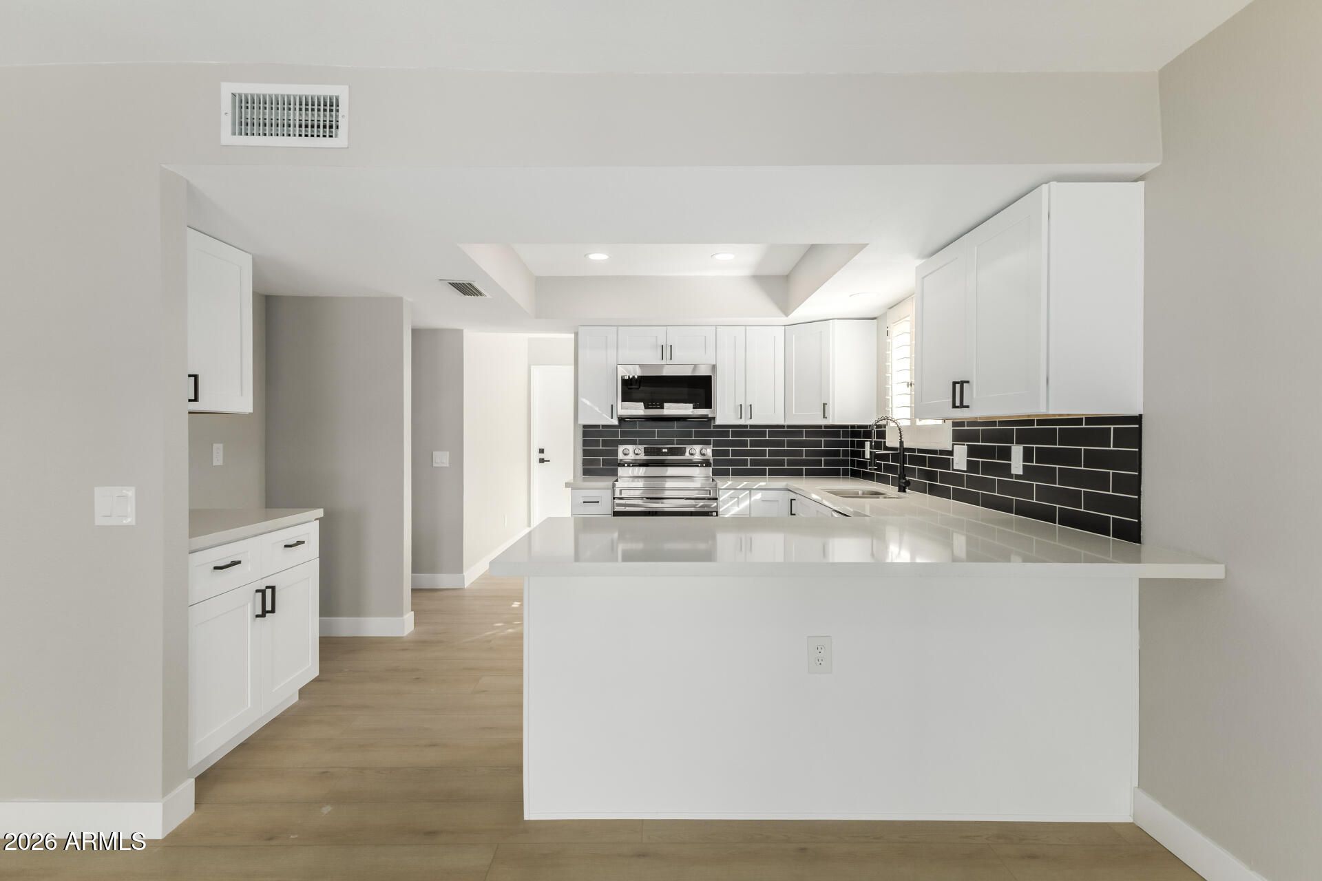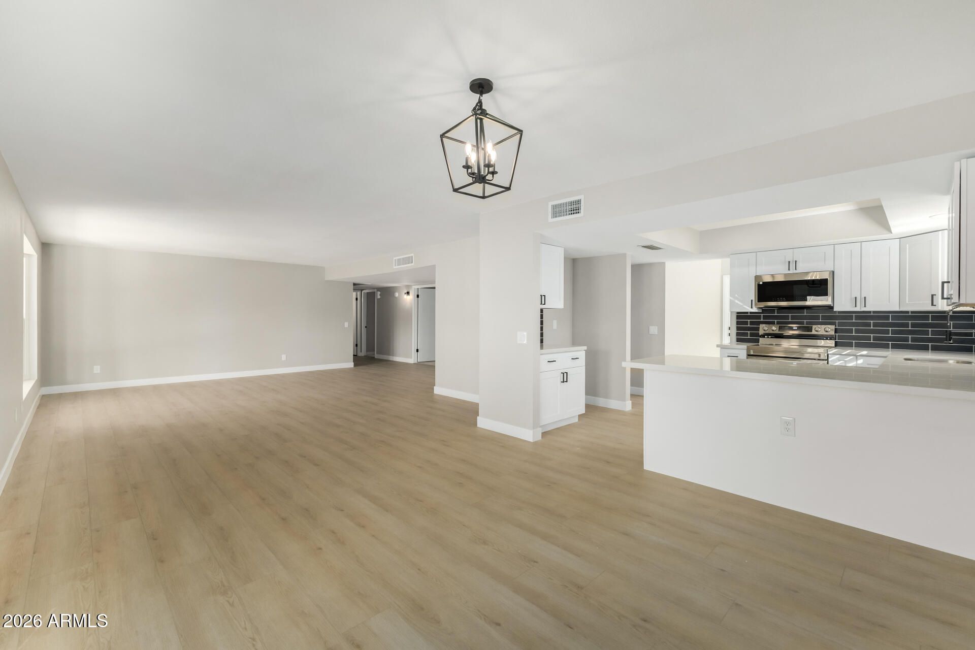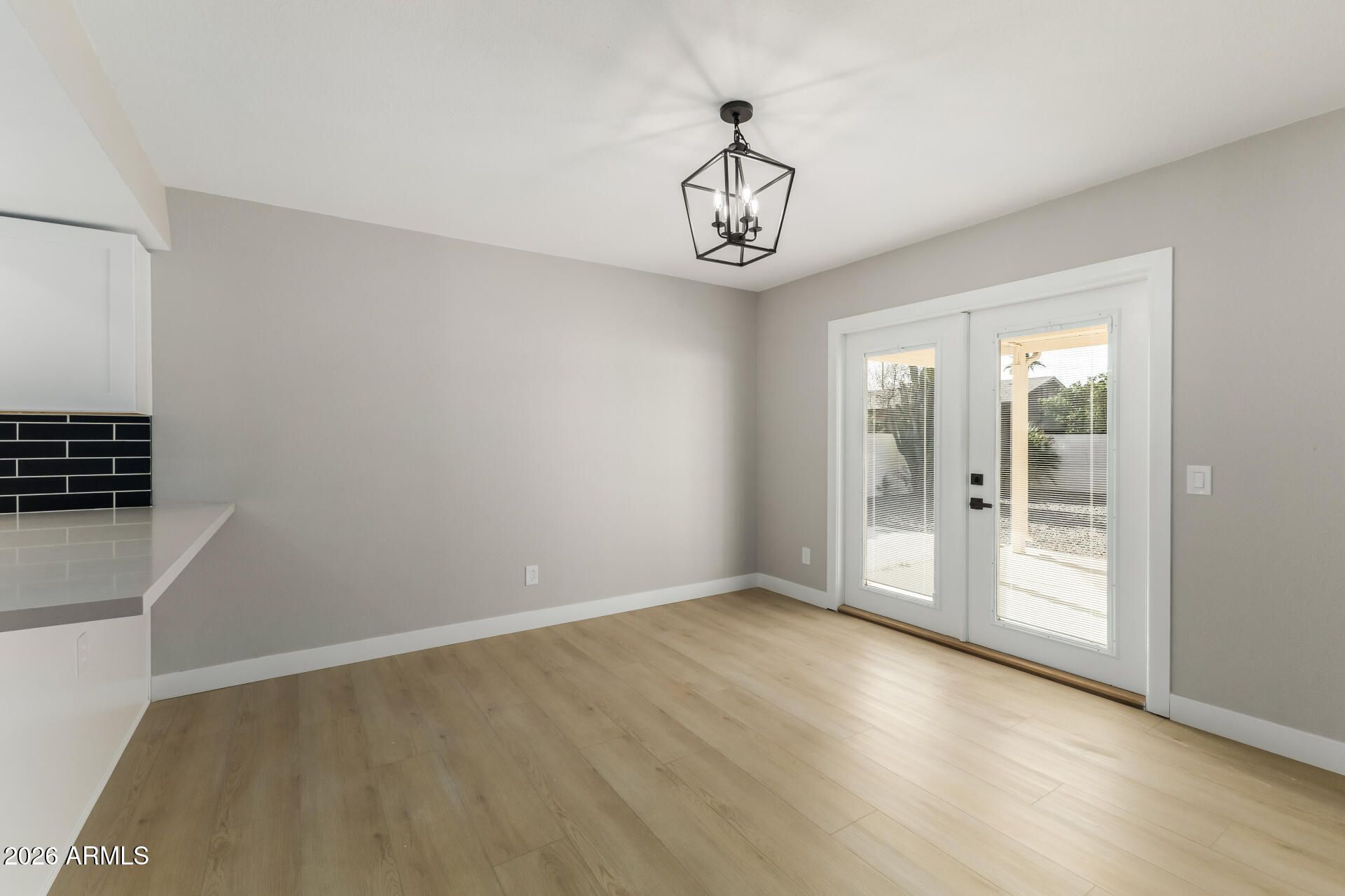 Come and experience this recently remodeled single-level home with a 2-car garage in the 55+community of Sun Lakes Cottonwood! Wood-look floors flow through a spacious living room perfect for relaxing or entertaining. Enjoy meals in the formal dining area or casual bites at the breakfast bar in the kitchen, featuring stainless appliances, pristine cabinetry, tile backsplash, and quartz counters. The primary bedroom offers direct backyard access and a chic bath with dual sinks and a makeup vanity. Garage includes attached cabinets for extra storage. Step outside to a backyard oasis with a covered patio, room for barbecues, play, or simply enjoying the starry night skies. Impeccable updates, thoughtful design, and a perfect layout make this home truly move-in ready. Don't miss it!