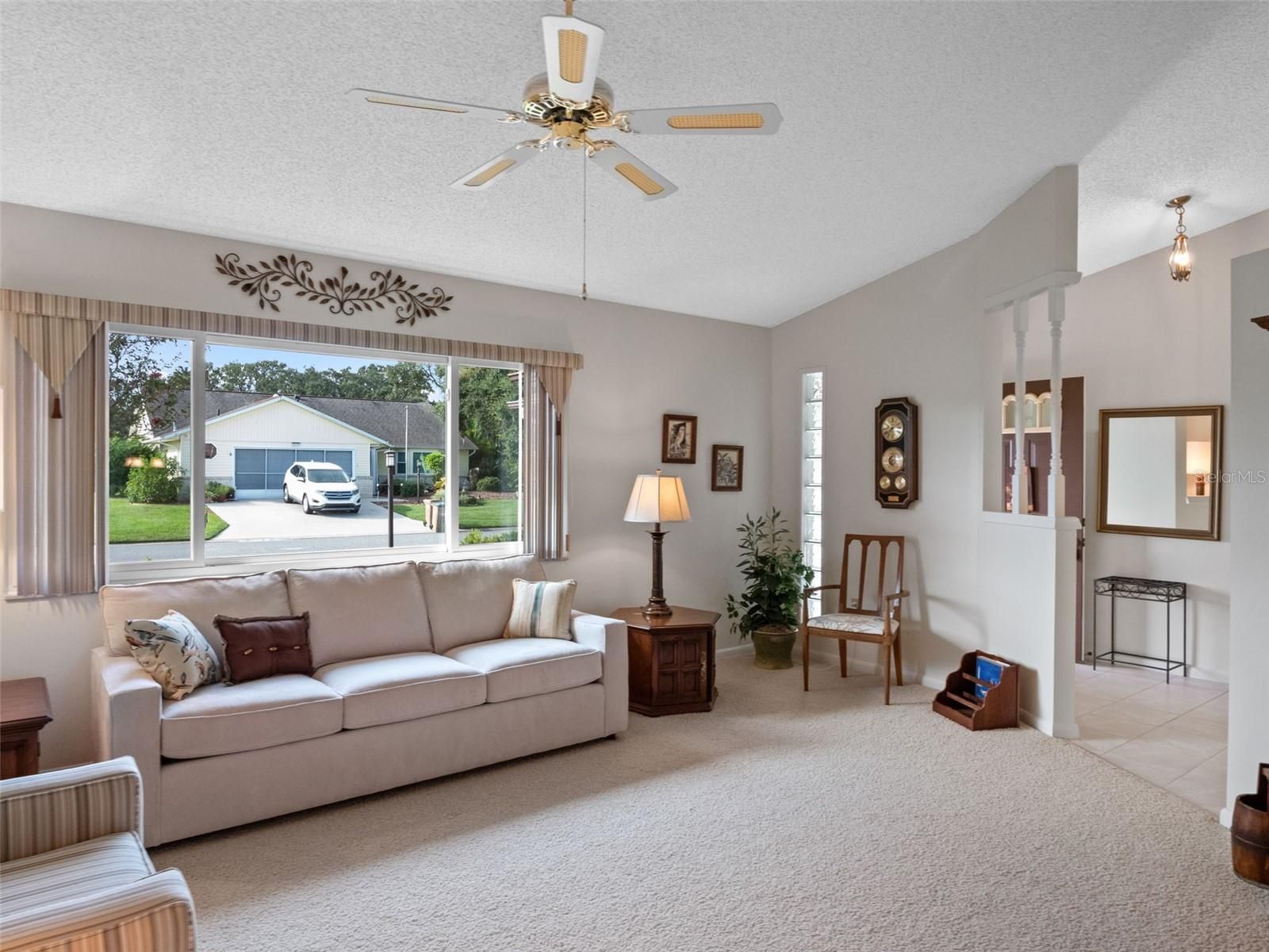 WATERFRONT on Lake Mary-Enjoy catch and release fishing in one of four lakes within the community! This immaculately maintained home is ready for you to move right in. Foyer with glass block sidelight, coat closet and new entry door, lead to an open floor plan featuring living room and dining room combination, RENOVATED kitchen with re-faced cabinets, all appliances convey, including natural gas range. The family room over-looking Lake Mary boasts soothing water views and has access to the Sunroom beyond, a great space for morning coffee or a great book. There's even an open-air patio to enjoy the outdoors. The Primary Retreat, located at the rear of the home, also has water views, a walk-in closet and features an en suite bath with jetted soaking tub, separate shower stall (UPDATED 2018) and Plantation Shutters. The guest bedroom is larger than most and would make for an ideal in-law space/craft room. The hall bath has tub and shower combination, linen closet, skylight for lots of natural light. DOUBLE PANE WINDOWS! FURNITURE OPTIONAL! Hurricane/Storm SHUTTERS convey. Epoxy coated drive, walk and garage floor. Electric panel UPDATED to SIEMENS (Sept. 2025). HVAC 2010, serviced annually. Water heater 2016. ROOF 2019. Solar Tube in Kitchen added in 2020. Highland Lakes is a gated 55+ community situated in Central Florida just south of Leesburg & offers residents the following amenities: Recreational Clubhouse with two swimming pools; indoor (heated) & outdoor, a softball field complete with concession stand, an indoor arena with a stage for comm. events, complete kitchen, billiard/ping pong rm., 4 tennis courts (2 courts are lighted), 1 indoor tennis court, 8 lighted shuffle board courts, bocce ball courts, 2 outdoor and 4 indoor pickleball courts, 7 horseshoe pits, covered picnic pavilion with picnic tables & grills to barbeque, library, meeting/card room, exercise room/fitness, craft room, golf driving range, RV/boat storage (included in HOA) & has 260 spaces on a secured lot (fenced & lockable), a Craftsmen building/woodworking shop (homeowners can join the club for only $12 annually and use any/all tools available), there's also a Nature Trail within the community & seven lakes scattered throughout Highland Lakes; 4 are used by residents for catch & release fishing! Don't wait............. call now to schedule your private tour!