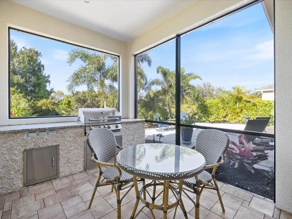 This is the home you have been waiting for! The refined Sanibel model offers everything you need to create your perfect residence, featuring three spacious bedrooms, three full bathrooms, and a versatile club room with elegant French doors—ideal for a study or media room. From the moment you enter through the beautiful custom impact glass front door, you'll be charmed by the thoughtful design and upscale finishes that define this welcoming residence. The well-appointed gourmet kitchen is a chef's delight, highlighted by granite countertops, a gas GE cooktop, and a wall oven with microwave, and customized pantry storage that are all designed for seamless and enjoyable meal preparation. Pocketed sliding glass doors open to an outdoor oasis, complete with a summer kitchen on an extended lanai that overlooks a tranquil preserve, offering both ultimate privacy and relaxation. The open, split floor plan showcases a coffered ceiling in the great room, which flows beautifully into the dining area at the front of the house, while plantation shutters and 8 foot doors throughout lend sophistication to the airy, modern concept. The luxurious primary bedroom is a peaceful retreat, with an ensuite that includes two generous walk-in closets, custom cabinetry with ample drawers, and dual matching sinks. For your safety and peace of mind, the home is equipped with premier PGT high-end impact glass and doors, and sits on an oversized lot surrounded by meticulously maintained landscaping. The extended garage is notable with an epoxy floor, insulated ceiling and doors, ample ceiling storage and a mobile AC unit to keep your treasures intact from the heat. Residents of Boca Royale enjoy access to a resort-style pool and clubhouse, a newly renovated championship golf course, tennis and pickleball courts, and a state-of-the-art fitness center, all set within a welcoming gated community spread across 1,000 acres of oak trees and nature preserves—a stunning backdrop for relaxation and recreation. The Georgian-style clubhouse serves as the heart of the community, offering fine and casual dining alongside an active calendar filled with wine dinners, trivia nights, and themed events for easy socializing. Walking and biking trails, a dog park, and outdoor recreation areas invite you to enjoy the fresh air, while just minutes away, Manasota Key’s white sand beaches, Venice Island’s boutiques and restaurants, and the shops and entertainment of Wellen Park provide even more to explore. With nearby marinas, parks, and everyday conveniences, Boca Royale perfectly blends coastal charm with a vibrant, connected lifestyle, making it the ideal place to call home. CALL TODAY FOR A SHOWING!