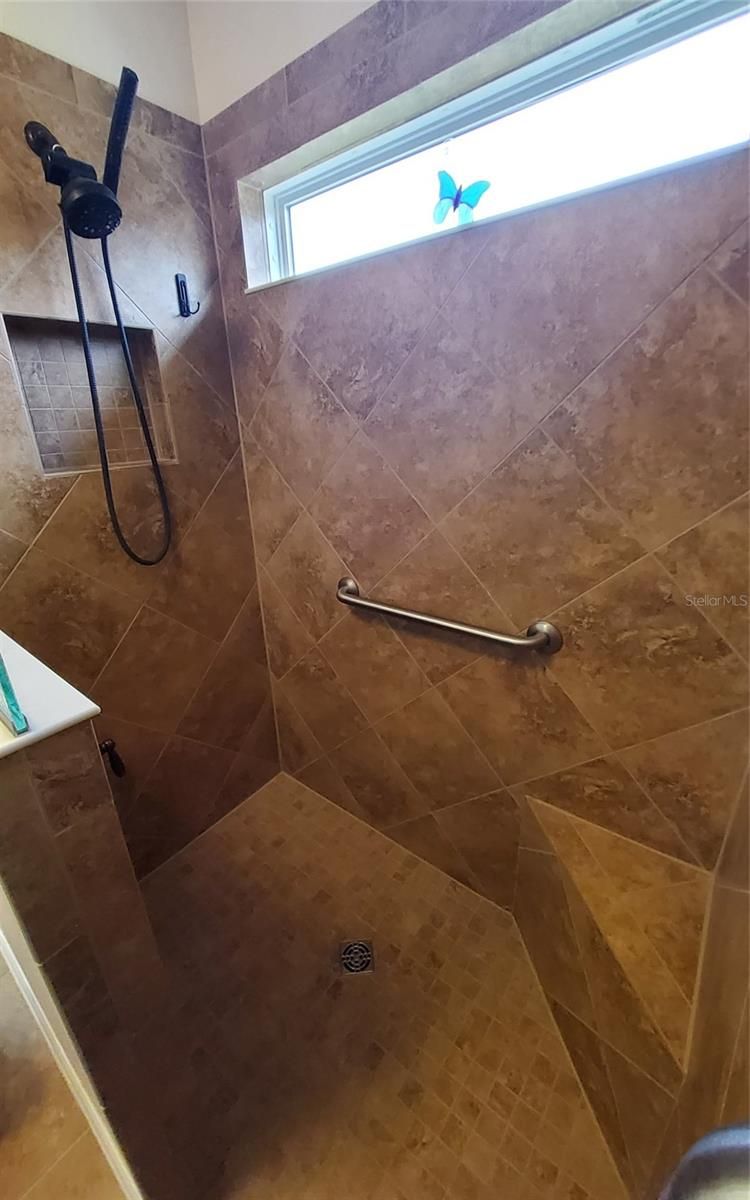 - Built-in Features, Cathedral Ceiling(s), Ceiling Fan(s), Eat-in Kitchen, High Ceilings, Open Floorplan, Main Level Primary, Solid-Wood Cabinets, Stone Counters, Walk-In Closet(s), Window Treatments