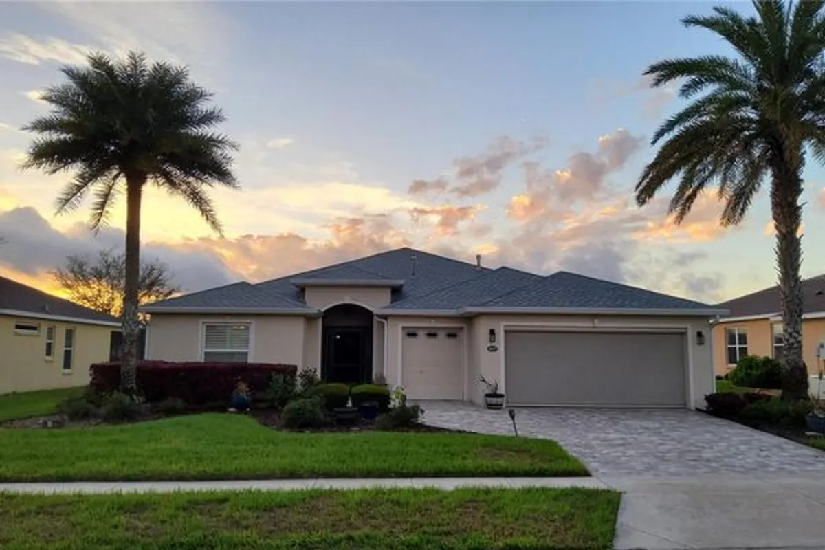 Welcome to your energy efficient home equipped with a new roof (2025), whole house solar panels, natural gas water heater and range, and whole-house backup generator. You’ll enjoy breathtaking waterfront sunsets and 17th Fairway views from the huge 24’x32’ screen-enclosed lanai / patio. This Monarch II design model home, built in 2016 was first occupied in 2018. Enjoy this 1 owner home that has been meticulously maintained and customized featuring retractable electric screens over breakaway sliding doors and garages, plantation shutters, custom pull-out drawers in kitchen and baths, whole home speaker system, 220v hookup for spa on patio, custom paver driveway, beautiful landscaping and more. As you walk through the inviting screen enclosed entry into the foyer, you’ll encounter a spacious, open great room area with cathedral ceilings. Enjoy entertaining in the open-concept kitchen and dining area with granite countertops, tile flooring, stainless steel appliance package, double door pantry, and breakfast bar. The ample sized primary bedroom offers a stand up shower, granite countertops and a walk-in closet. The inside laundry has plenty of space and storage with cabinets and sink. The oversized garage accommodates 2 cars and a golf cart easily. Arlington Ridge is known for their amazing amenities including 18 hole golf course, lighted tennis & pickle ball courts, billiards, heated pools, hot tubs, fitness center, community room, movie theatre, restaurant, tavern, storage lots, and more. (solar panels are financed with about $8,000 left)