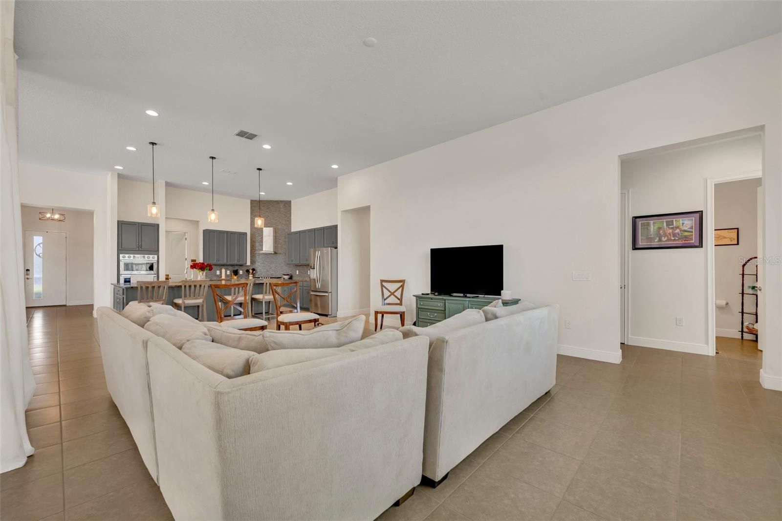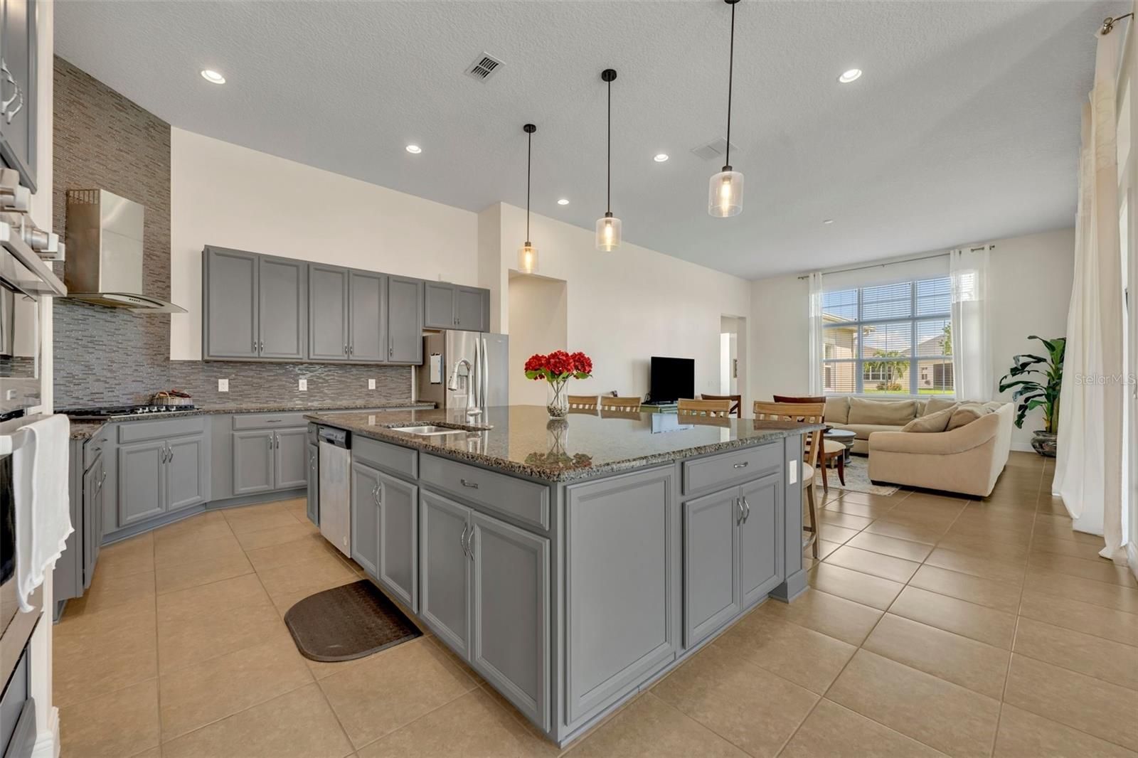 A Must-See in Twin Lakes – 55+ Resort-Style Living! Come explore this stunning 4-bedroom, 2.5-bath home located in the sought-after Twin Lakes community in St. Cloud, FL. This vibrant 55+ neighborhood offers a perfect blend of comfort, style, and active living. Step inside and be welcomed by 12-foot-high ceilings in the foyer, setting the tone for the spacious elegance found throughout the home. The open-concept layout is ideal for entertaining, featuring a massive kitchen, expansive living room, and a generous dining area. Dual sliding glass doors open to a covered and screened lanai, seamlessly blending indoor and outdoor living. The gourmet kitchen is a chef’s dream, boasting natural gas appliances, an oversized island, and a custom backsplash that extends to the ceiling, adding a unique designer touch. The thoughtfully designed split-bedroom floor plan ensures privacy for all. The luxurious primary suite impresses with its spacious layout, massive walk-in closet, dual vanities, and a large walk-in shower for two. Bedrooms two and three are tucked away for added seclusion, each featuring walk-in closets. The fourth bedroom offers flexibility as a guest room, den, or reading room, complete with French doors and dual reach-in closets. Living in Twin Lakes means enjoying resort-style amenities including a 20,000 sq. ft. clubhouse, resort and lap pools, fitness center, tennis and pickleball courts, putting green, walking trails, and direct access to Live Oak Lake for fishing, kayaking, canoeing, and boating. A full calendar of social and recreational activities keeps residents engaged and active. Don’t miss your chance to live in this vibrant, amenity-rich community!
