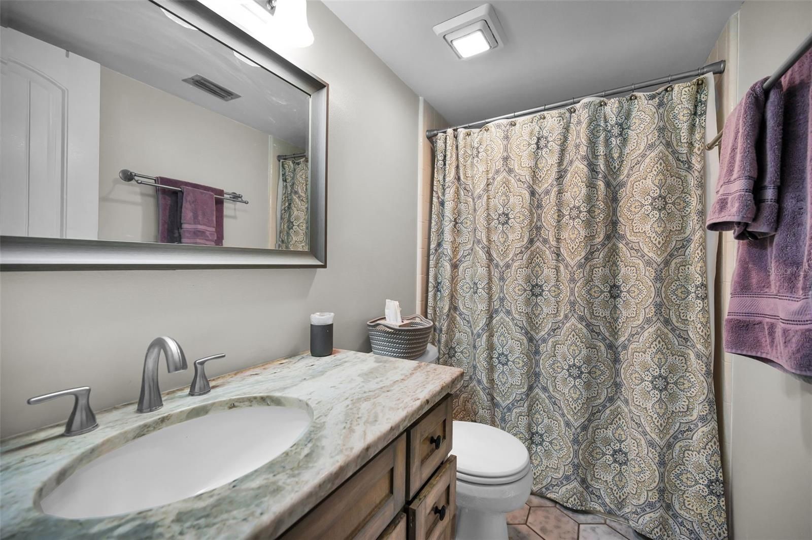 Impeccably updated 2-Bedroom, 2-Bath condo in the desirable Pine Ridge at Palm Harbor, A Pet-Friendly 55+ Community! Discover one of the finest condos currently available in Pine Ridge at Palm Harbor, a well-maintained, active retirement community. Can be purchased as your primarty residence, vacation home or investment property with no wait-time to rent! This beautifully updated second-floor unit overlooks the peaceful courtyard and is conveniently located just steps from the community pool and clubhouse. Move-in ready, this residence features a spacious and light-filled living area with additional windows and sliding glass doors leading to a screened and enclosed patio, ideal for enjoying the Florida lifestyle. High-quality, wide plank wood laminate flooring flows through the living room, dinette, and hallway, while neutral carpet provides comfort in both bedrooms. The generously sized primary suite includes a walk-in closet and an ensuite bath, thoughtfully updated in 2018 with a custom vanity, granite countertop, updated lighting, and mirror. The secondary bedroom also offers a walk-in closet and is adjacent to a stylishly renovated guest bath (2019) featuring a custom wood vanity, updated light fixture, and mirror. The kitchen, renovated in 2018, boasts custom solid wood, soft-close cabinetry, granite countertops, and recessed lighting. Appliances include a range and dishwasher (2019), microwave (2018), and refrigerator (2023). Additional updates include raised panel interior doors (2021), Pella sliding windows throughout (2022, excluding patio sliding door and small dinette window), a water heater (2016), and an HVAC system (2020). An in-unit laundry closet with washer and dryer adds to the convenience. Enjoy peace of mind with a low monthly HOA fee of $439, which covers roof maintenance, cable, internet, water, sewer, trash, exterior building maintenance and pest control, access to the heated pool and spa, clubhouse, and on-site property management. All room dimensions are approximate. 1,150 sqft. includes the enclosed patio. Call today for your in-person or live virtual tour!