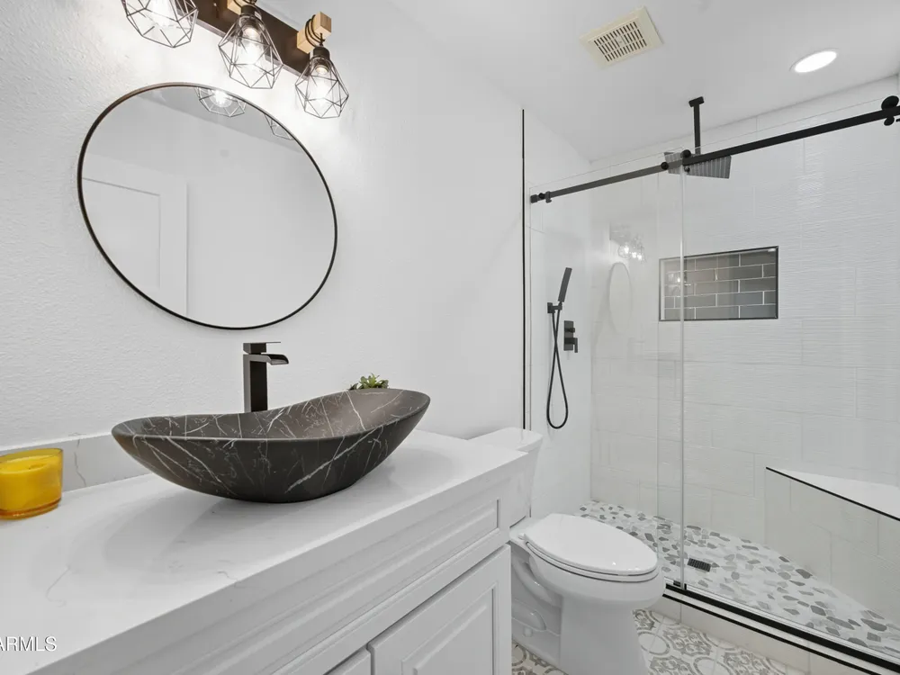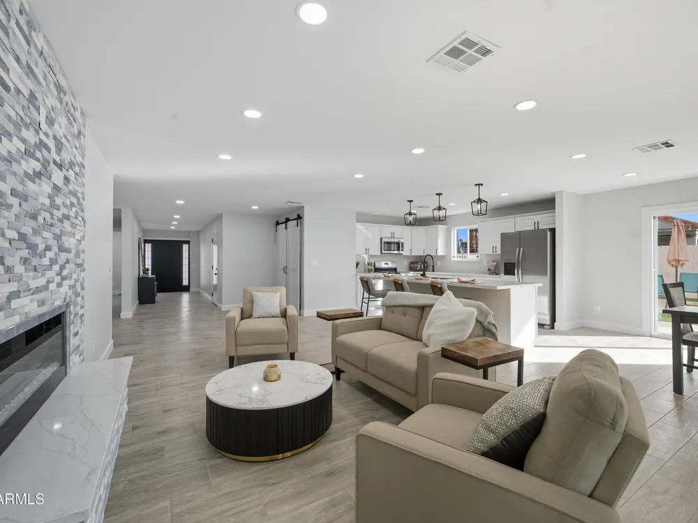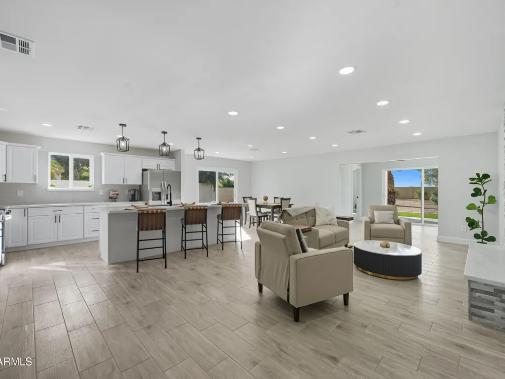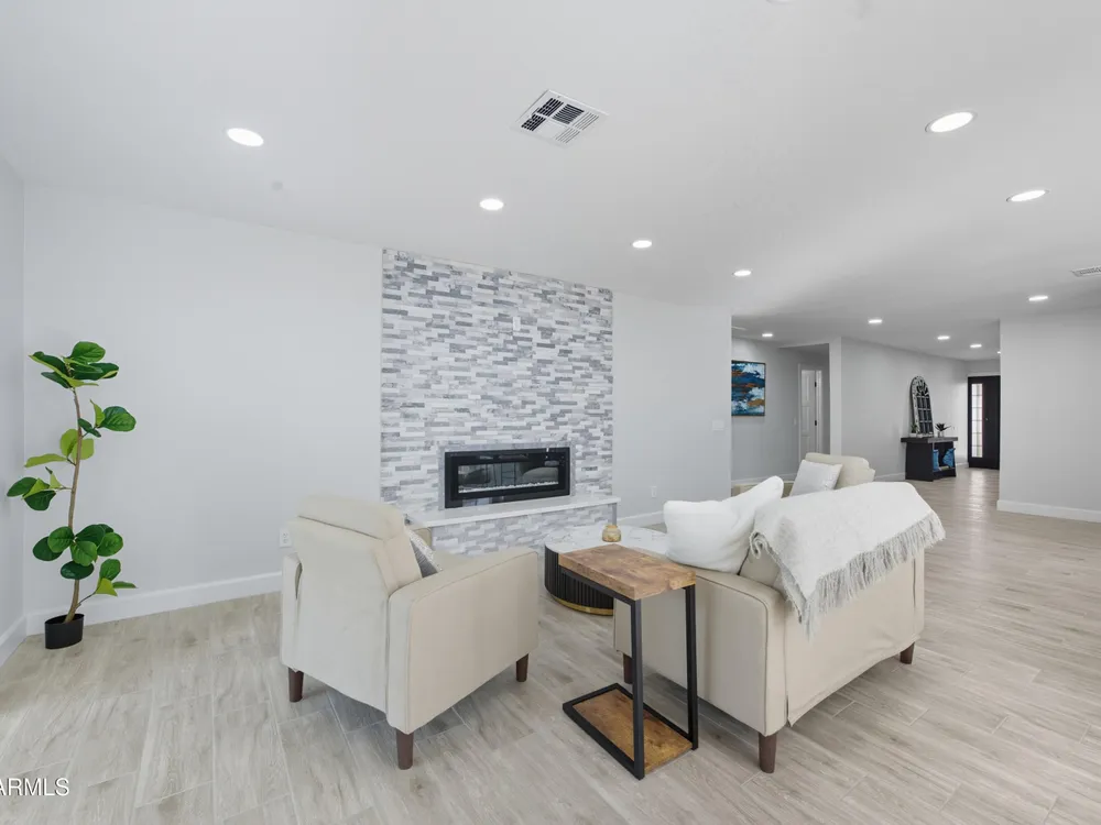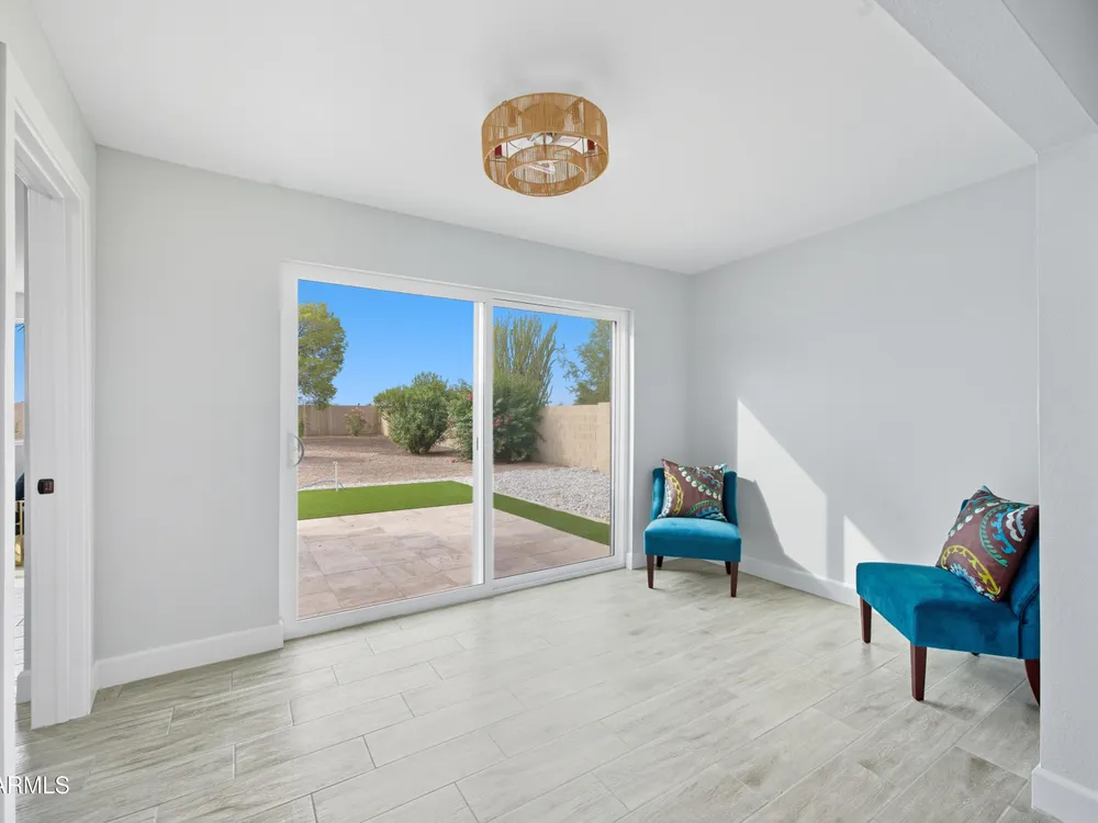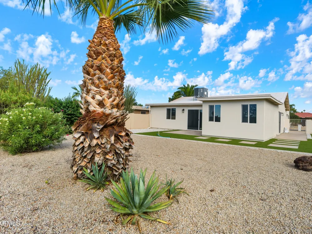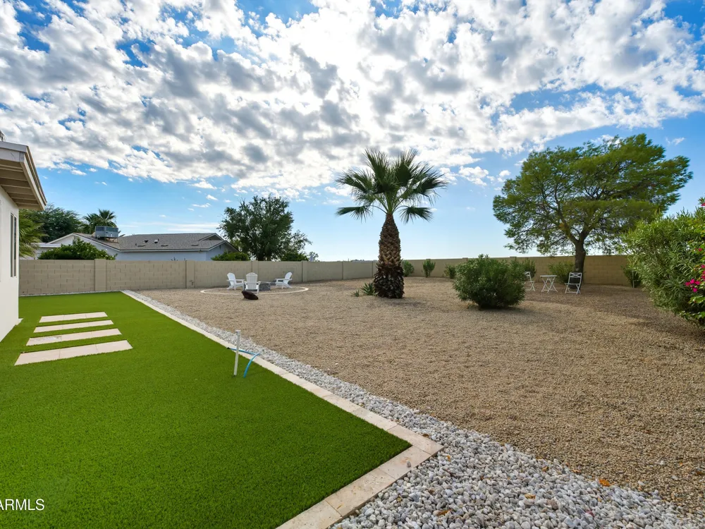 Welcome to your dream home in the highly sought-after Cottonwood community Sun Lakes! This beautifully remodeled 1,950 sq. ft, 3-bedroom, 2-bathroom property sits on an exceptionally large, private lot with endless opportunities for outdoor living. Recently upgraded with fresh landscaping, multiple patios, and inviting sitting areas, There is also a significant space in the front yard to add an extra garage, storage area, or living space. The backyard is a blank canvas—perfect for adding a pool, casita, or your ultimate outdoor entertaining area. Inside, the home features an inviting open-concept floor plan with bedrooms thoughtfully positioned for maximum privacy. The primary suite is a true retreat, showcasing a dramatic spa-like bathroom with an all-glass shower and a one-of-a-kind walk-in closet. Two additional bedrooms are generously sized, each with ample closet space and abundant natural light. Living in Cottonwood means enjoying resort-style amenities right at your doorstep, including golf, pickleball, dining, and a brand-new private workout facility. Plus, you'll have access to all five Sun Lakes communitiesoffering endless opportunities for recreation, relaxation, and social connection. Don't miss this rare opportunity to own a move-in ready home on one of the largest lots in Sun Lakes!