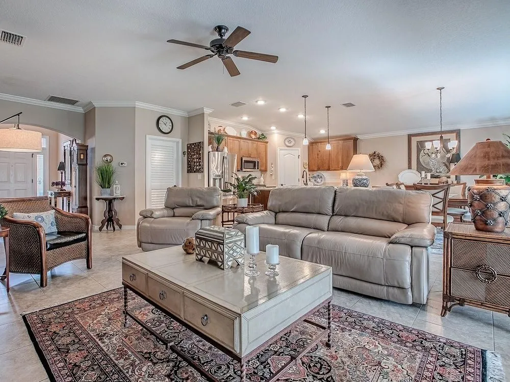 Stunning Juniper Designer Series Home in Arlington Ridge – Your Florida Dream Awaits! Discover this impeccably maintained home in the vibrant Arlington Ridge community, offering ~$50,000 in premium upgrades! Highlights include a Stand-By Auto Generator, Water Softener, Engineered Hardwood bedroom flooring, Crown Moulding, Rain Gutters, Window Treatments, Wooden Window Borders, stylish Ceiling Fans, Window Shutters, Laundry Room Cabinets, Stone Garden Edging, and Professional Landscaping. The gourmet kitchen features a large Quartz Island, Pantry, Quartz Countertops, and Stainless Steel Appliances, with a recently upgraded Dishwasher and Microwave. Unwind on the 14x10 Screened Lanai, enjoying the beautifully designed Rear Garden with Decorative Stone. Arlington Ridge redefines active 55+ living in Central Florida’s scenic Lakes region, just an hour from Orlando’s attractions, dining, and airport. Enjoy resort-style amenities right at home: an 18-hole championship golf course, resort and lap pools, top-tier fitness facilities, a restaurant, pub, and even a community cinema! Schedule your private tour today and embrace the best of Florida living!