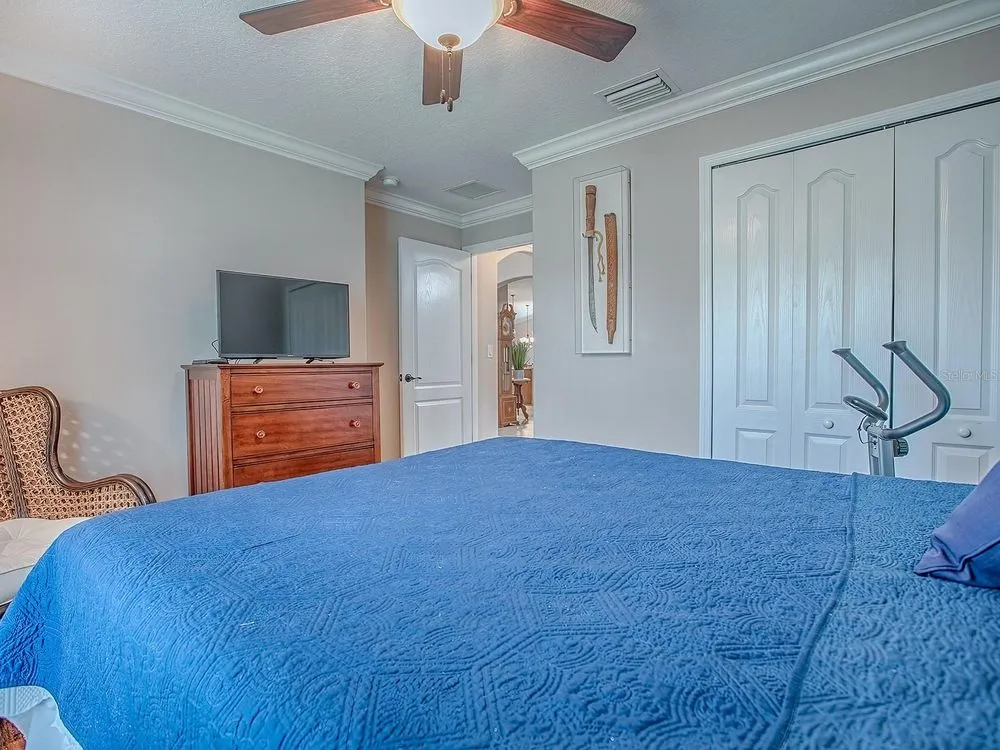 - Ceiling Fan(s), Crown Molding, High Ceilings, Open Floorplan, Main Level Primary, Solid-Wood Cabinets, Stone Counters, Vaulted Ceiling(s), Walk-In Closet(s), Window Treatments