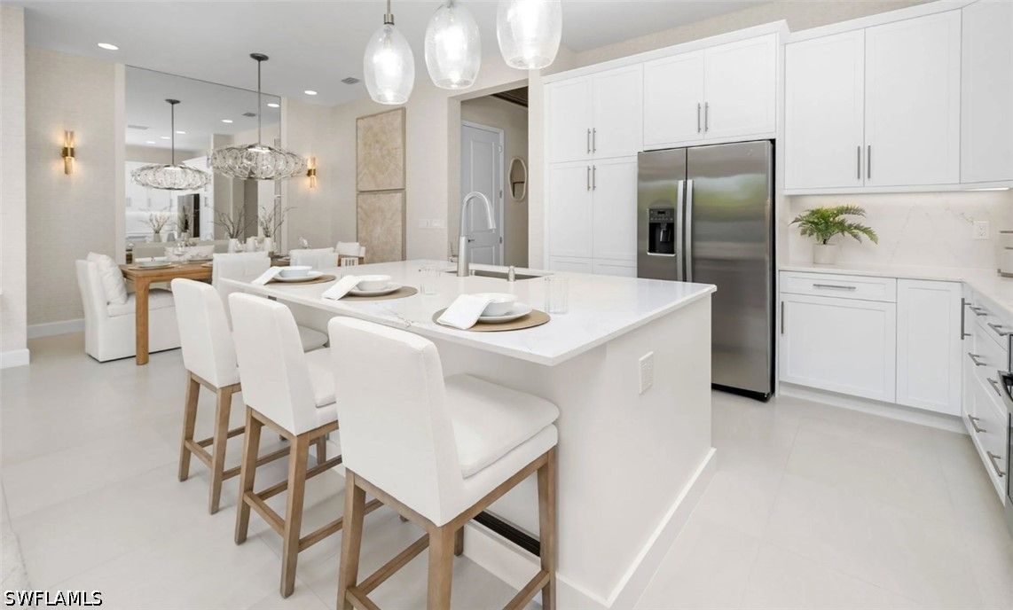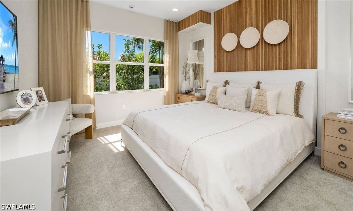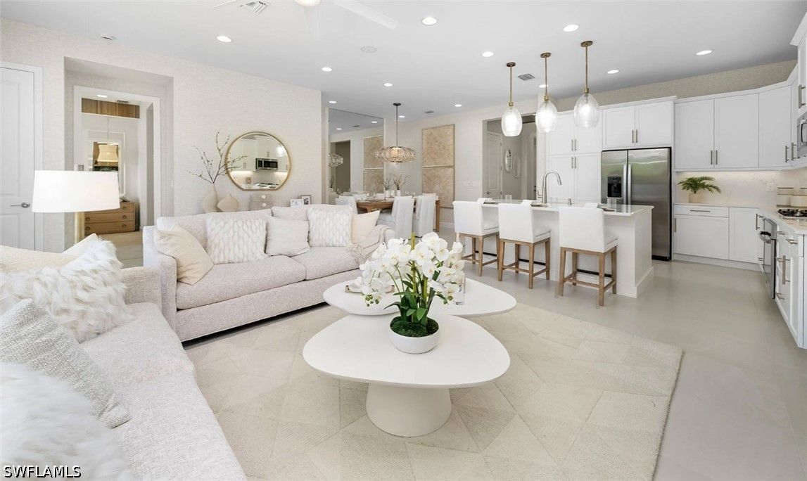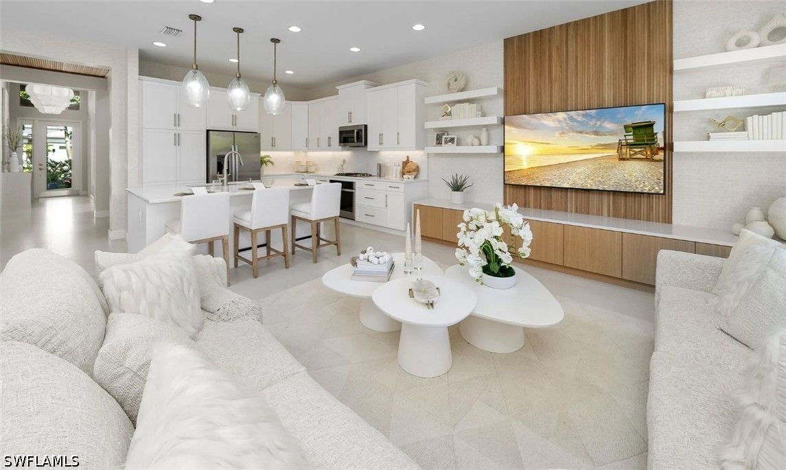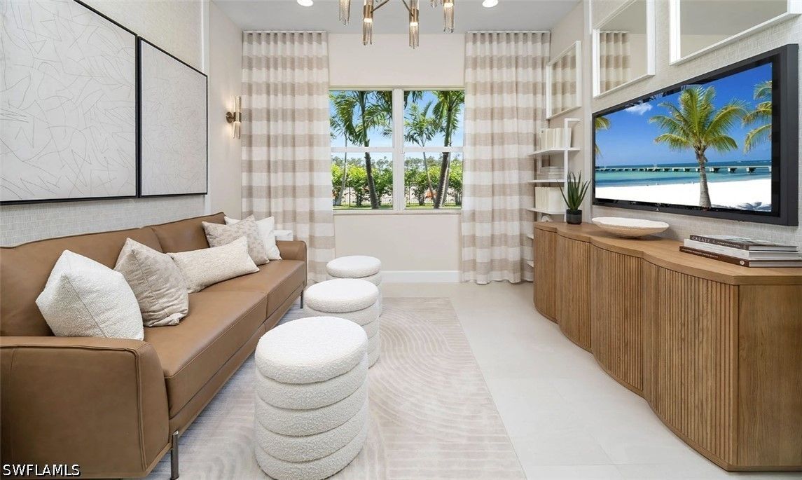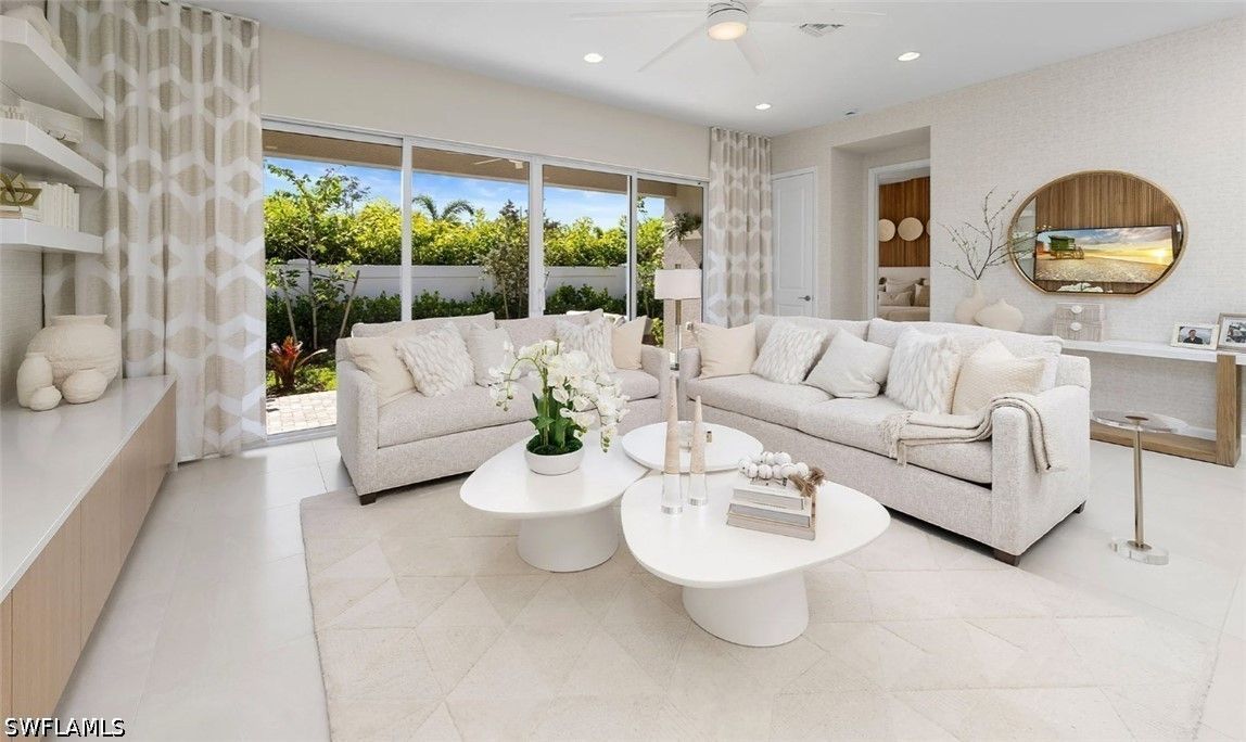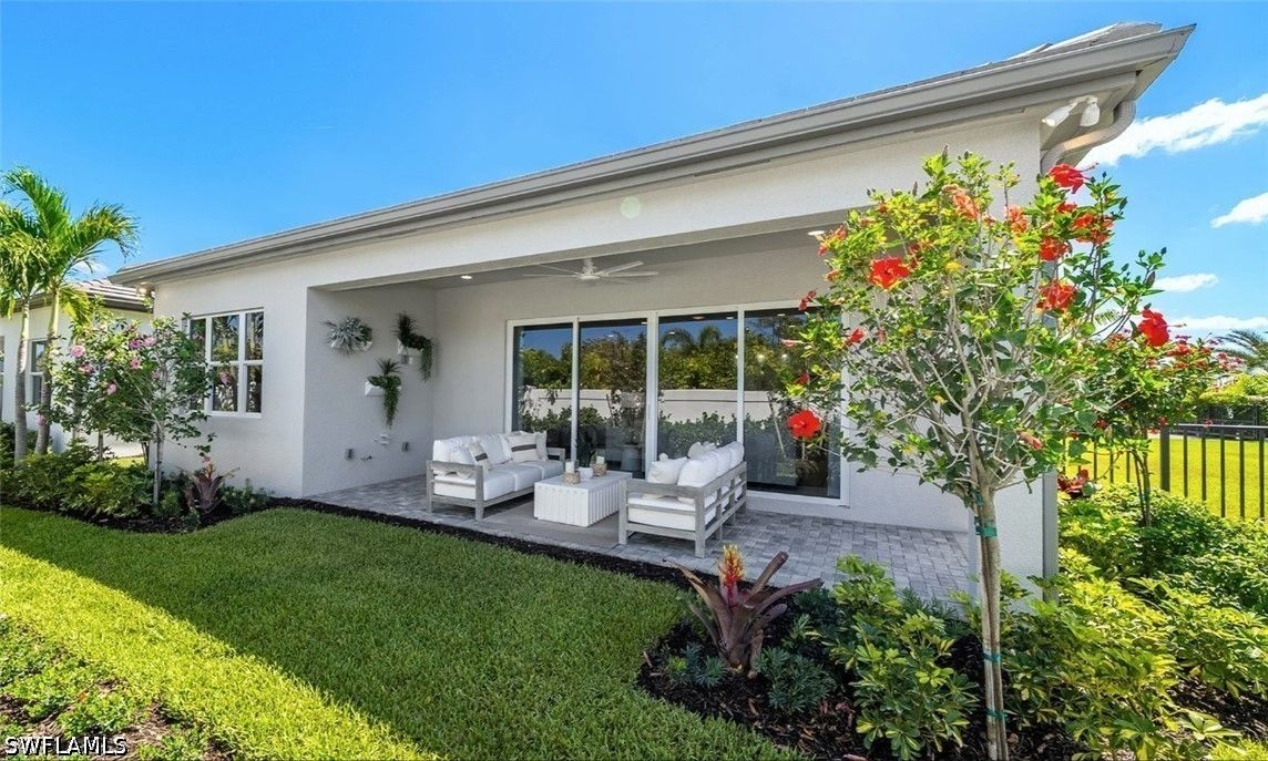 New construction available for IMMEDIATE OCCUPANCY! Ideally situated on a premium lake view lot, with extended patio, this home offers tranquil water vistas and a perfect blend of luxury, comfort, and modern design. This beautifully appointed “Eclipse” floor plan features 3 bedrooms plus a den, 3 full baths, and a 2-car garage. Thoughtfully upgraded throughout, the home showcases engineered wood flooring in the main living areas, upgraded 24x24 tile in the bathrooms, custom interior paint, window treatments, and more. The open-concept layout is ideal for both everyday living and entertaining. The gourmet kitchen is equipped with stainless steel GE appliances, vented hood, white soft-close cabinetry with dovetail drawers, and elegant quartz countertops. The spacious primary suite features dual walk-in closets and a luxurious bath with dual sinks. Additional highlights include impact-resistant windows throughout, glass entry doors, natural stacked stone on the front elevation, a gas tankless water heater, and a covered patio with summer kitchen stub-out and gas pre-plumb, perfect for outdoor living. Valencia Sky offers a premier active adult lifestyle with resort-style amenities and a vibrant social atmosphere. The impressive 35,000 sq. ft. clubhouse and lifestyle complex includes a grand social hall, restaurant, bar and lounge, state-of-the-art fitness center, yoga garden, arts & crafts studio, card room, sports lounge with simulator, full-service salon, massage rooms, steam room, salt sauna, cold plunge, and more. A full-time on-site lifestyle director ensures a dynamic calendar of events and activities for residents. Conveniently located just minutes from Naples’ famous 5th Avenue shopping, dining, and Gulf beaches, Valencia Sky sets a new standard for luxury 55+ living. Don’t miss your opportunity to be among the first to own in this exceptional new community, at a premier Naples location close to shopping, dining, and Gulf beaches. **This home is unfurnished; photos are of the builders decorated model on site for illustrative purpose.** The List Price provided includes Seller’s promotional credits and is subject to Seller’s terms, conditions and limitations such as, but not limited to, use of GLFinancial Services, LLC (“GLFinancial”) if financing or cash transaction and title and settlement services being provided by Nova Title Company (including, without limitation, the purchase of an owner’s title policy in an amount not less than the Total Purchase Price of the Home), but using GLFinancial or Nova Title is not required to purchase a home. However, if you elect not to, Seller’s promotional credits will not apply and the final list price will increase.