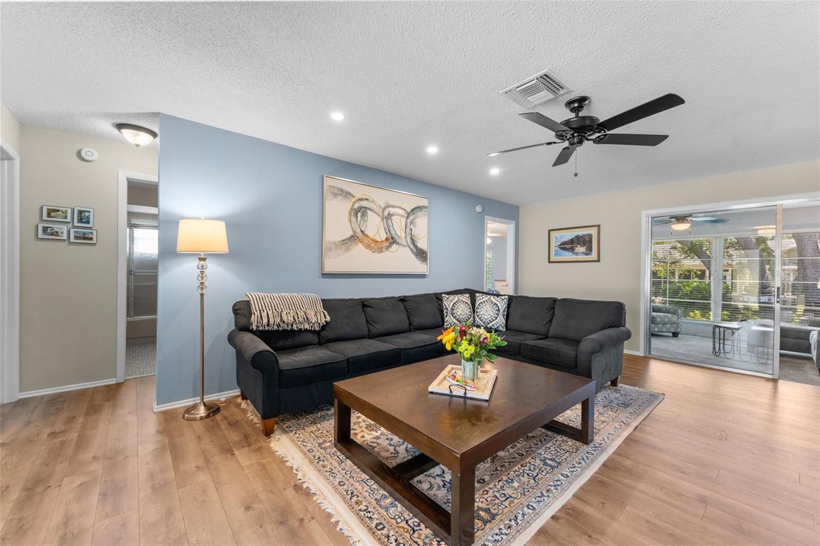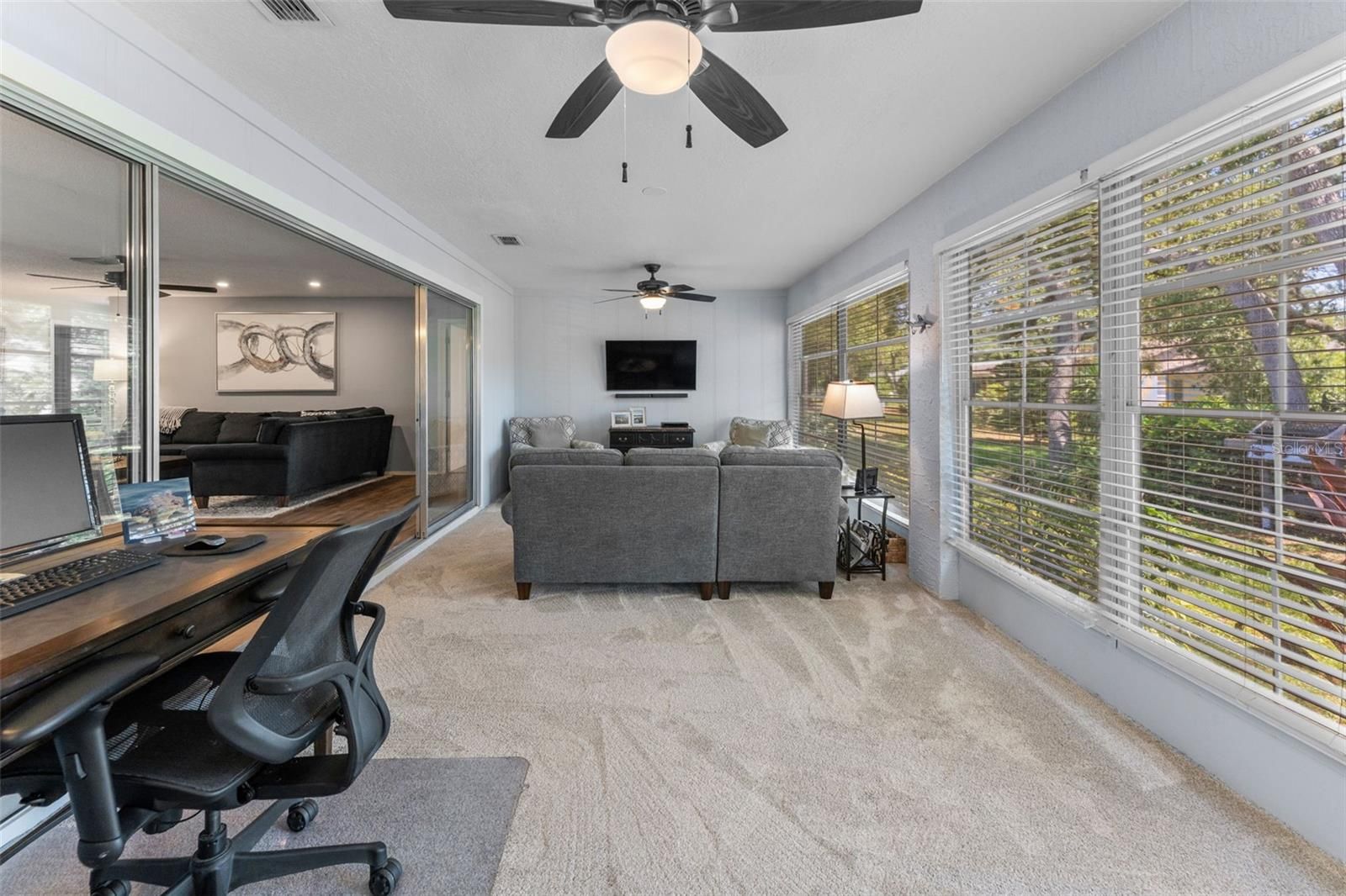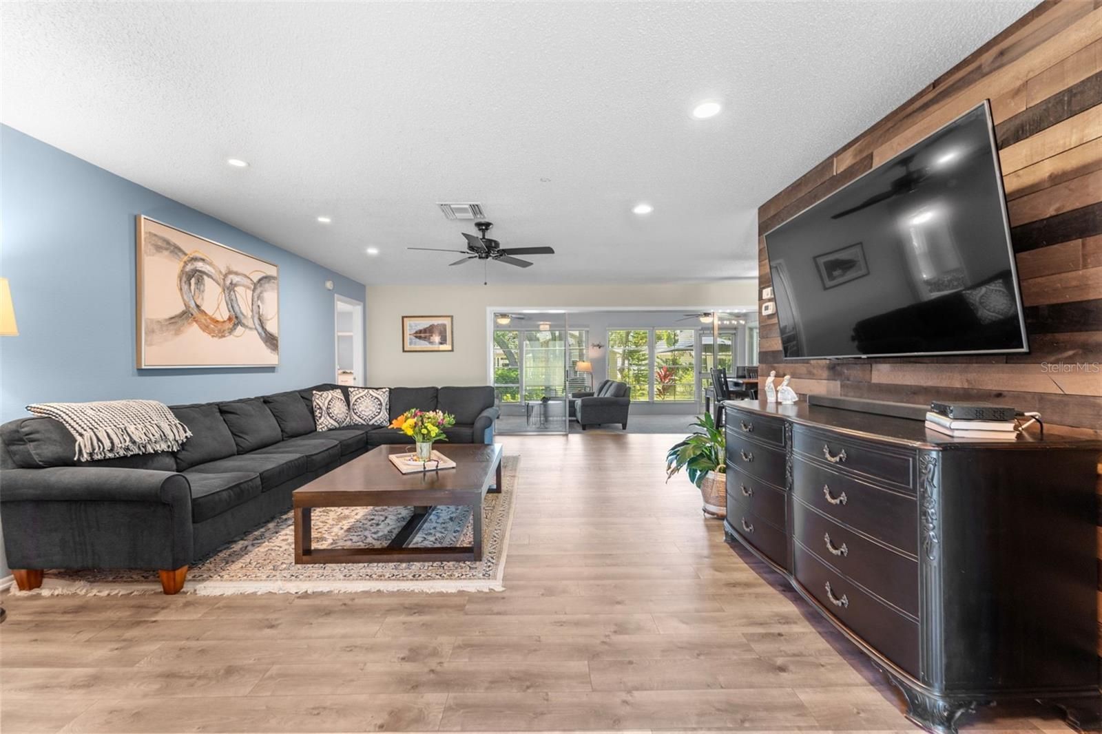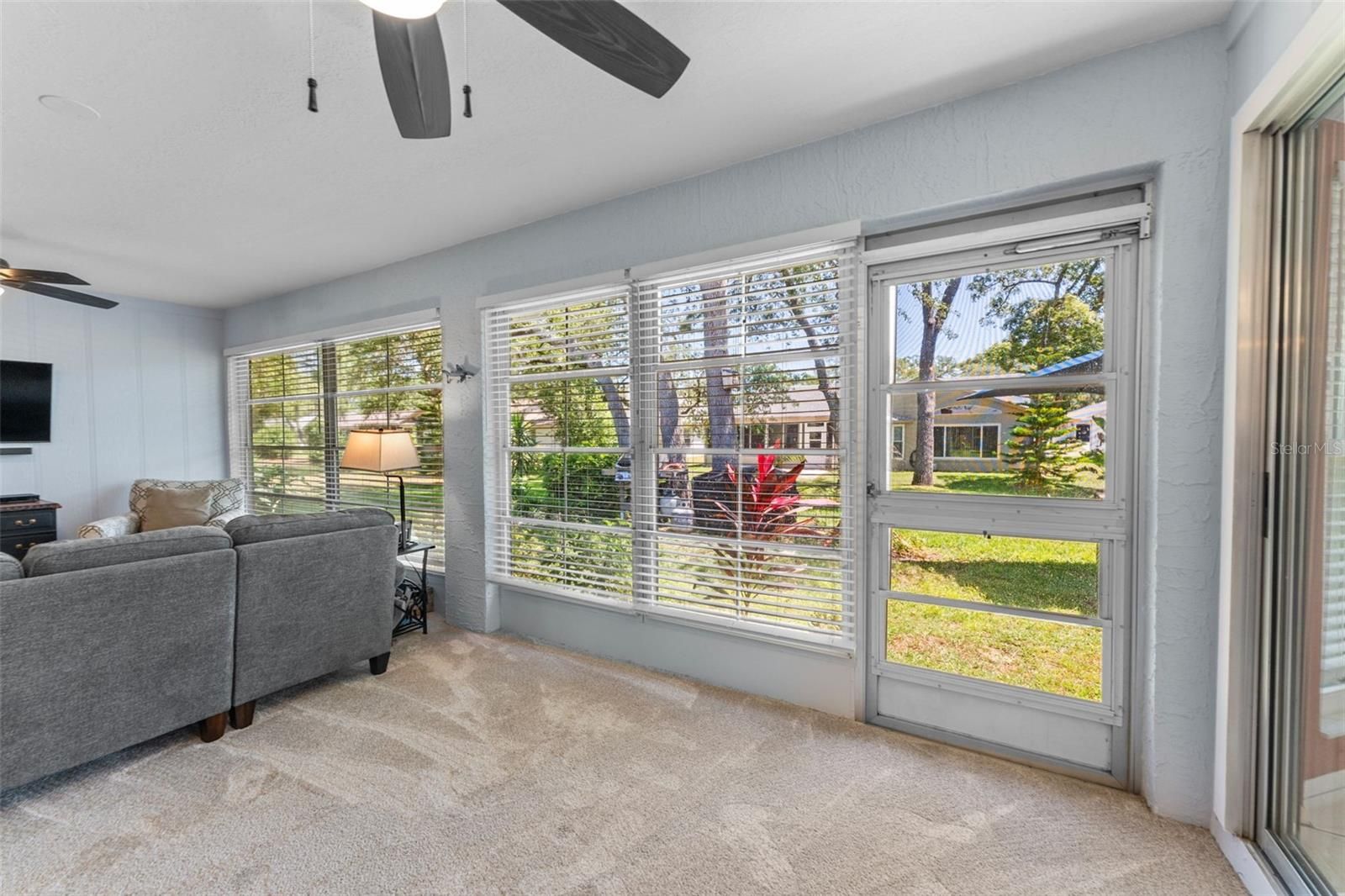 Welcome to this beautifully maintained home in the Award-Winning Community of Timber Pines! Located in one of Florida’s most desirable 55+ gated communities, this well-kept home offers the perfect blend of comfort, convenience, and resort-style living. From the moment you arrive, you’ll appreciate the meticulously landscaped lawn and garden, best enjoyed from the charming covered front porch—ideal for peaceful mornings and quiet evenings. Step inside through custom double front doors with new rain glass inlays that provide both privacy and natural light, paired with newly installed retractable screen doors for added functionality and comfort. The bright and inviting entryway opens into a spacious living room featuring durable, waterproof LVP flooring. The open-concept layout is perfect for entertaining, with the living area flowing seamlessly into the dining room and an additional family room, creating a generous space to relax and host guests. The kitchen, conveniently located just off the dining room, offers a generous pantry, newer stainless steel appliances, fresh paint, and ample counter space—ideal for everyday cooking and entertaining. Adjacent to the kitchen is the attached two-car garage, which includes a washer and dryer, built-in cabinetry, and a brand-new water heater. With plenty of storage space, the garage easily doubles as a workshop. The versatile family room provides a cozy bonus space that can be used for lounging, hobbies, or entertaining. The spacious guest bedroom offers excellent closet space, while the adjacent guest bathroom includes an oversized vanity and a tub/shower combo. Retreat to the generously sized primary suite, which easily accommodates a home office or sitting area. It features two walk-in closets and brand-new carpeting. The en-suite bathroom includes a tiled walk-in shower, double vanity, and ample storage. Recent updates include a new roof (2024), new carpeting (2024), recessed lighting, an invisible dog fence, and fresh interior and exterior paint (2025). Timber Pines offers unmatched amenities: 4 championship golf courses, pickleball, tennis, fitness center, 2 pools, performing arts center, on-site restaurant, billiards, arts & crafts center, dog park, over 100 clubs, and more! HOA includes Spectrum high-speed internet and cable TV. Don’t miss this opportunity to enjoy resort-style living in one of Florida’s most desirable active adult communities!