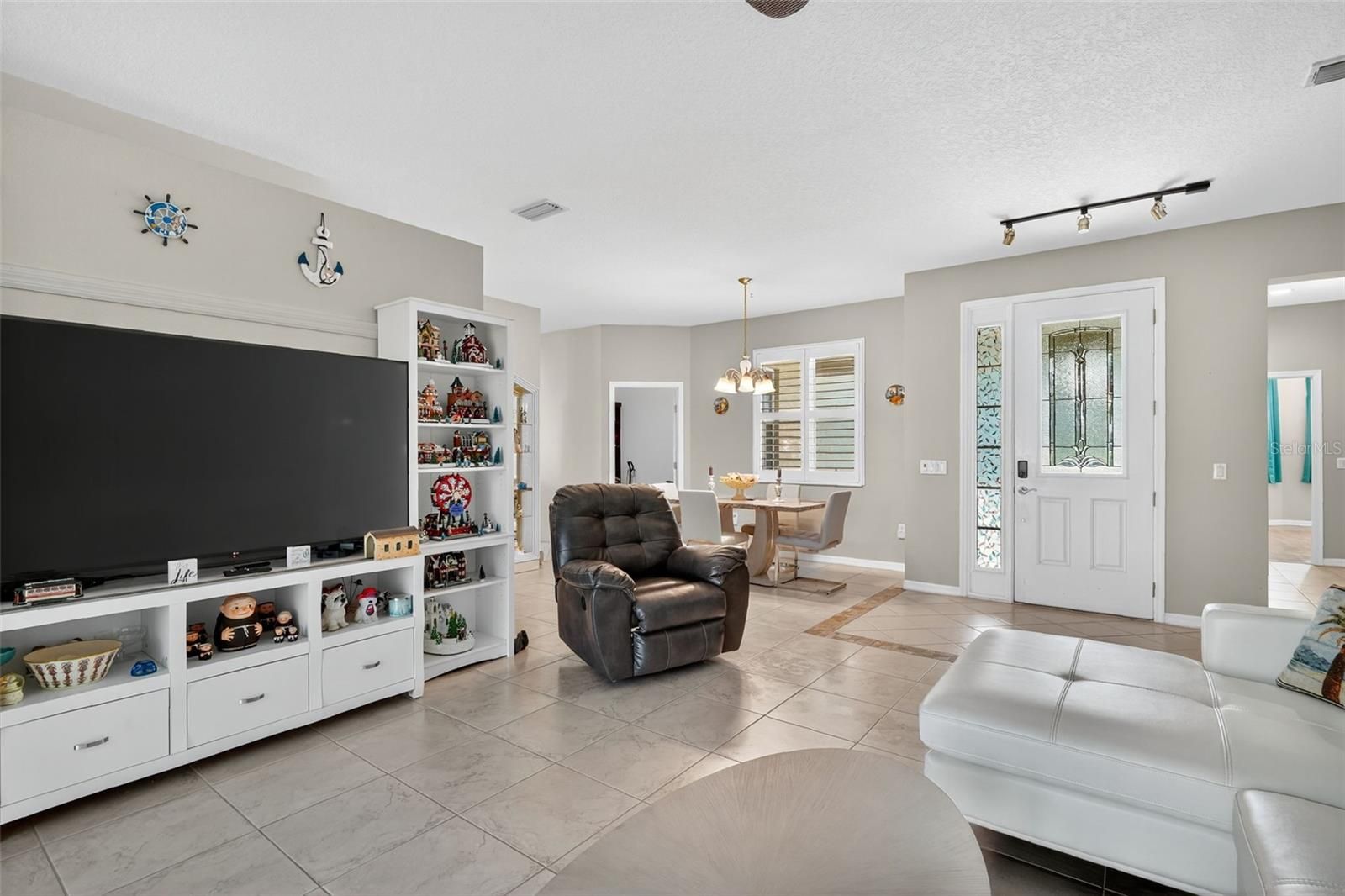 *** THIS HOME HAS EVERYTHING*** Come out to this 55+ community to see this beautifully maintained 2-bedroom, 2-bath + OFFICE/DEN home located in Leesburg, FL. This peaceful home has been UPDATED throughout, featuring PAID OFF solar panels (NO ELECTRIC BILL), brand new 4-ton AC Unit (2025), newer shingle/asphalt shingle roof (2024), well manicured landscaping with metered sprinklers, newer washer and dryer, stove and dishwasher (2024). Other amenities include an osmosis water filter, water softener, home alarm and camera system, and a generator plug-in. Adding character as you step inside the home is a LEADED STAINED GLASS front door, CEILING FANS, TRACK LIGHTING, PLANTATION SHUTTERS, CERAMIC TILE and ENGINEERED HARDWOOD FLOORING throughout. The kitchen area, with TRUE WOOD cabinets, a BREAKFAST NOOK, and FAMILY ROOM are an open concept, inviting family and friends to gather. There is a separate LIVING ROOM that connects with a DINING ROOM, perfect for entertaining. The two LARGE BEDROOMS each have plenty of space with their own BATHROOM, and there is an additional room that can be used as an HOME OFFICE, DEN, or THIRD BEDROOM complete with a MURPHY BED. Enjoy your morning coffee and sunshine in the SCREENED IN FRONT PORCH, or afternoon shade and serenity in the ENCLOSED, SCREENED BACK PORCH. This home is listed as unfurnished, although some furnishings remain for staging purposes. Separate sale of these items is negotiable. The golf cart community boasts with an 18-hole golf course, restaurant & bar, movie theater, resort-style pool and sauna, fitness center, spa/nail salon, library, recreation room with pool tables, clubhouse and walking trails. With a low monthly HOA, MOVE-IN READY HOME, AND LUSH COMMUNITY EXTERIOR, everything you need to enjoy the best living is right here in Central Florida! Schedule your tour TODAY!!