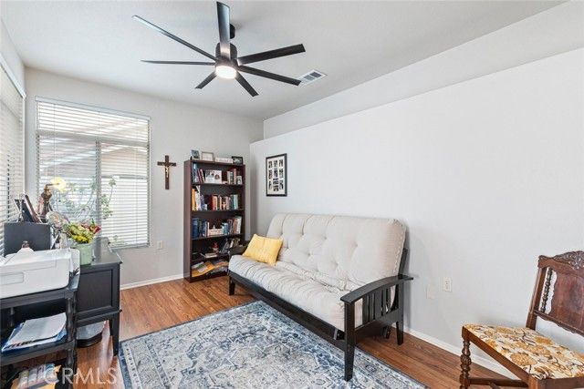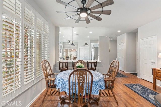 Welcome to resort-style living at its finest in The Club, a vibrant 55+ community designed for active adults seeking comfort, connection, and ease. This beautifully updated single-story home offers 3 bedrooms, 2 bathrooms, and 1,427 square feet of thoughtfully designed living space. From the moment you step inside, you'll appreciate the fresh interior paint and new flooring that create a light, modern feel throughout. The remodeled kitchen serves as the heart of the home, featuring elegant stone countertops, updated cabinetry, new appliances and ample storage-perfect for both everyday living and entertaining. The open layout flows seamlessly into a bright and inviting living room complete with a cozy fireplace, custom plantation shutters, and an updated built-in entertainment center. Flexible living options include a secondary bedroom ideal for a home office or den. The spacious primary suite offers vaulted ceilings a custom wall covering and a beautifully updated en-suite bathroom with dual vanities and a walk-in shower. Both bathrooms have been tastefully refreshed, enhancing the home's overall appeal. Step outside to enjoy low-maintenance front and backyard spaces designed for easy living. Additional highlights include direct access to a two-car garage, central heating and air