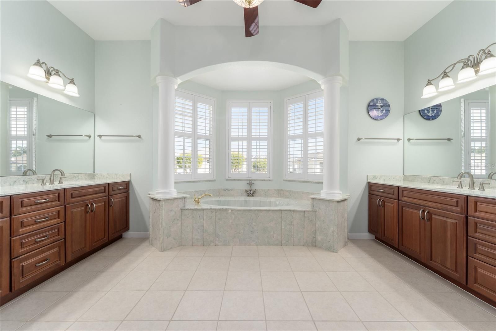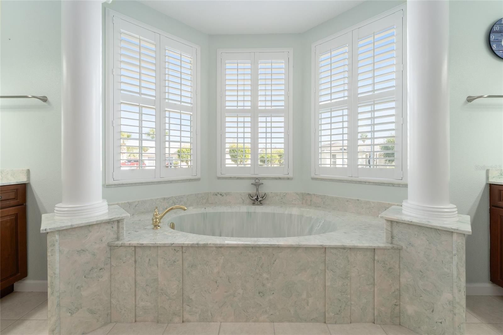 Welcome Home to Ocala Palms 55+ golf community! Find sanctuary in one of Ocala Palm’s most sought after fenced-in ½ acre lots. This gorgeous home offers the largest layout of the community; complete with pool and all the upgrades you could desire! This 3-bedroom, 2 bath home features hardwood flooring throughout, estate shutters, crown-molding, ceiling fans in every room and best of all WIFI accessible thermostat. Enjoy your gourmet kitchen that has updated cabinets with pull out drawers, a swing out pantry and quartz countertops. The Over-sized master suite is perfectly built with his and hers designer walk-in closets, a spa inspired bathroom with double vanities, walk-in shower and garden tub. This split floor plan offers two guest rooms complete with a handicap accessible shower in the nearby bathroom (complete with pool access) as well as recessed alcoves in each that are great for extra storage. Walk through the large living room with tray ceiling and enjoy the back yard view of the newly updated lanai (2022). Get ready to entertain family and friends on the lanai with your summer kitchen with upgraded sunshade, brand new waterfall, pool cage with lights and hard-wired Bluetooth accessible outdoor speakers. The pool is salt-water, solar heated and controlled with a Pentair wireless accessible pool-system and don’t forget to relax and unwind in the heated Jacuzzi. This home has Kinetico Mach series water softener that is maintained yearly, a new roof (2023) and lanai screen (2023). The A/C is from 2015 and is serviced yearly. The community hosts an 18-hole golf course, fitness center, indoor pool, arts and crafts studio, card room, multi-purpose room, sewing studio, billiards room, table tennis, and a library that provide plenty of space for recreation, relaxation and activities all just a golf cart ride away. Residents can also stay active outdoors with the outdoor pool, tennis, bocce ball and shuffleboard, and soon to be built pickle ball courts. Don't forget to check out the community's locally owned Bella Cosa Italian Ristorante. This home is perfectly located across from Publix grocery, restaurants, gym and local shopping. Only 3 miles from the World Equestrian Center and minutes to downtown Ocala.