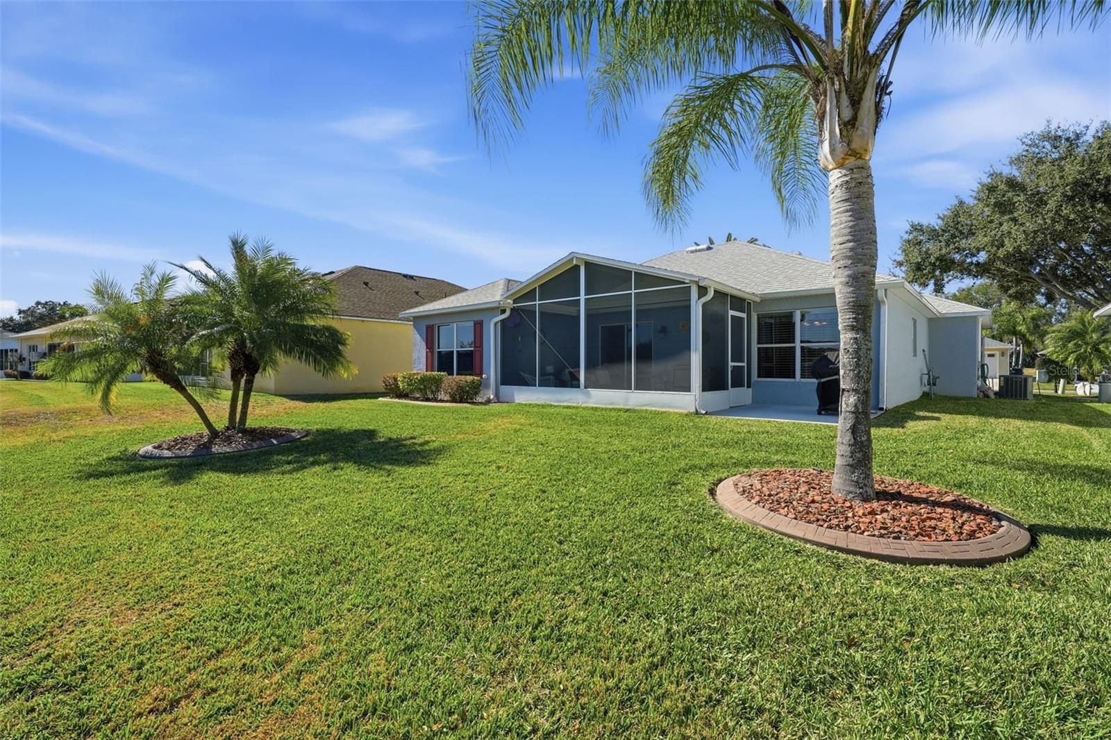 WATER & GOLF COURSE VIEWS! PREMIER 55+ COMMUNITY - Enjoy stunning water and golf course views from this beautiful 2-bedroom, 2-bath home featuring luxury vinyl flooring throughout. The updated roof and A/C add peace of mind, while the spacious kitchen offers ample cabinetry, quartz countertops, and a convenient closet pantry. The master suite includes a large walk-in closet and a tiled walk-in shower. Relax on the inviting front covered porch or the large screened rear porch overlooking gorgeous golf course and pond views. Located in one of Central Florida’s most desirable premier 55+ gated communities, this property offers resort-style amenities including a championship golf course surrounded by a winding river and majestic oaks, a sparkling pool, modern fitness center, tennis courts, and a restaurant and bar. Numerous clubs and social activities make this a vibrant and welcoming community! Conveniently located just 10–15 minutes to the Florida Turnpike, 45 minutes to Disney World and major theme parks, and a short drive to The Villages. Nearby you’ll find an emergency care hospital, dog park, plus plenty of restaurants, grocery stores, and shops. Don’t miss your chance to own this incredible home and experience the Florida lifestyle at its best — schedule your private tour today!