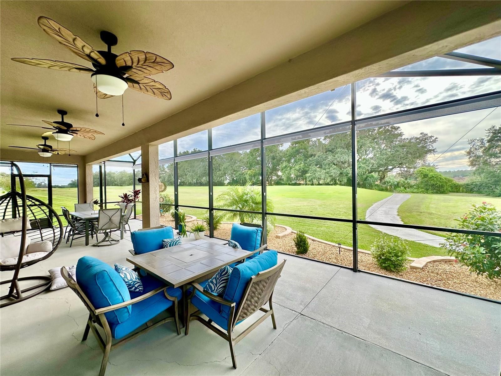 Better-Than-New Home on the 11th Pro Tee Box in the Gated 55+ Golf Community of Arlington Ridge! Welcome to your new home in the sought-after, resort-style community of Arlington Ridge! Whether you’re looking for full-time living or a seasonal getaway, this beautifully maintained home has everything you need—and more: 3-bedrooms, 2-bathrooms plus a flex room perfect for hobbies or home-office! The Community offers Swimming Pools, Fitness Center, Tennis & Pickleball Courts, Restaurant/Tavern, Theatre, Billiards, Library and the Activity Center with many social clubs and events to keep you busy! You’ll have plenty of space in this 4 Bedroom, 2 Bathroom home that sits on the 11th Tee Box with beautiful views of the greens and trees; a big PLUS with NO REAR NEIGHBORS! As you drive up to this perfectly maintained home you will notice the care in the landscaping when you step into the front screen patio that leads to the beautiful leaded glass front door. With light flooding in through the front door to the spacious foyer and hall, it carries you down to the heart of the home where an open kitchen, dining room and living room invite you to your easy-living oasis. Rows of windows and sliding doors enhance the rear wall to enticing views of the back porch and golf course. The kitchen is adorned with 42-inch wood cabinets, granite counters and stainless-steel appliances. The built-in double ovens and prep space on the island/breakfast bar are sure to delight the chef in the family! The oversized Primary bedroom displays window views to the greens, and new Luxury Vinyl Plank flooring that flows to the ensuite bathroom. The primary bathroom is fully decked out with quartz counters, dual sinks, tile walk-in shower with new glass enclosure and a large walk-in closet. You will also enjoy the added privacy of the water closet. The extra 3 bedrooms are perfect for family and guests, or your favorite hobbies and crafts! As you move out to the rear extended lanai you will enjoy the extra added space to sip your cool drink in the shade or the full sun, with a large screen enclosure. New adjustable privacy/sunshades have also been added to use as needed. The open flow of the home and lanai are perfect for entertaining your family and friends for both elegant and casual settings. Brand new 2025 Landscaping in rear yard next to lanai for a bit of added privacy, while keeping your beautiful views! As a full-timer or seasonal homeowner, you will be able to save money and stay on a set budget with the approximate 5-year-new solar panels (low solar payment), thermal pane windows, and new Pella sliding glass door. You will have a solar lease payment for the 27+ solar panels which equates to much less than the standard neighborhood electric bill. The lease also covers any repairs that may ever be needed on the panels. The Arlington Ridge Golf Course is a public course with a Gary Koch design where memberships are available but not required. This is the perfect opportunity to own a home in a resort-style community with everything you could ever want! Schedule your personal tour today! - - - Equal Housing Opportunity